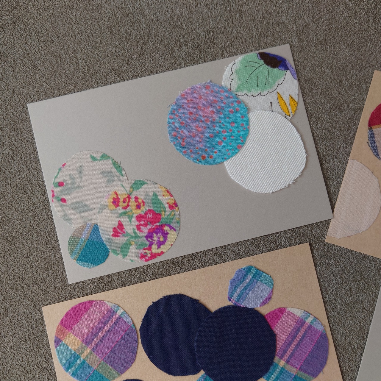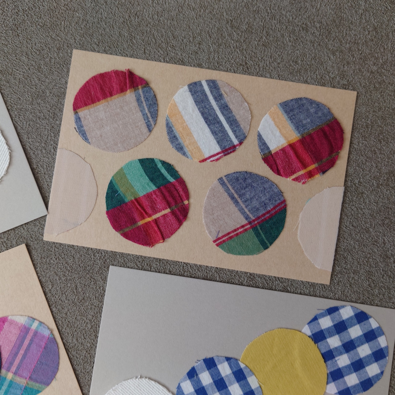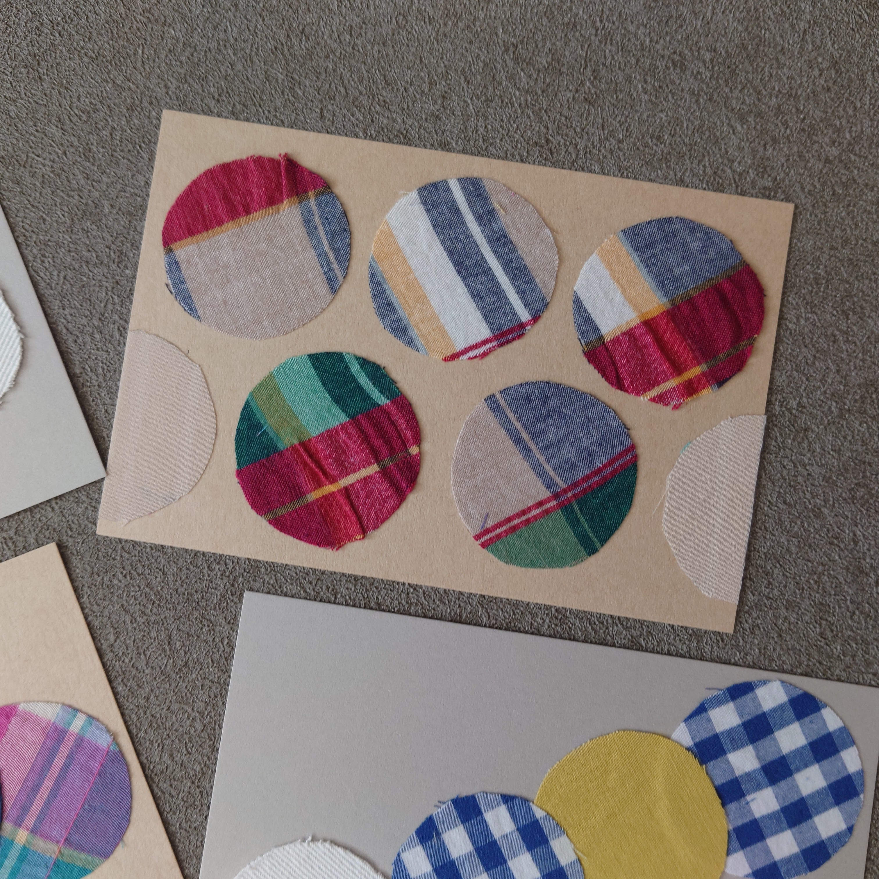 ハギレを張り合わせた1点物のデザインカード