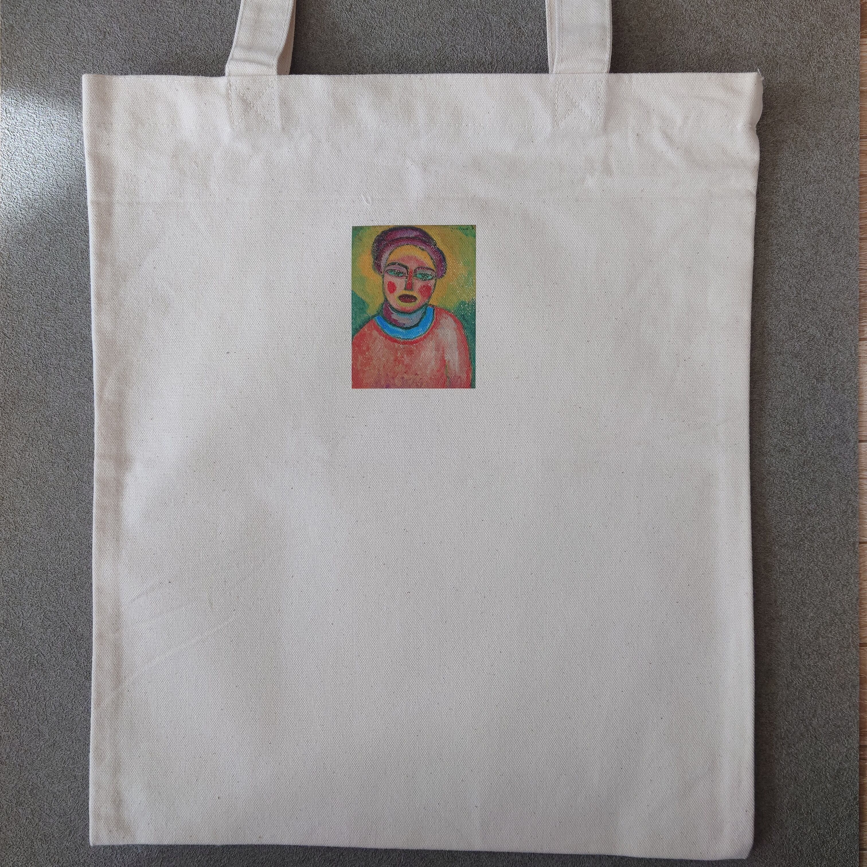 シュールな女の子がとても印象的な名画をプリントしたトートバッグ