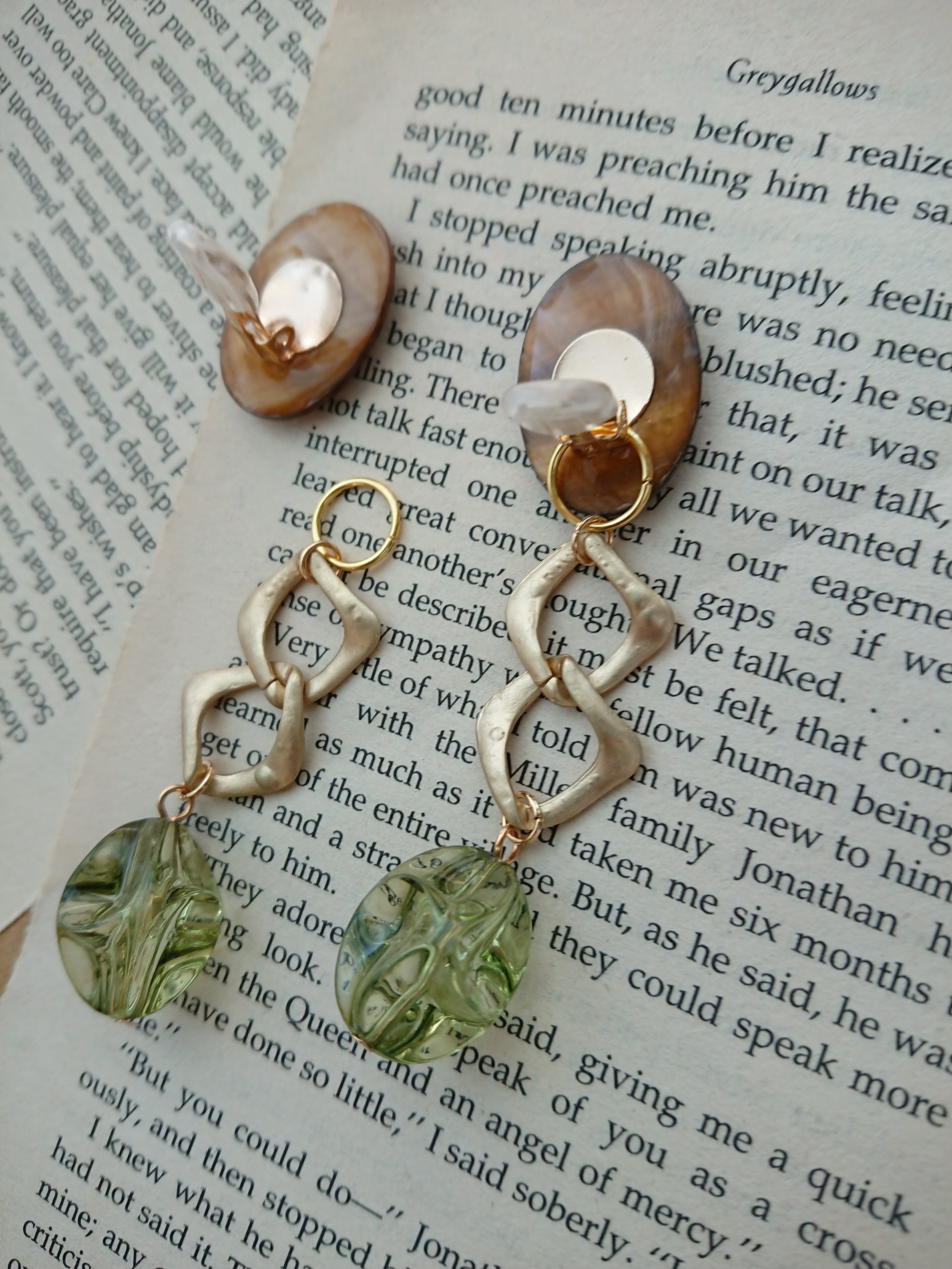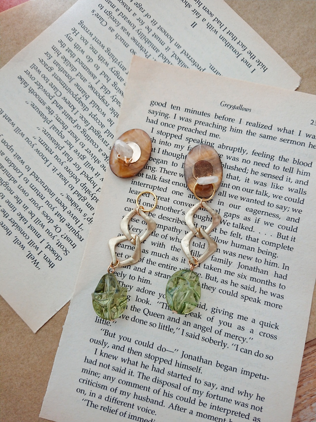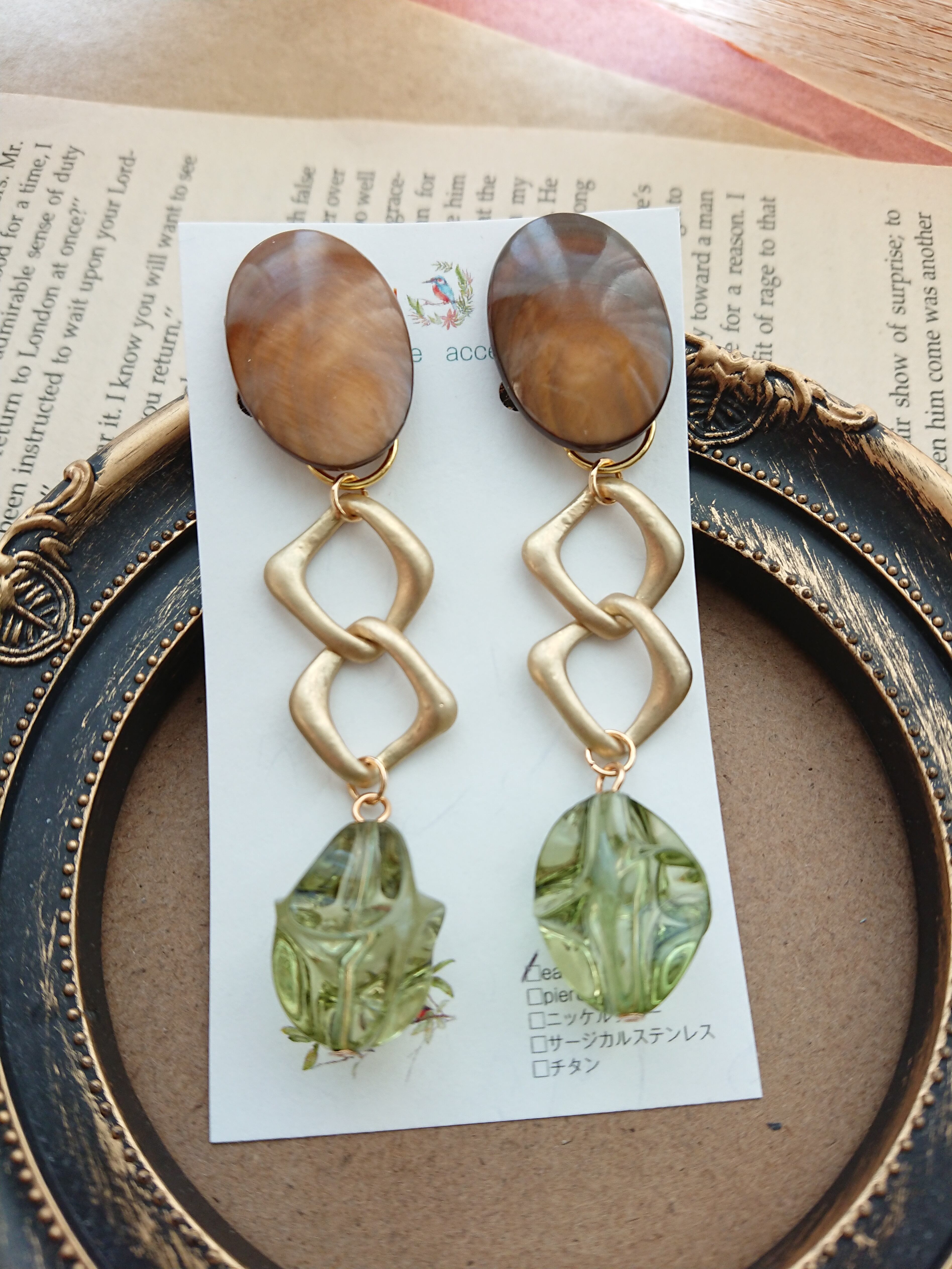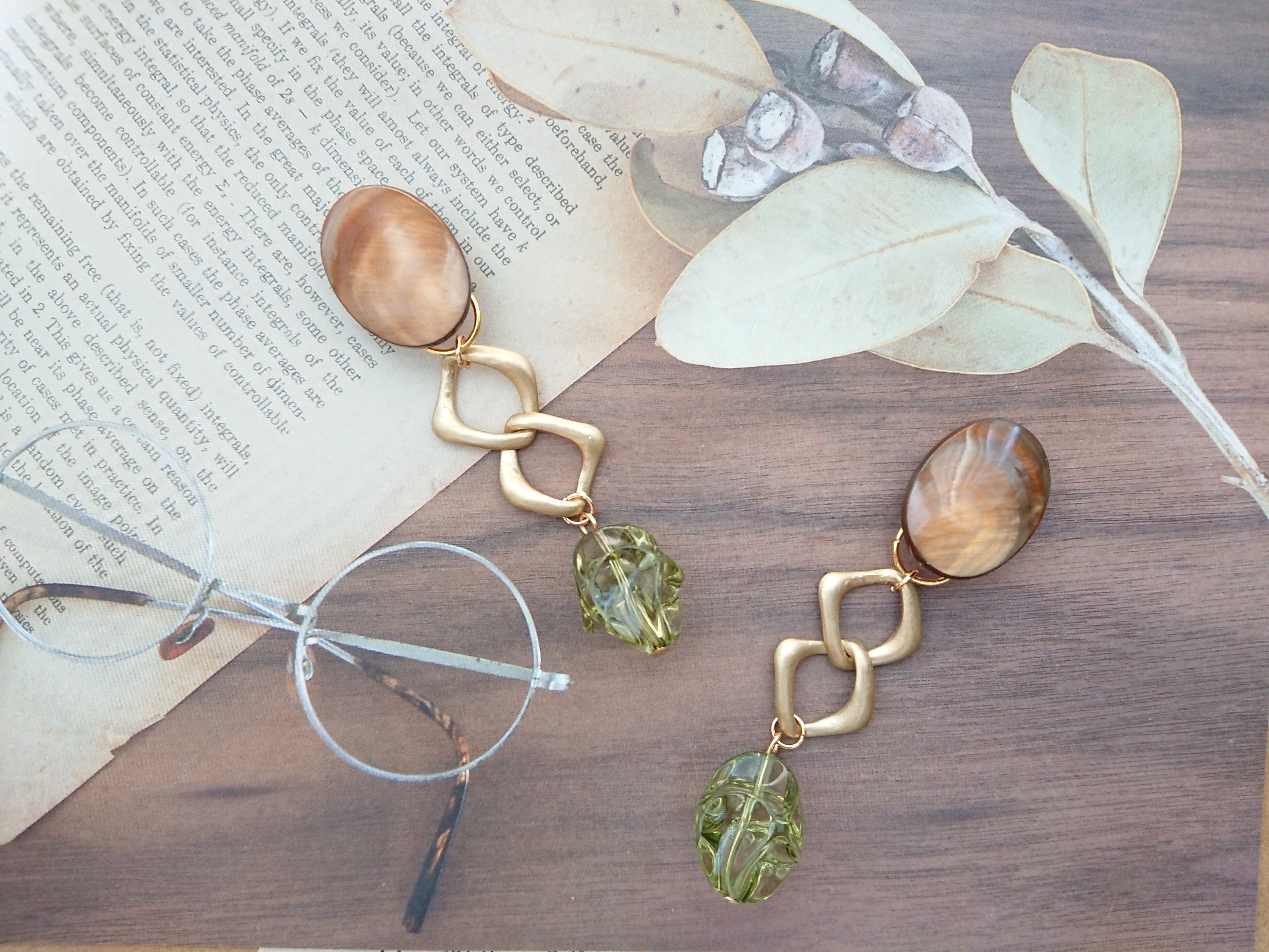 コーヒー好きの女 コーヒー色のシェルとヴィンテージビーズの大人カラーイヤリング