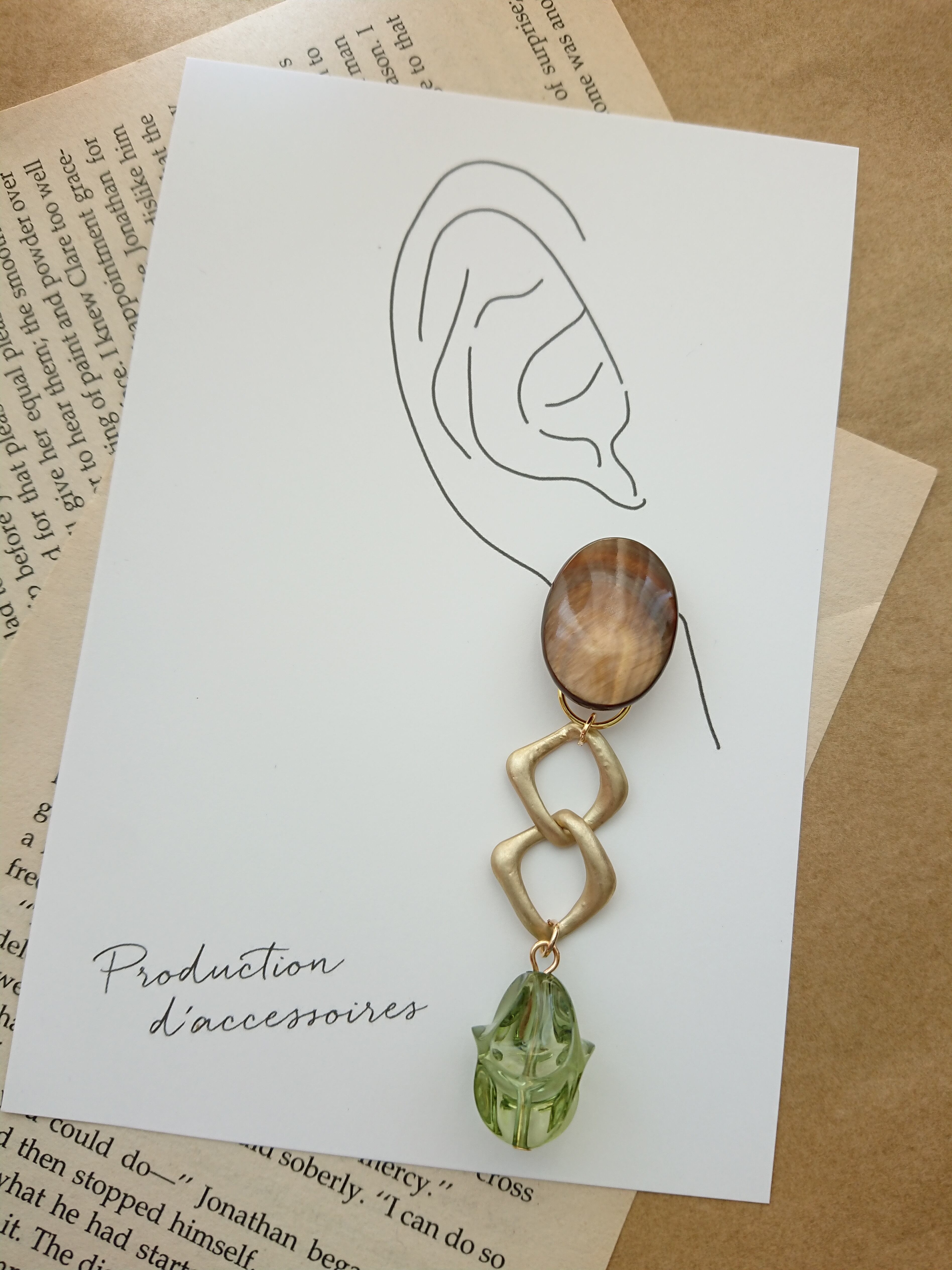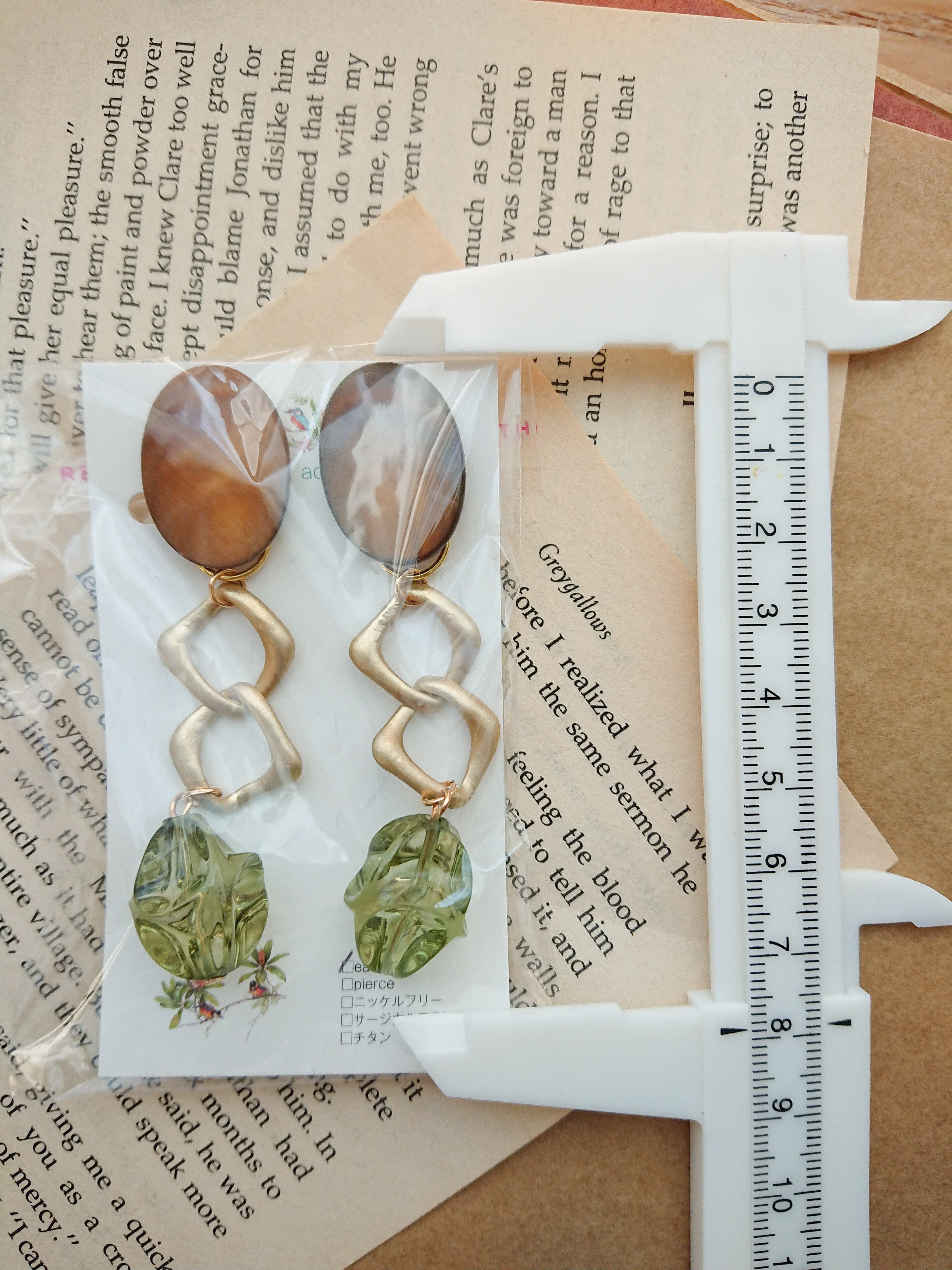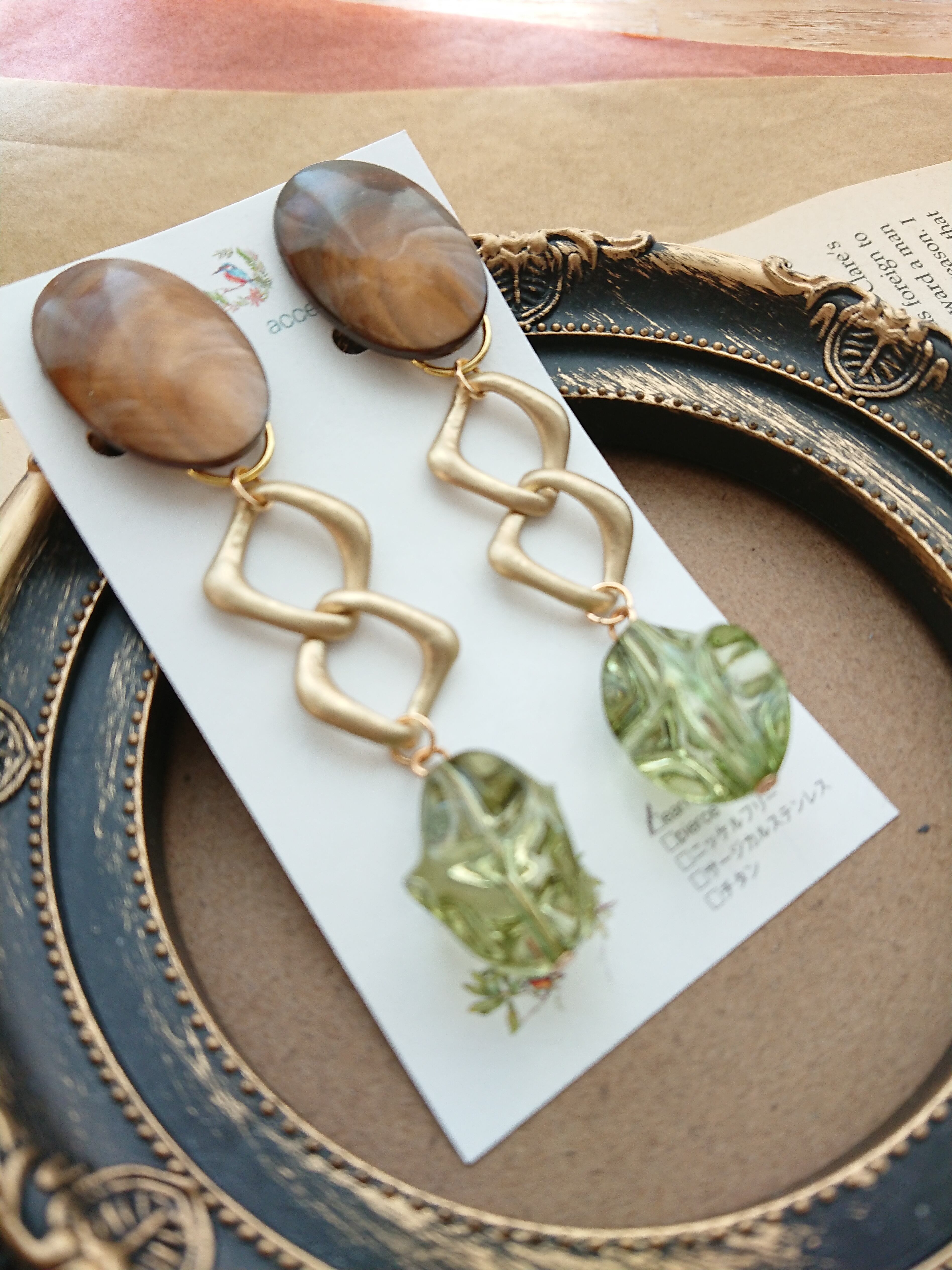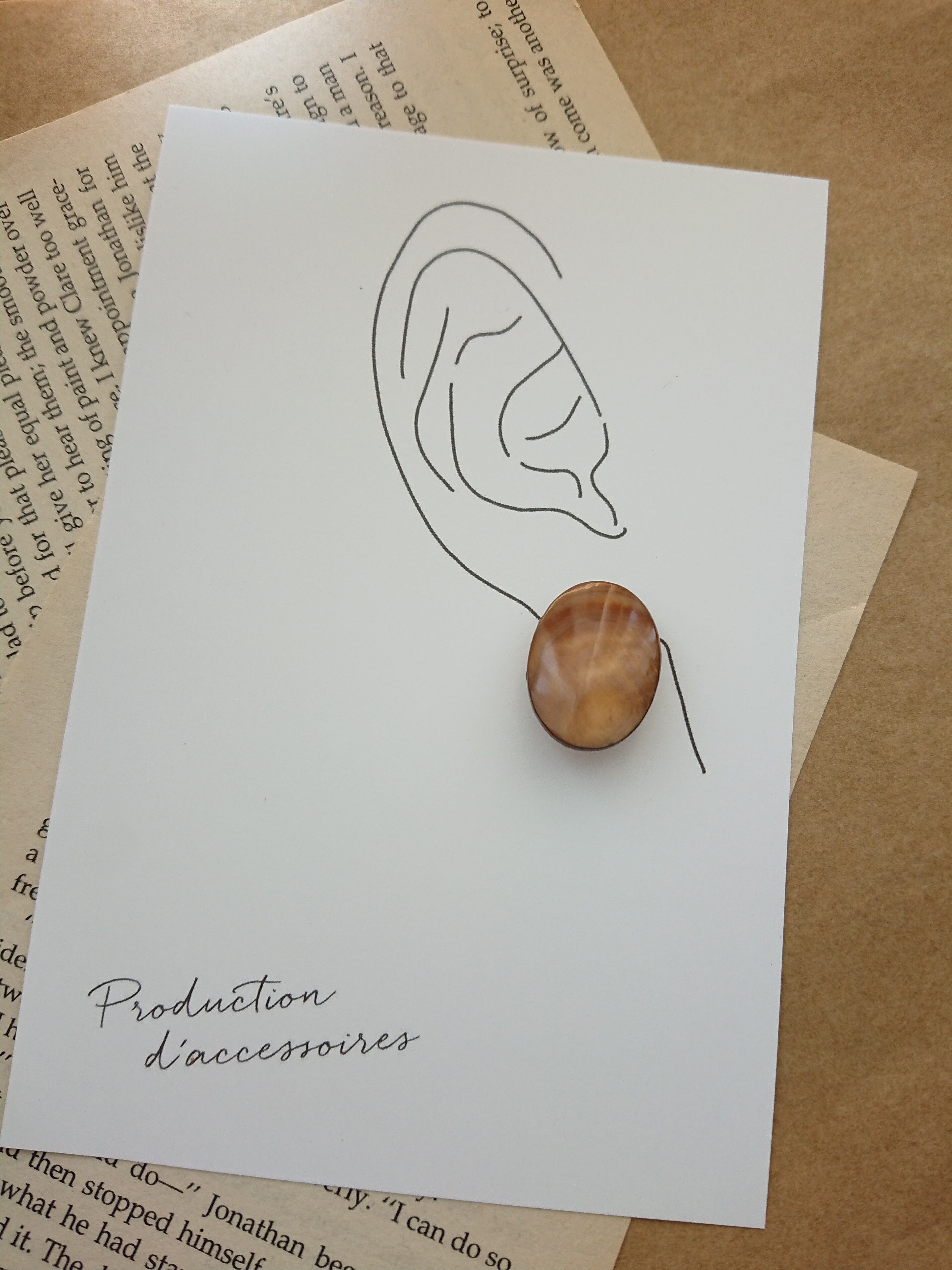 裏側に、イヤリング金具を、接着剤で接着後、レジンでコーティングしてあるので、丈夫です。