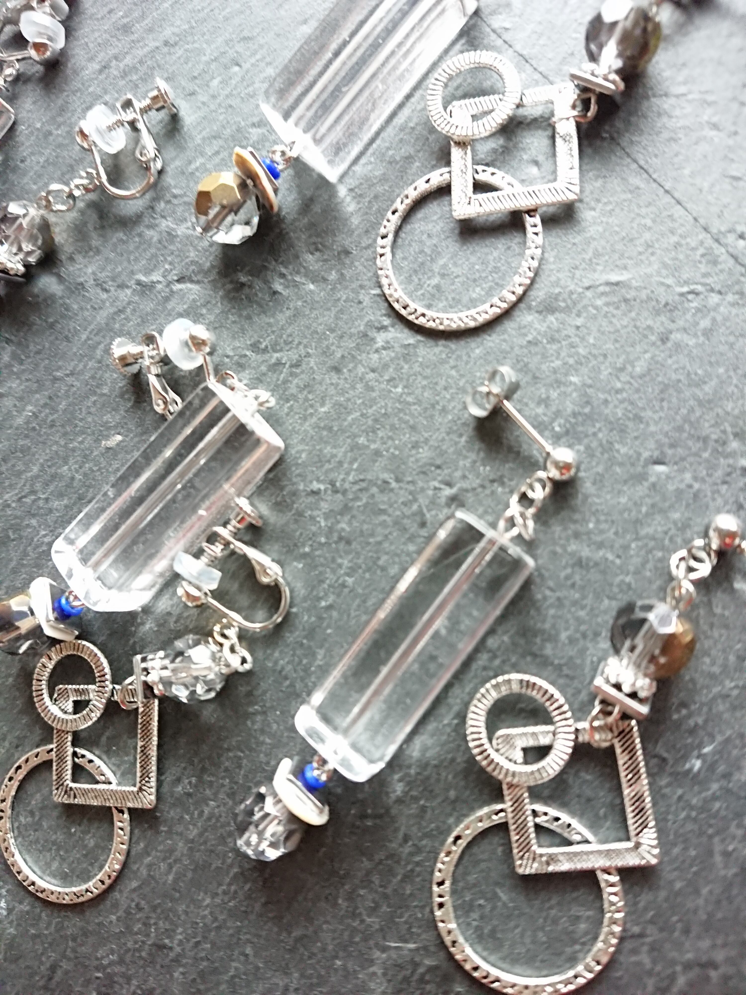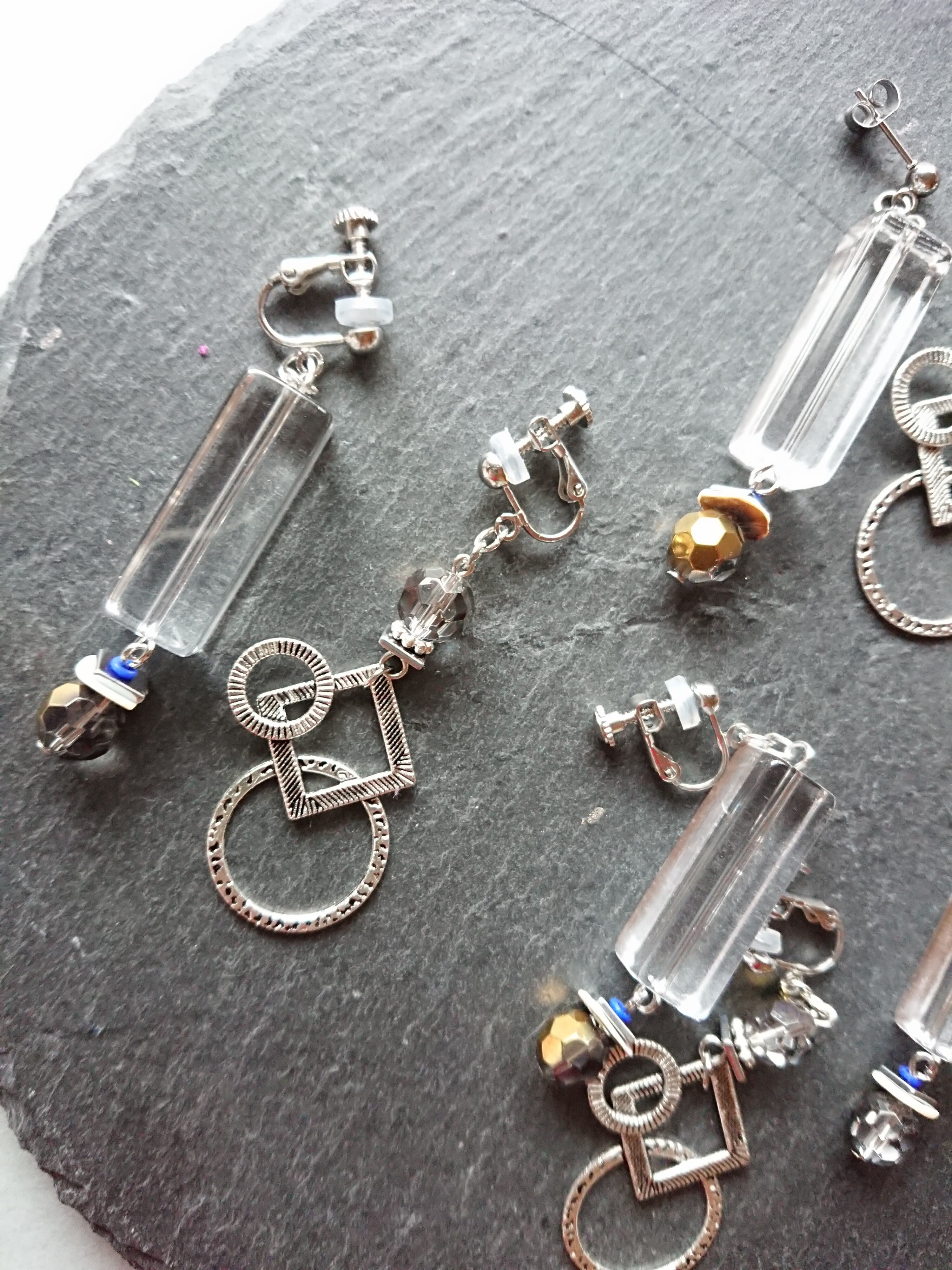 片方はゴールドの塗装、もう片方はクリアで中のグレーのようなシルバーのようなガラスがキラキラとします