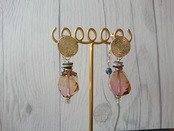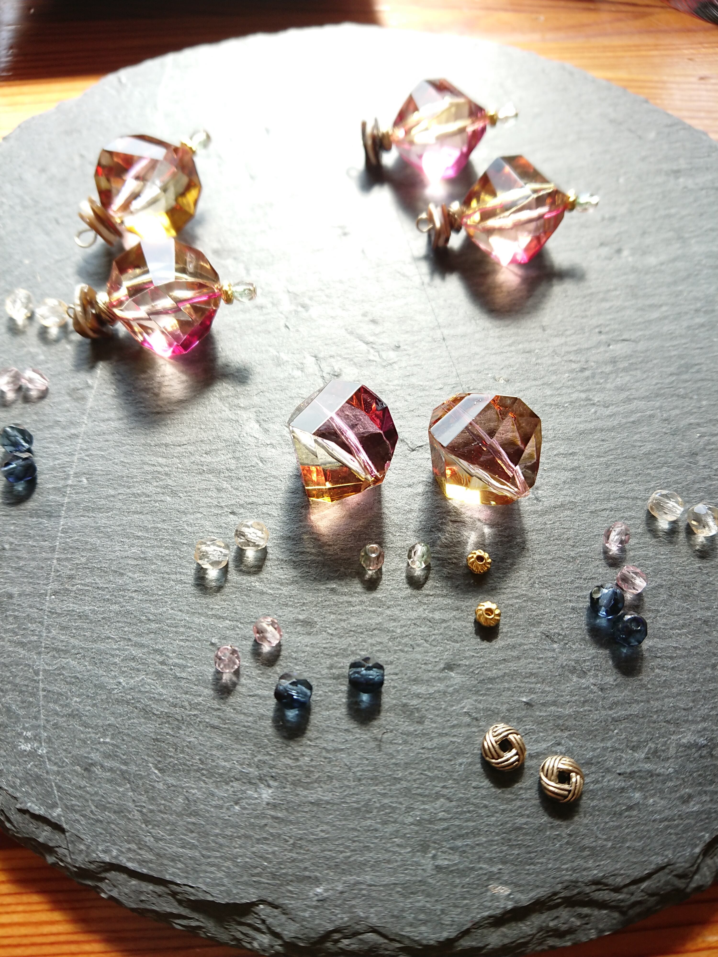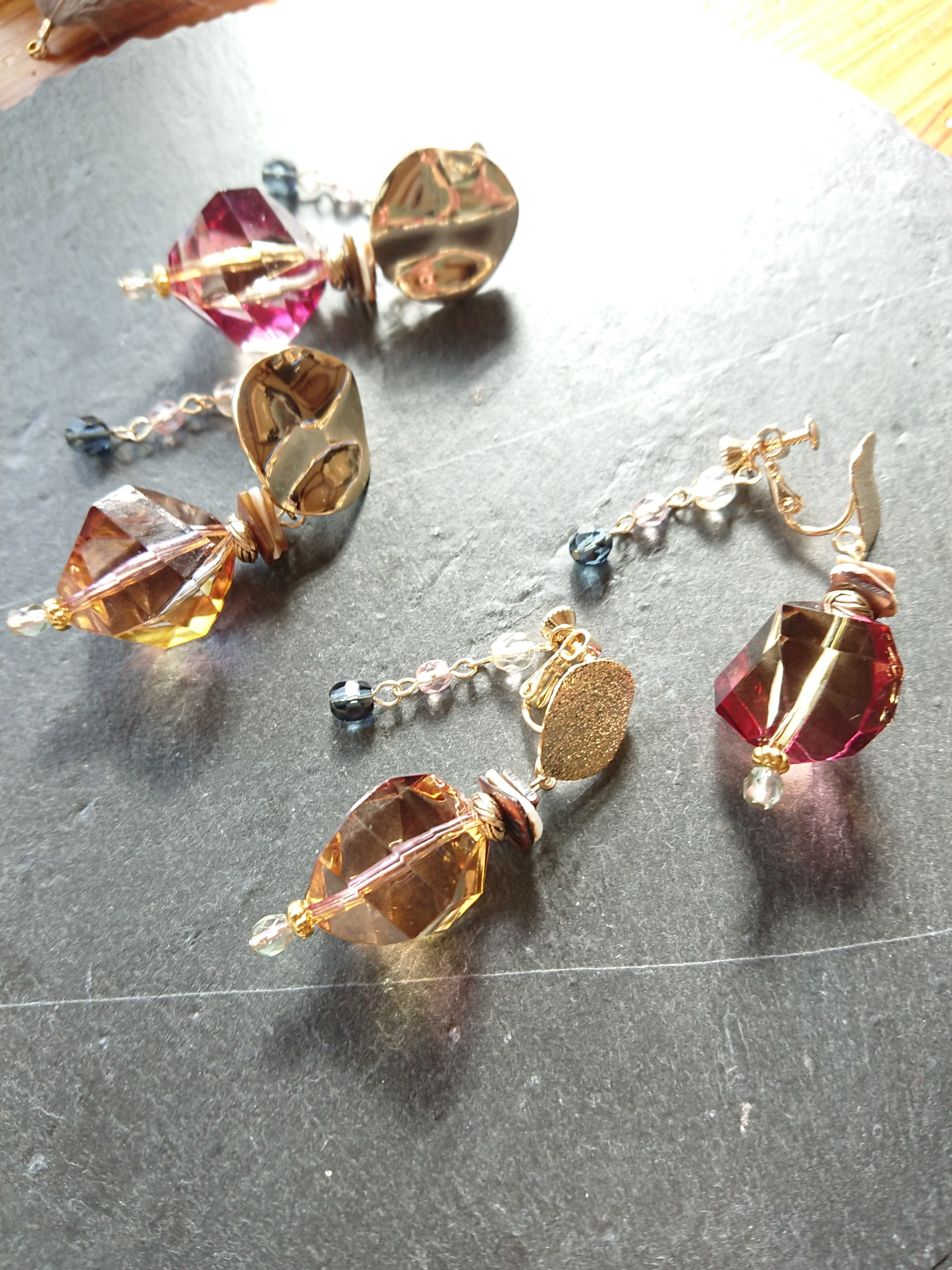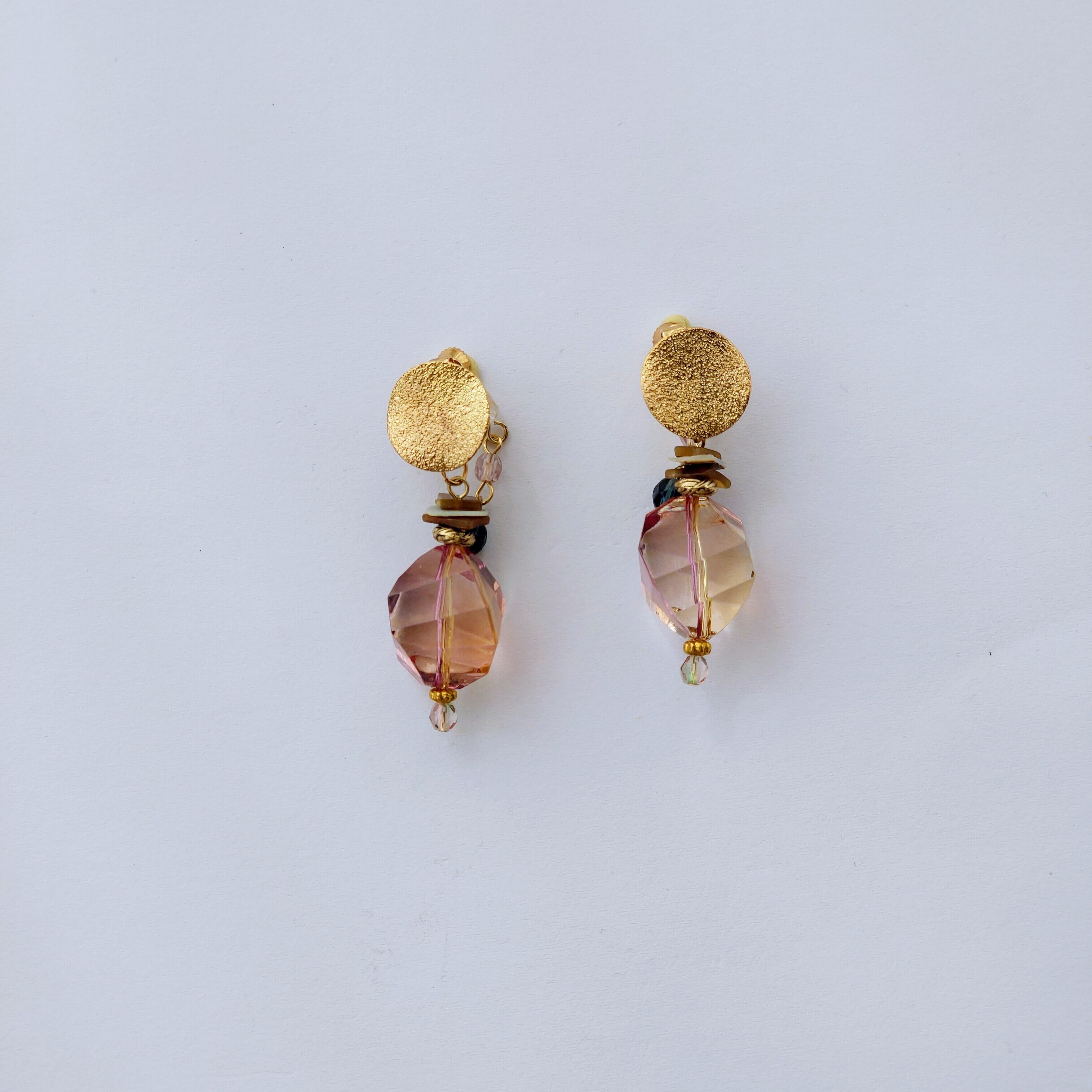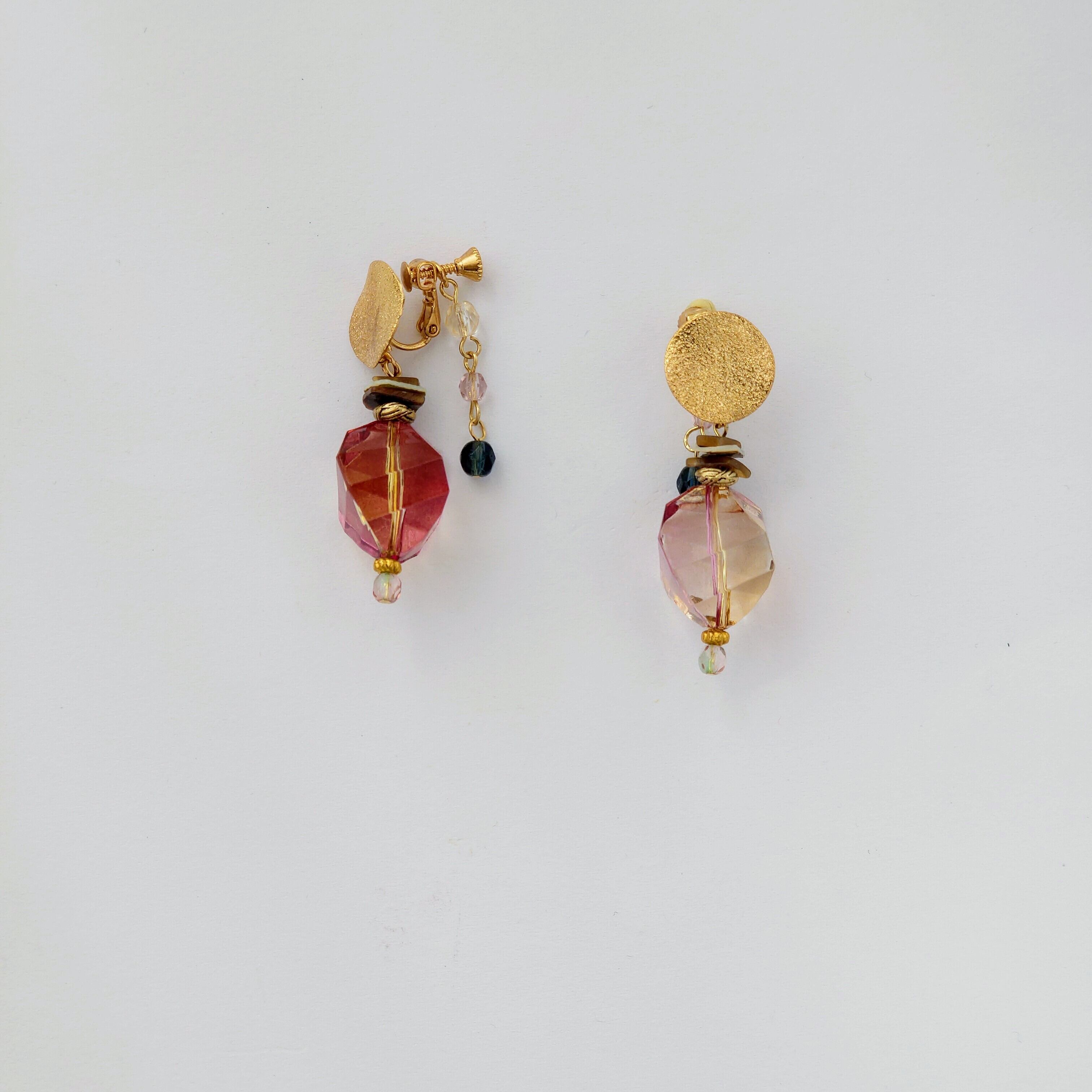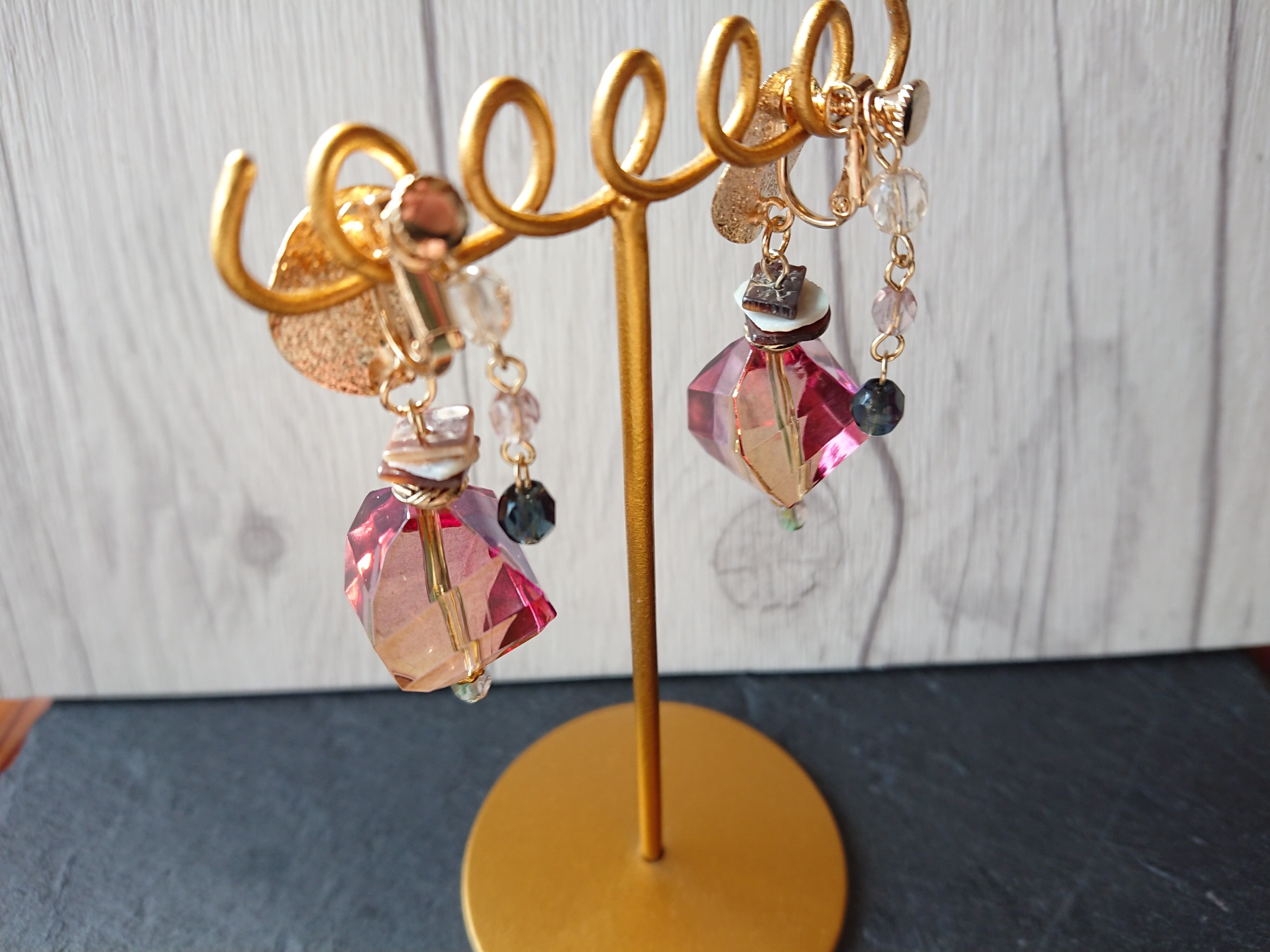 プリズム秋の日の出 大人のピンク グラデーションの綺麗な高級ビーズのデザインイヤリング