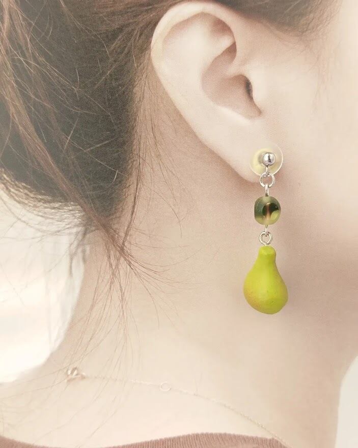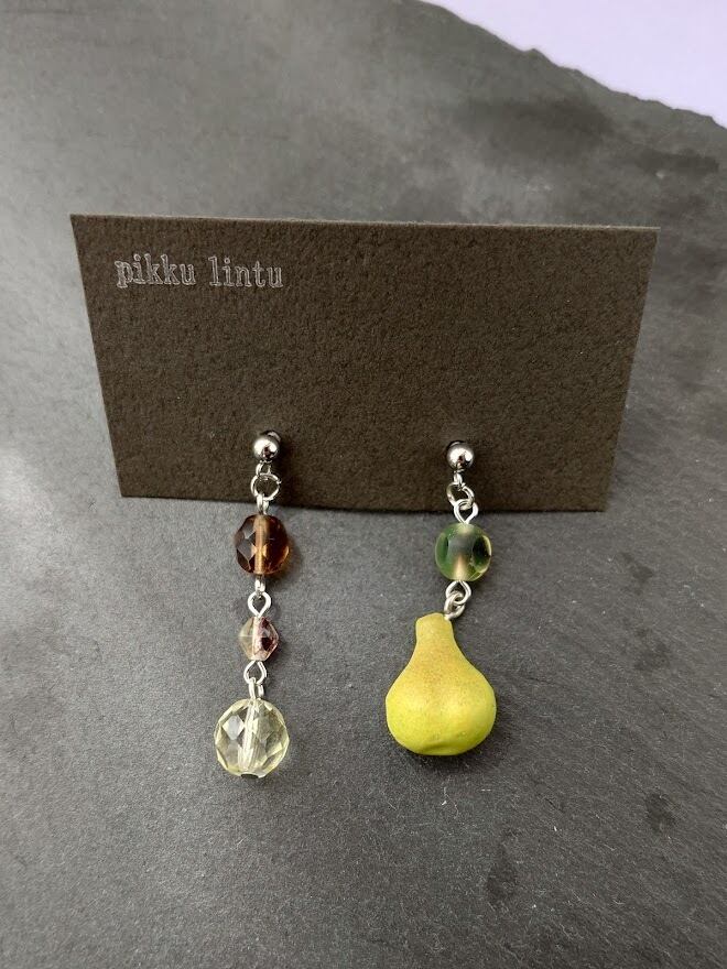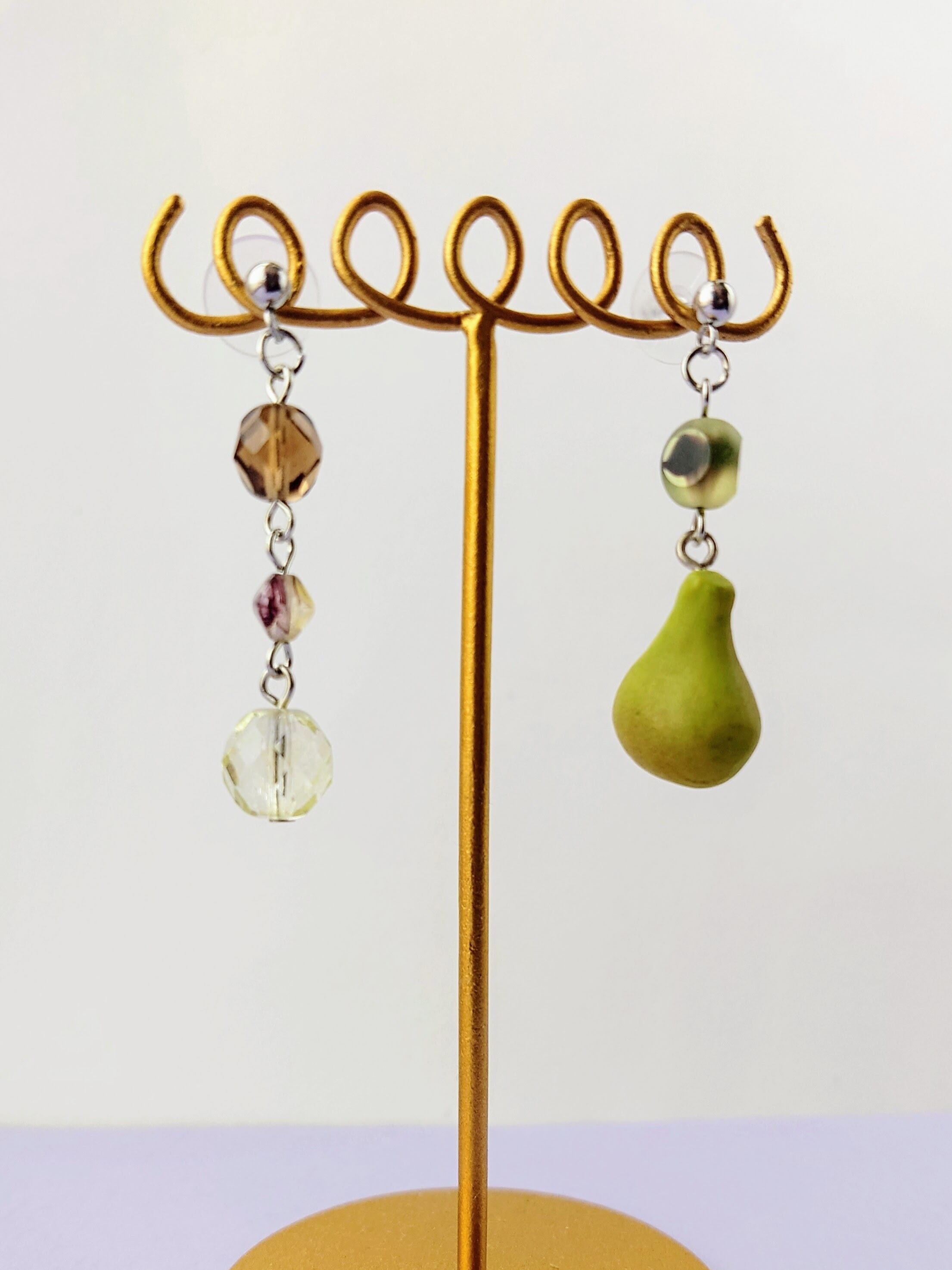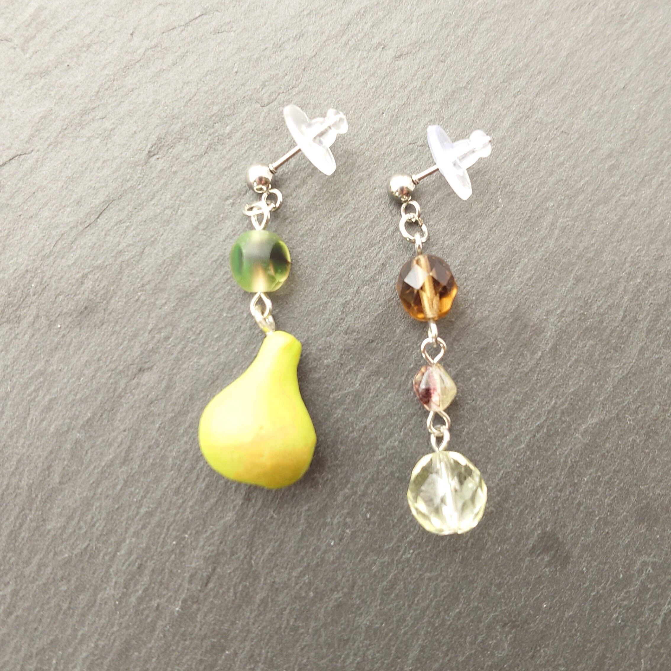 チェコビーズと梨のビーズの上質上品な大人フルーツピアス・イヤリング