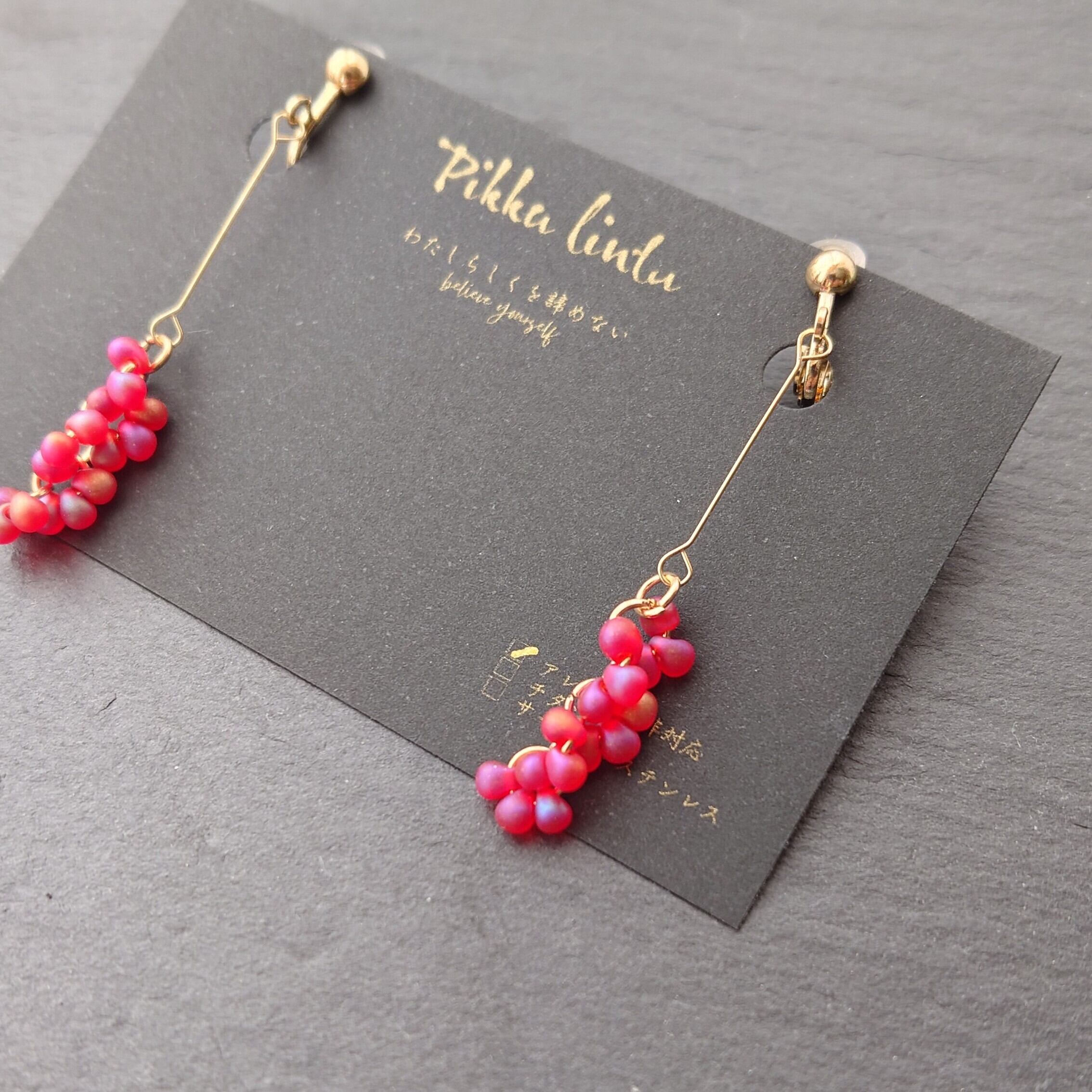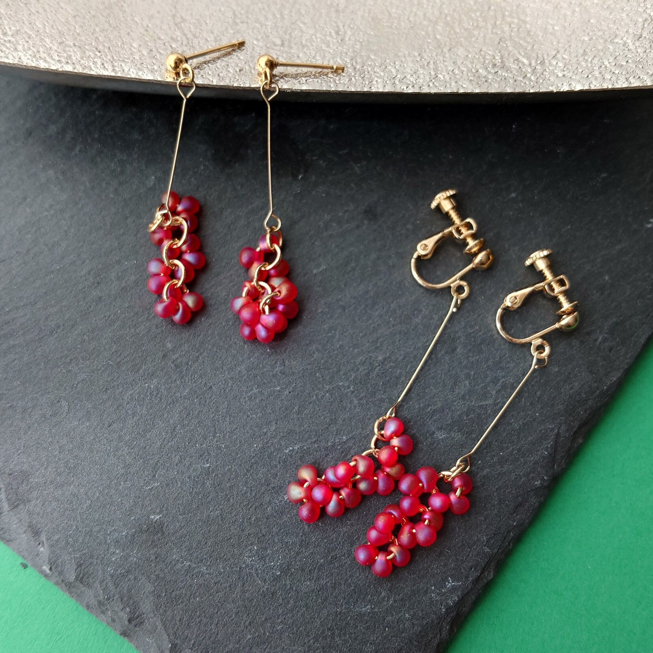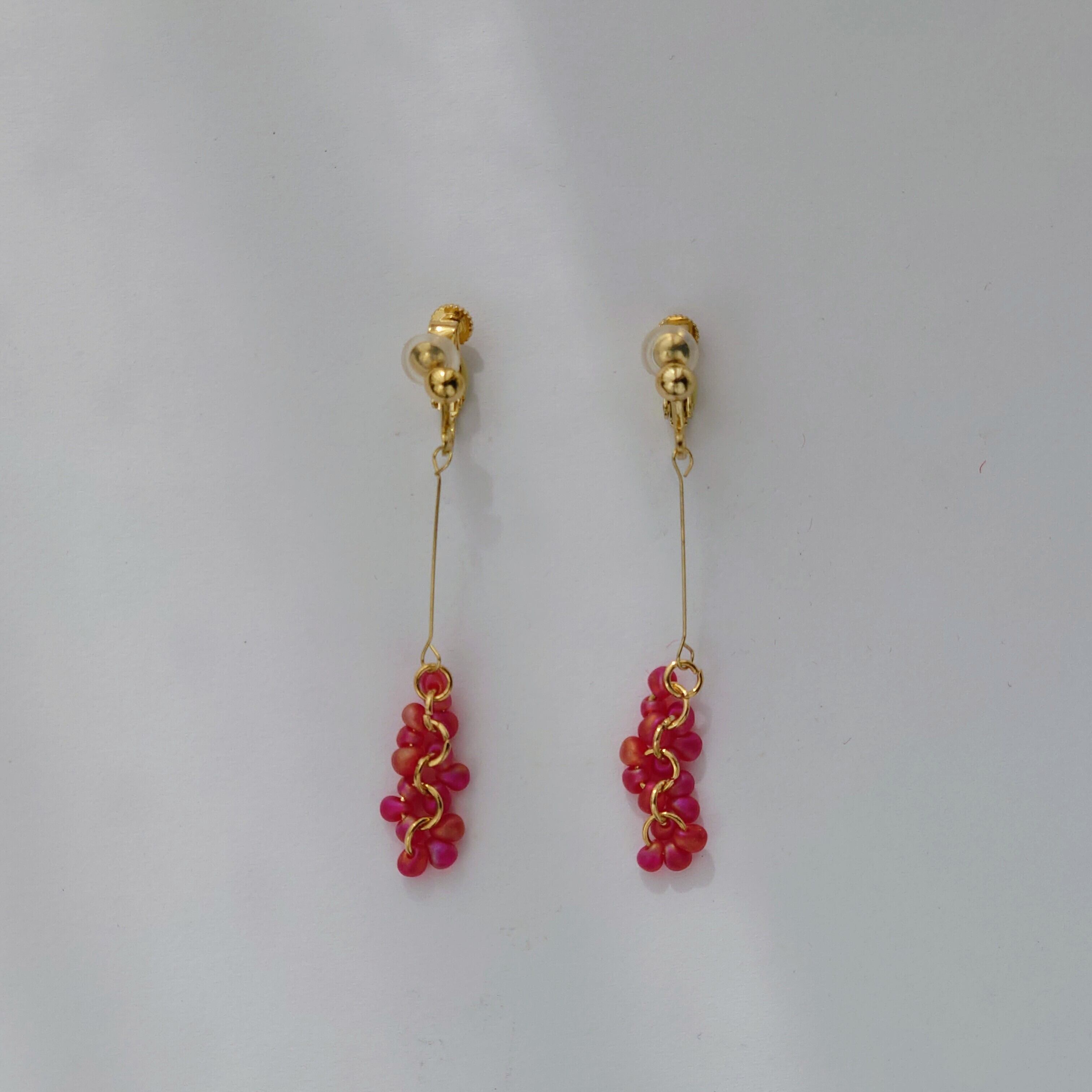 【berry】赤いつぶつぶの華奢ロングイヤリング