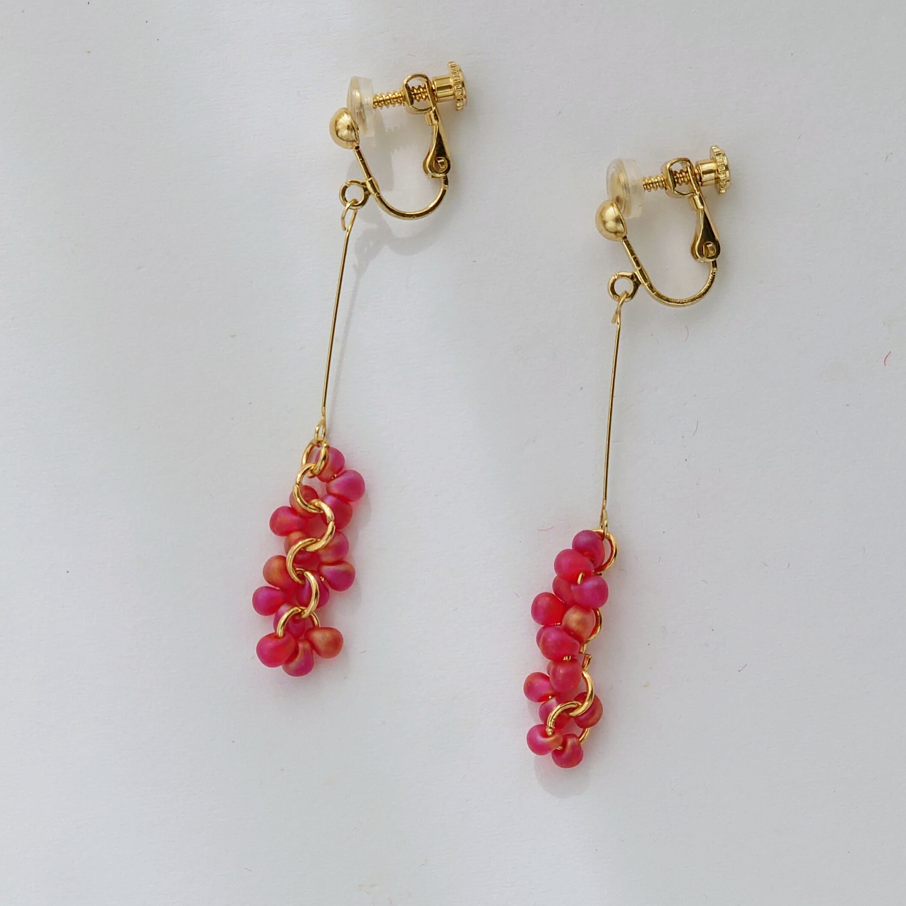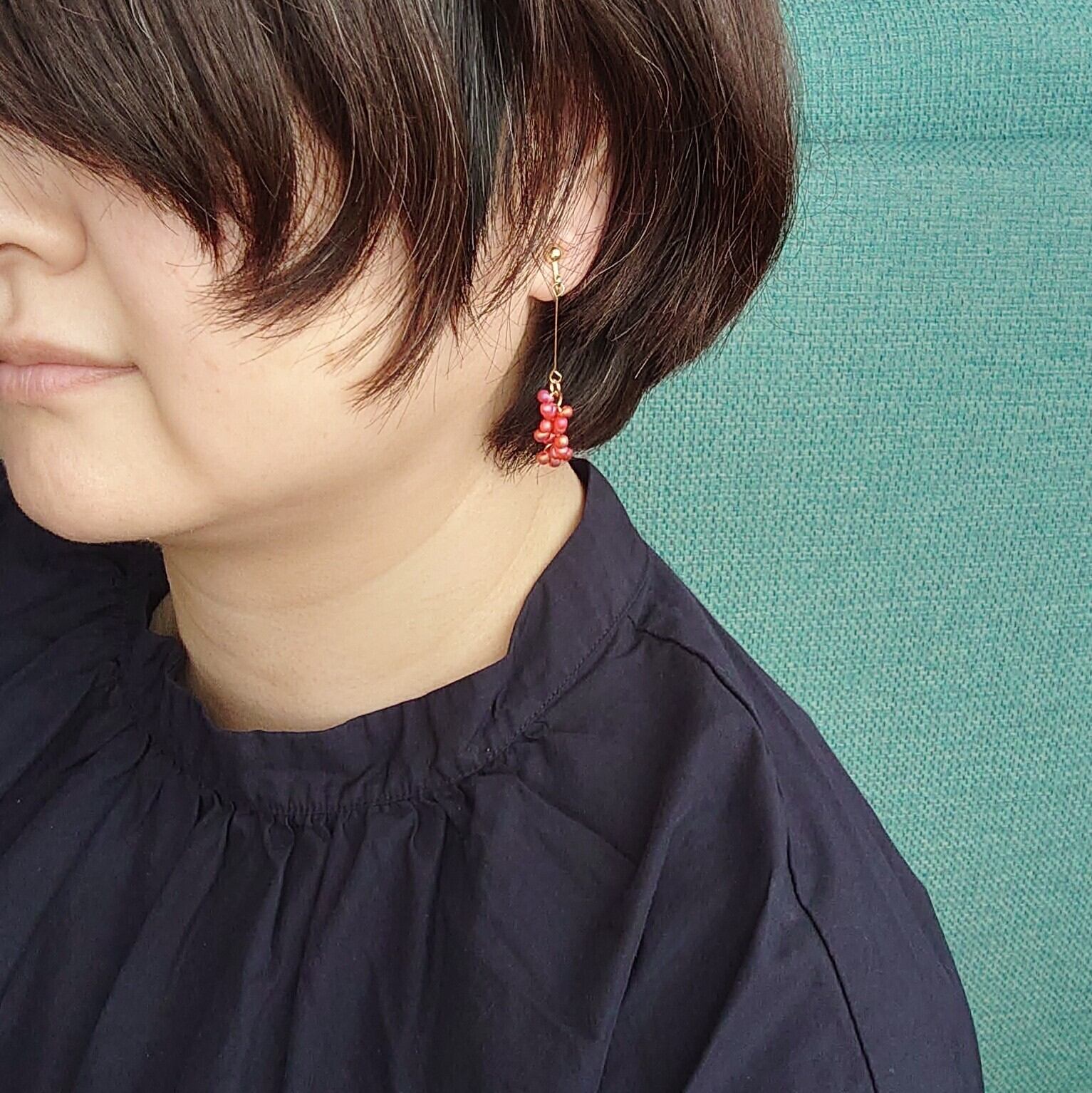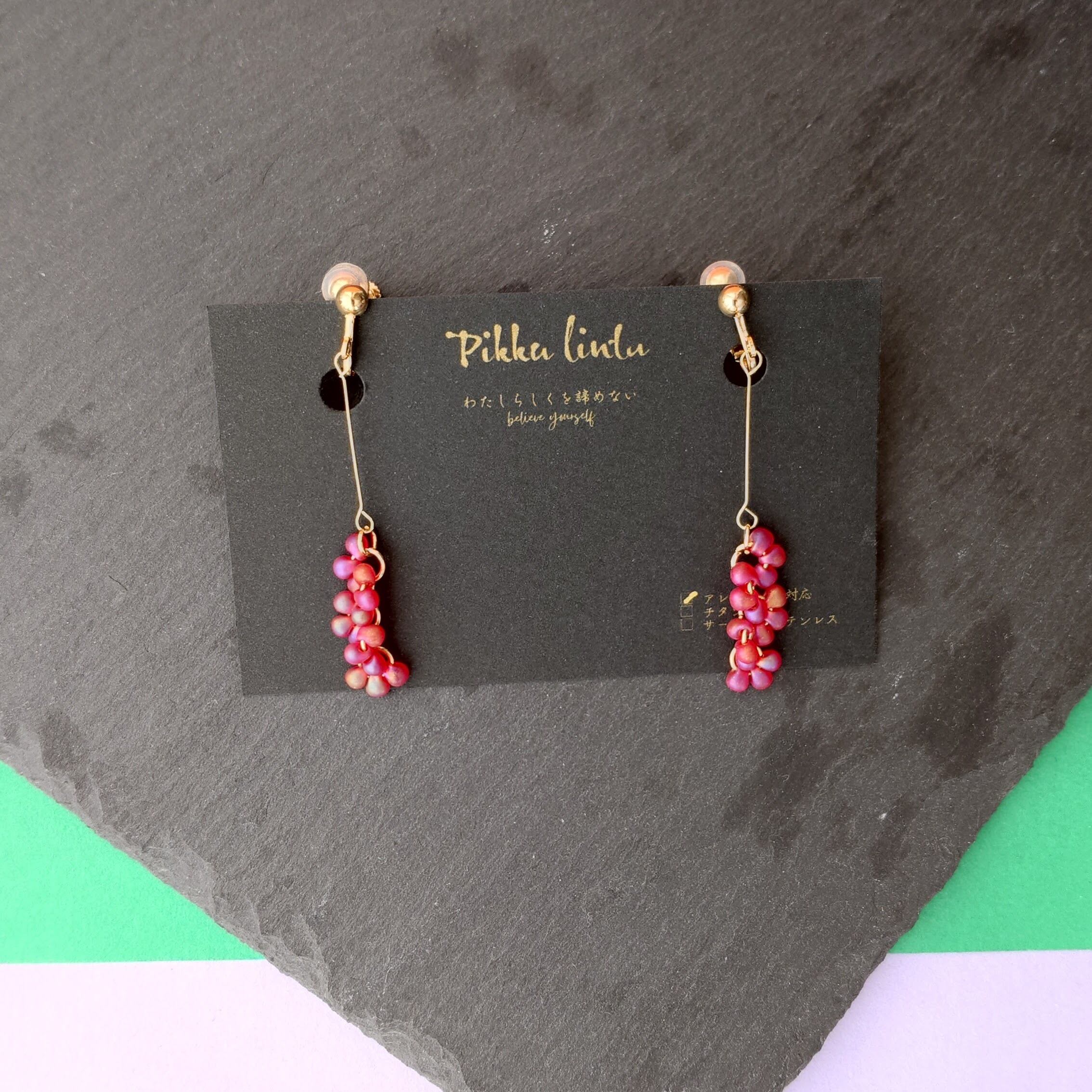 【berry】赤いつぶつぶの華奢ロングイヤリング