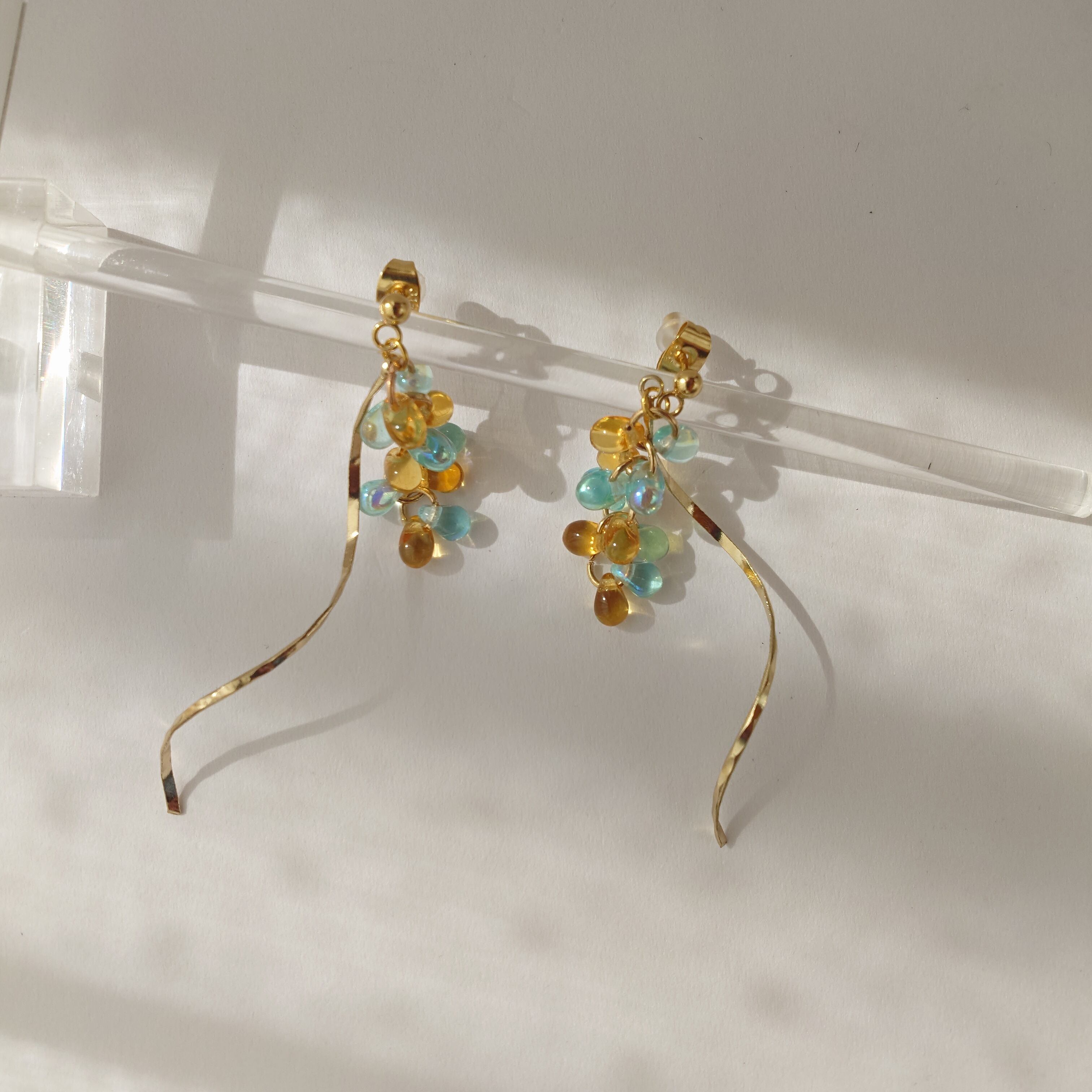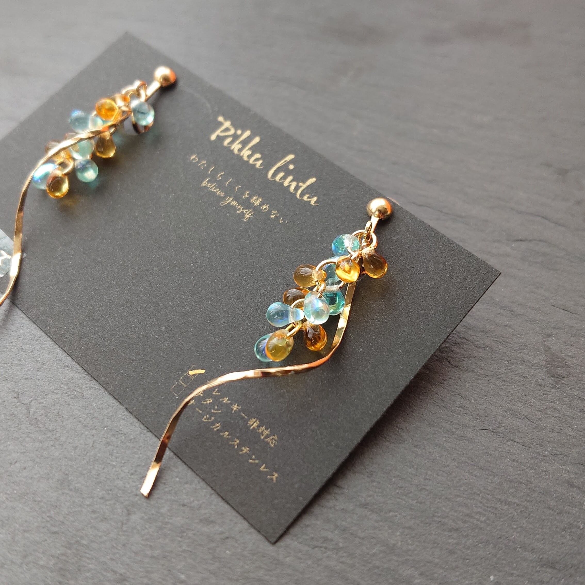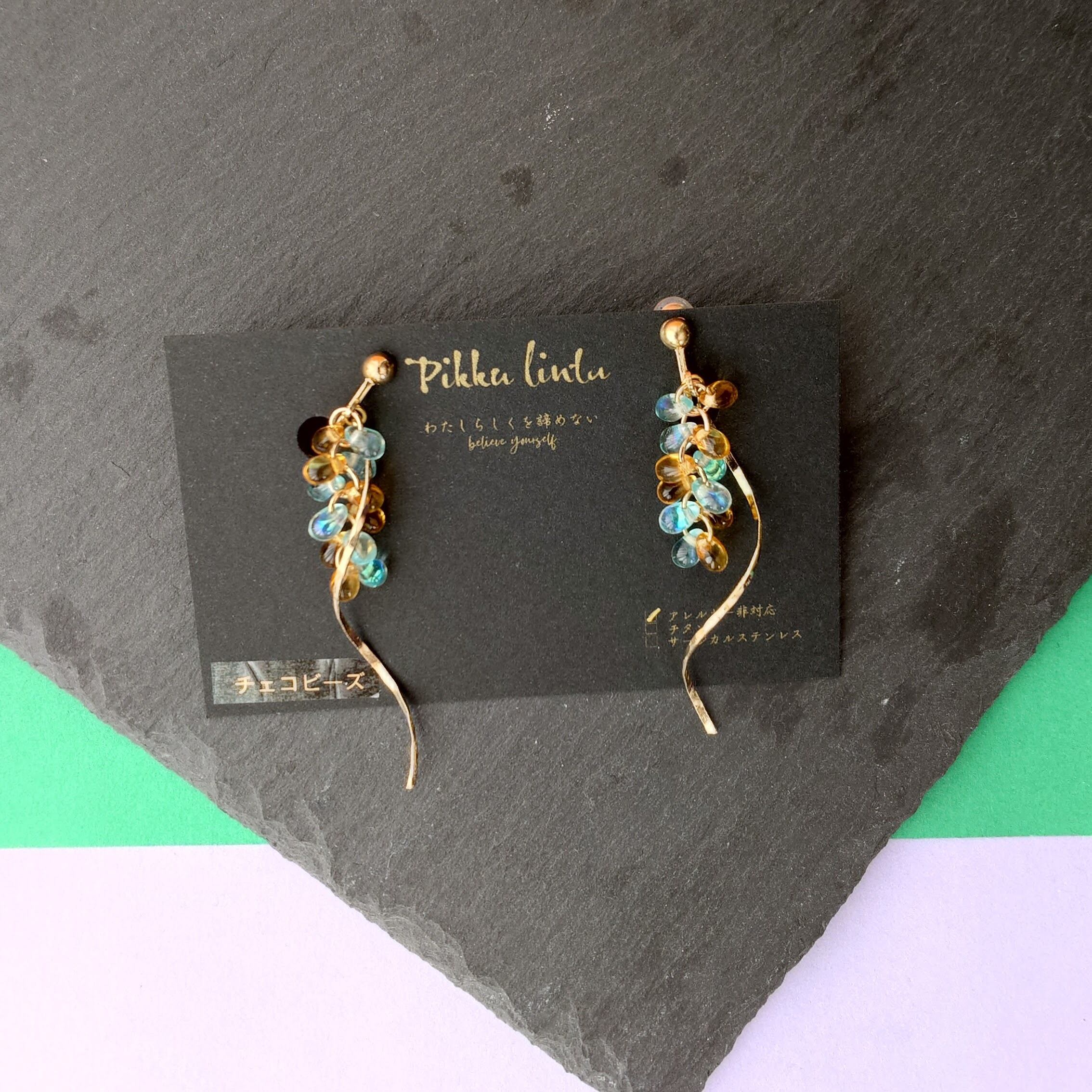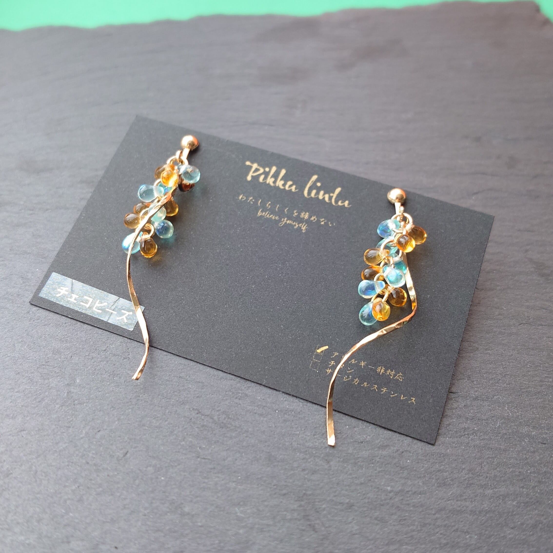 枝垂れる雫のイヤリング 2色のつぶつぶチェコビーズ