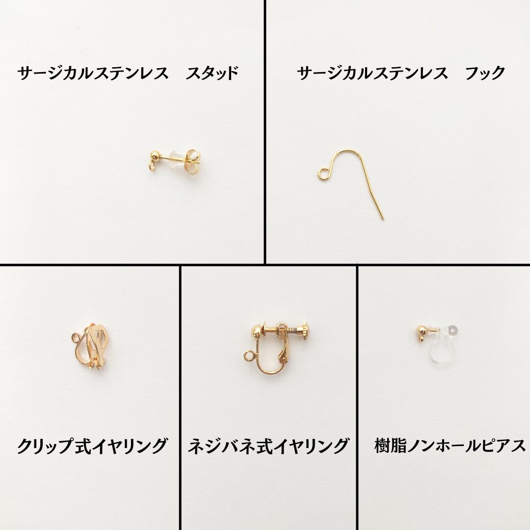 ※イヤリング金具の耳たぶ後ろ側には、ゴムカバーをお付けしております。痛みが生じにくく、落ちにくいと好評をいただいております。(ただし個人差がございますのでご了承ください。)