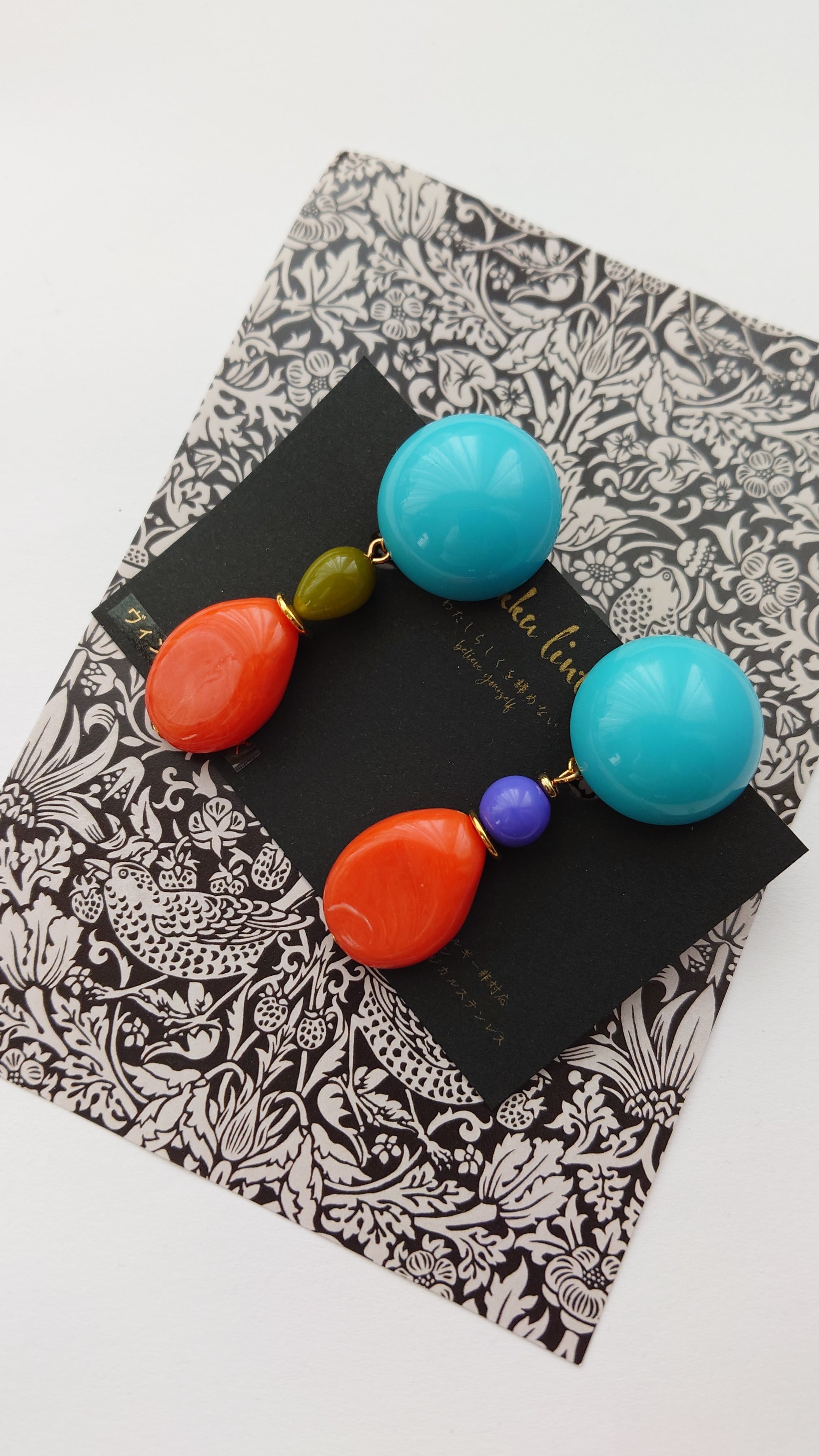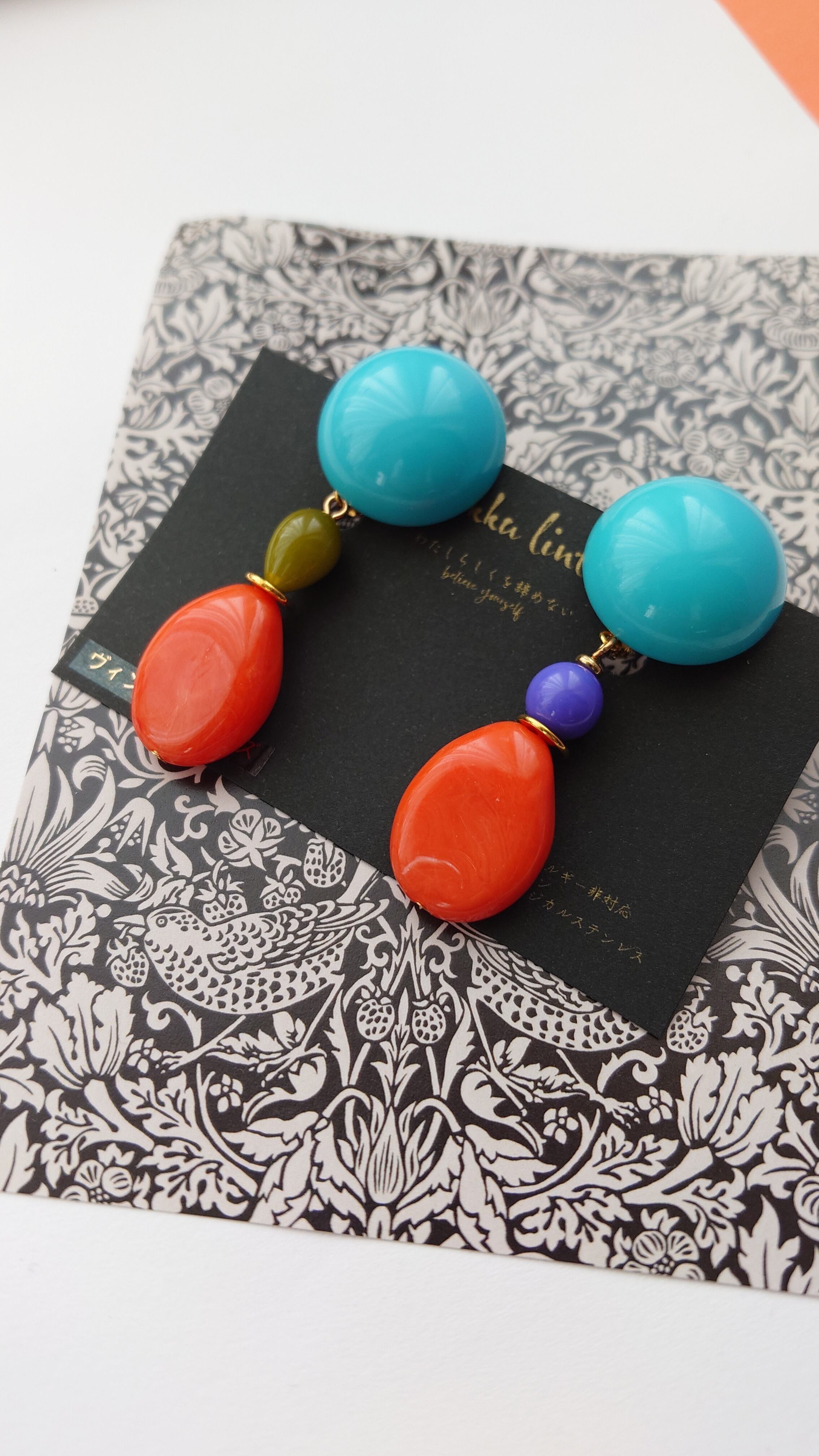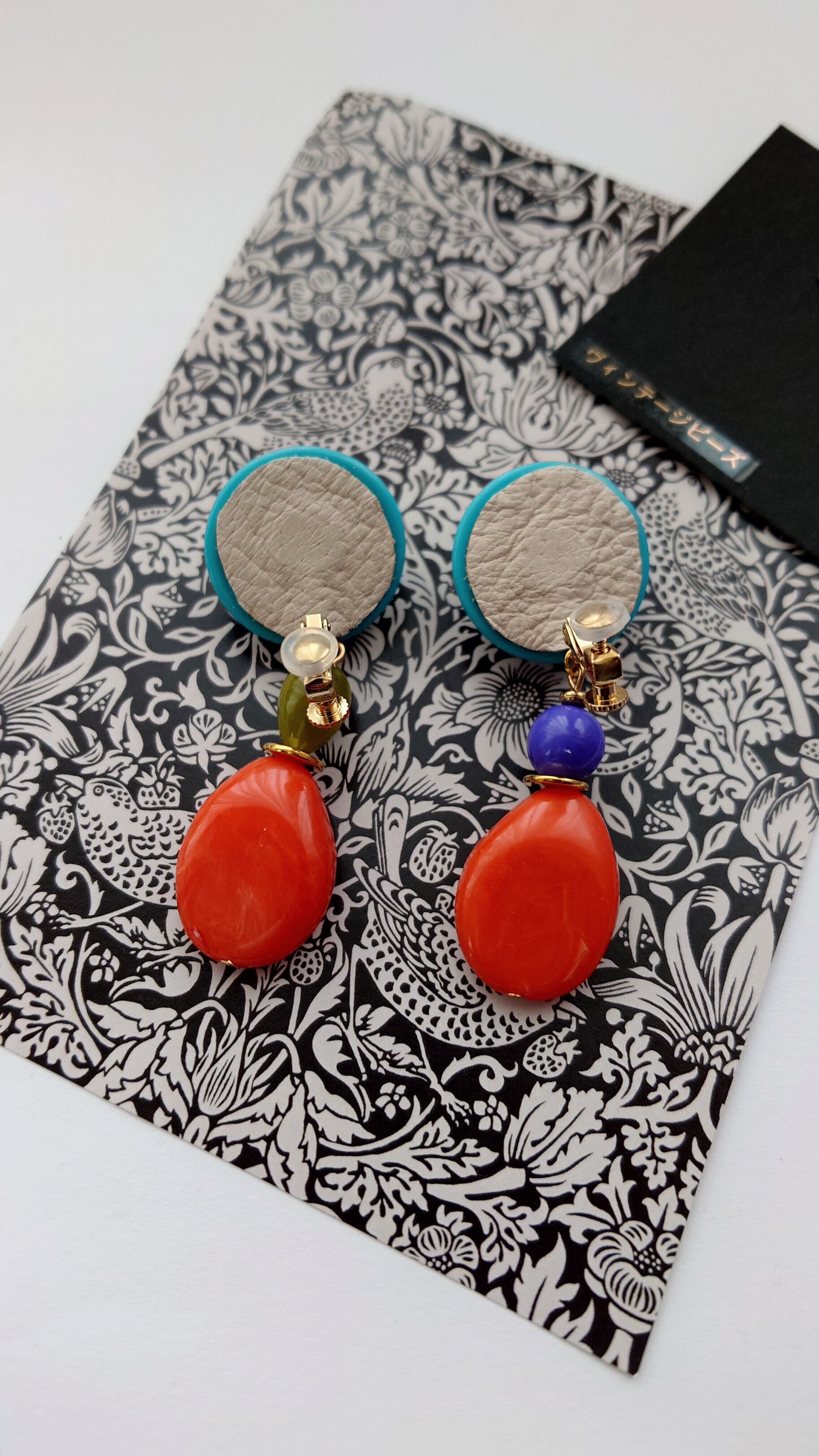 とびきりレトロでカラフルなブルー×オレンジの大ぶりイヤリング