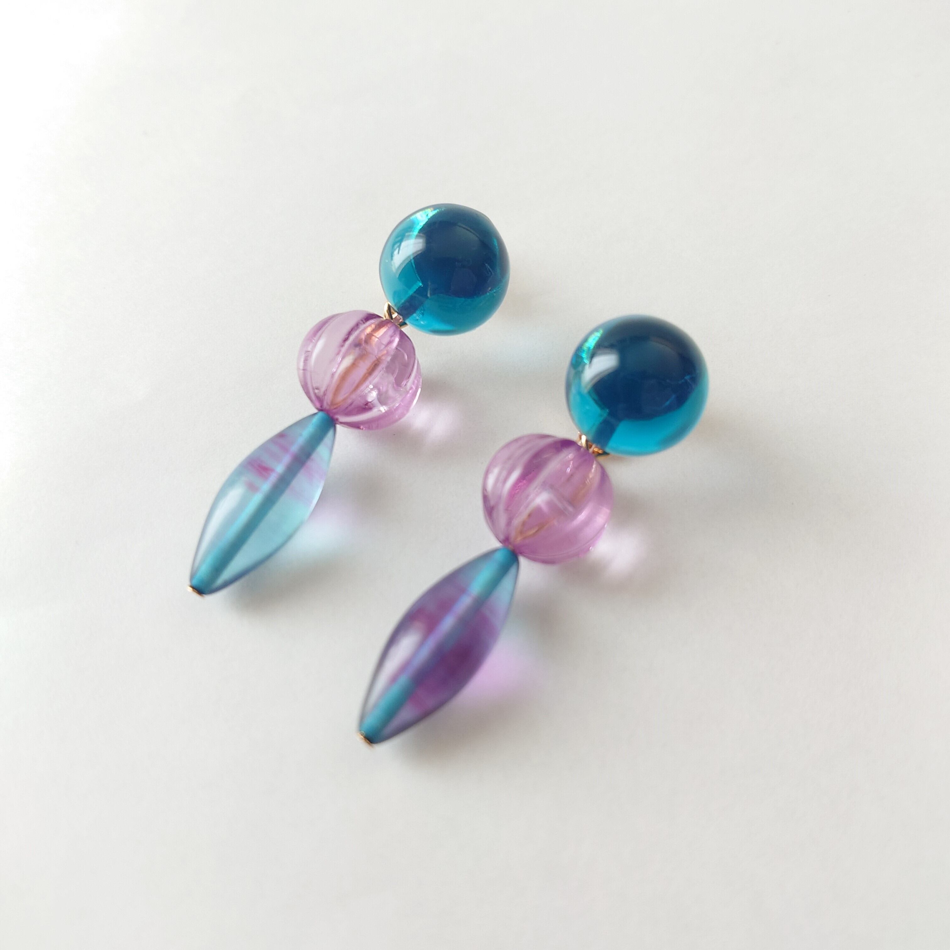 とびきり美しい色合いと透明感を楽しめる、夏の耳飾りが出来ました!
