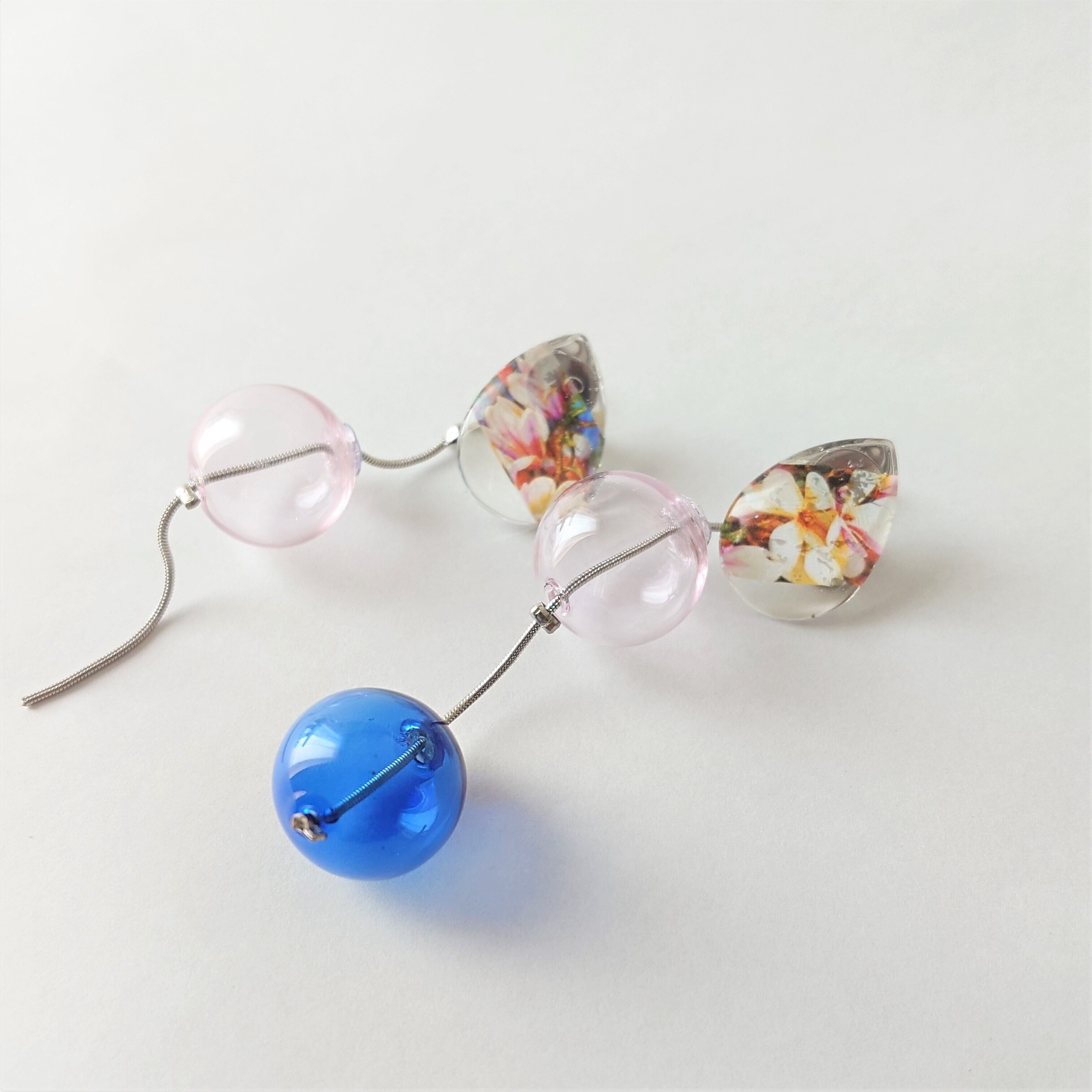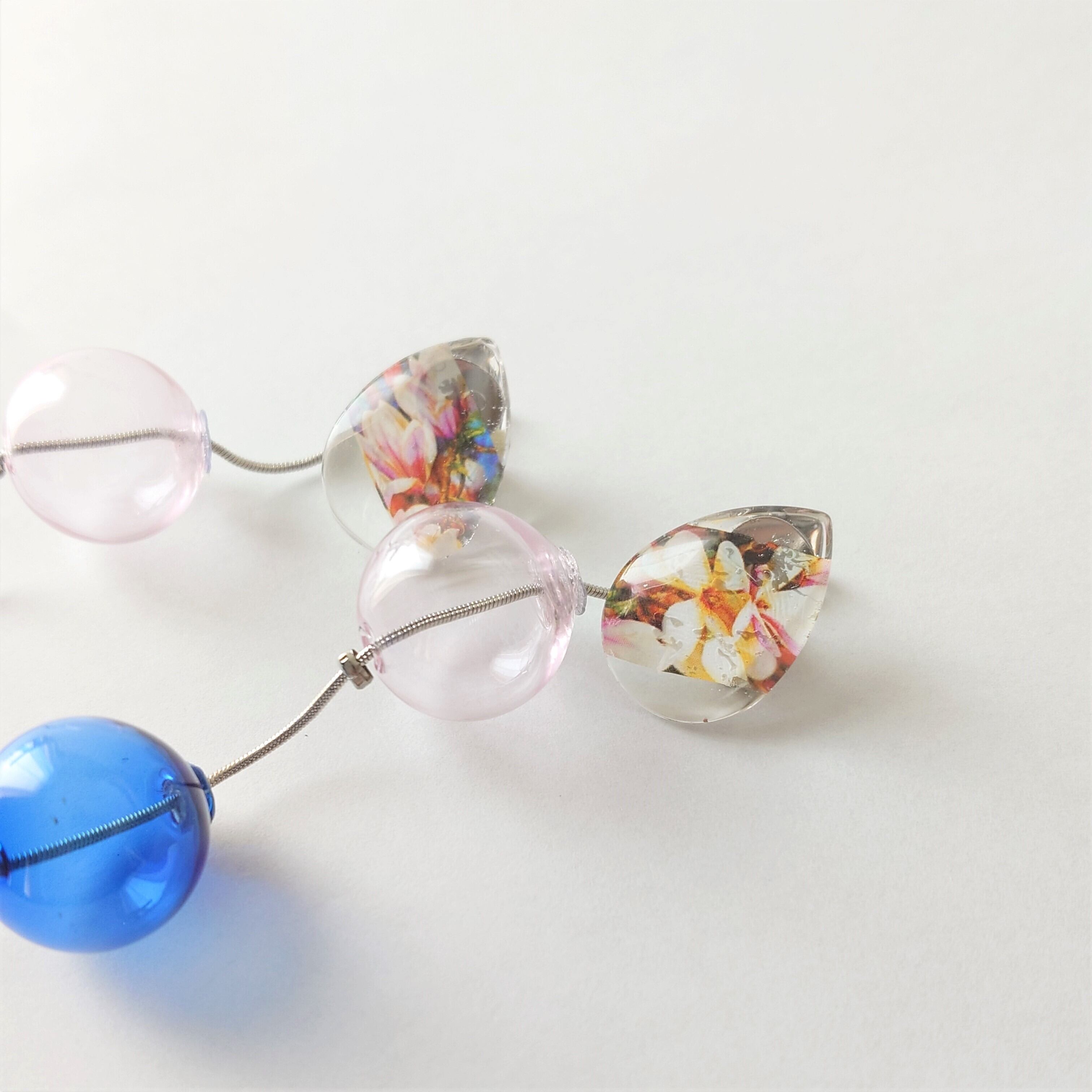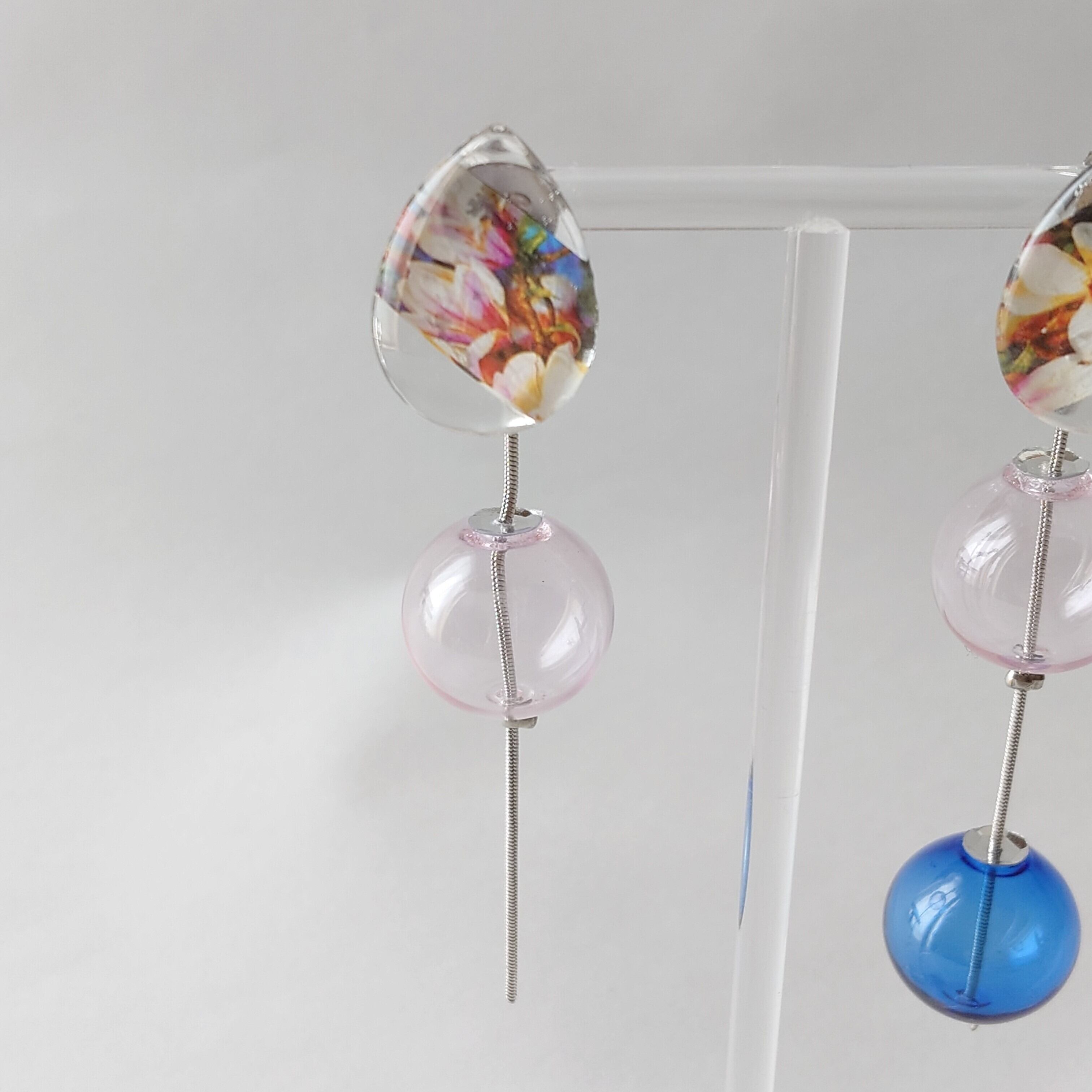 受注生産:透明感と透き通る色合いが美しい アートなガラスボール耳飾り (イヤリング)