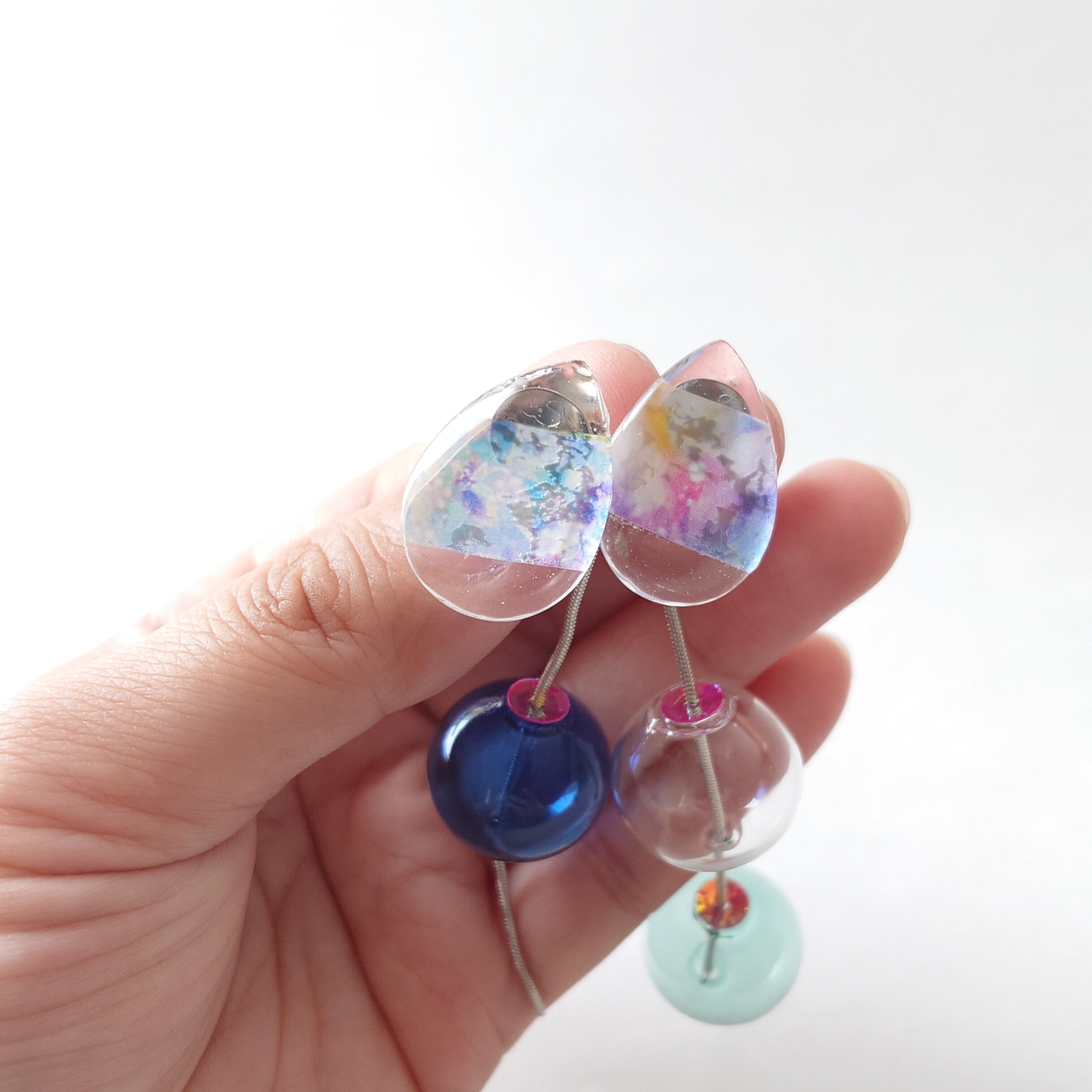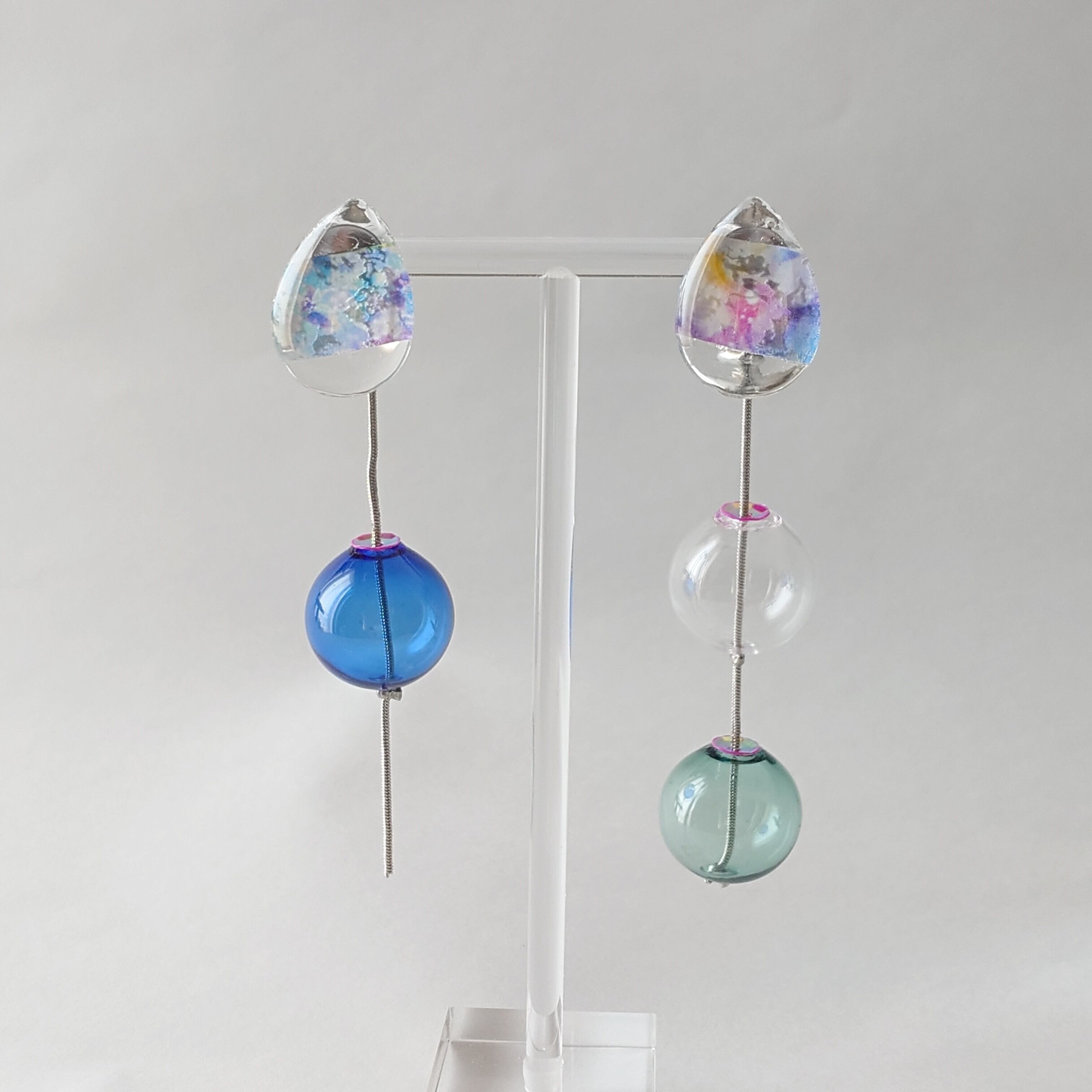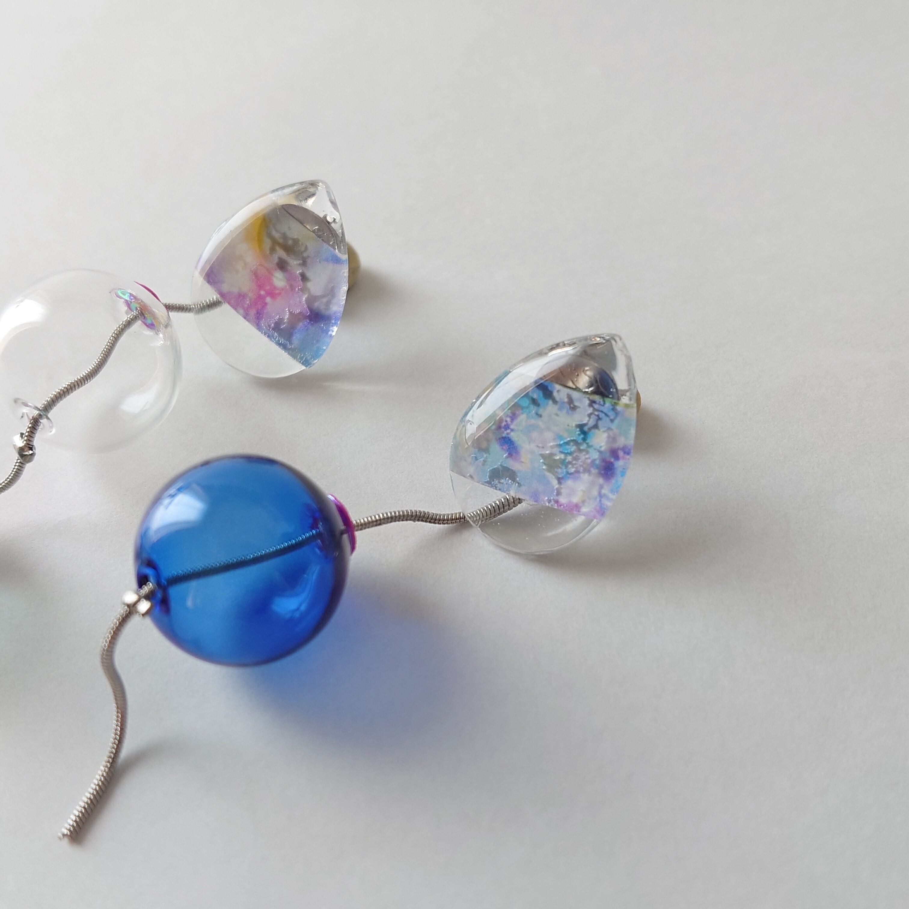 受注生産:透明感と透き通る色合いが美しい アートなガラスボール耳飾り (イヤリング)