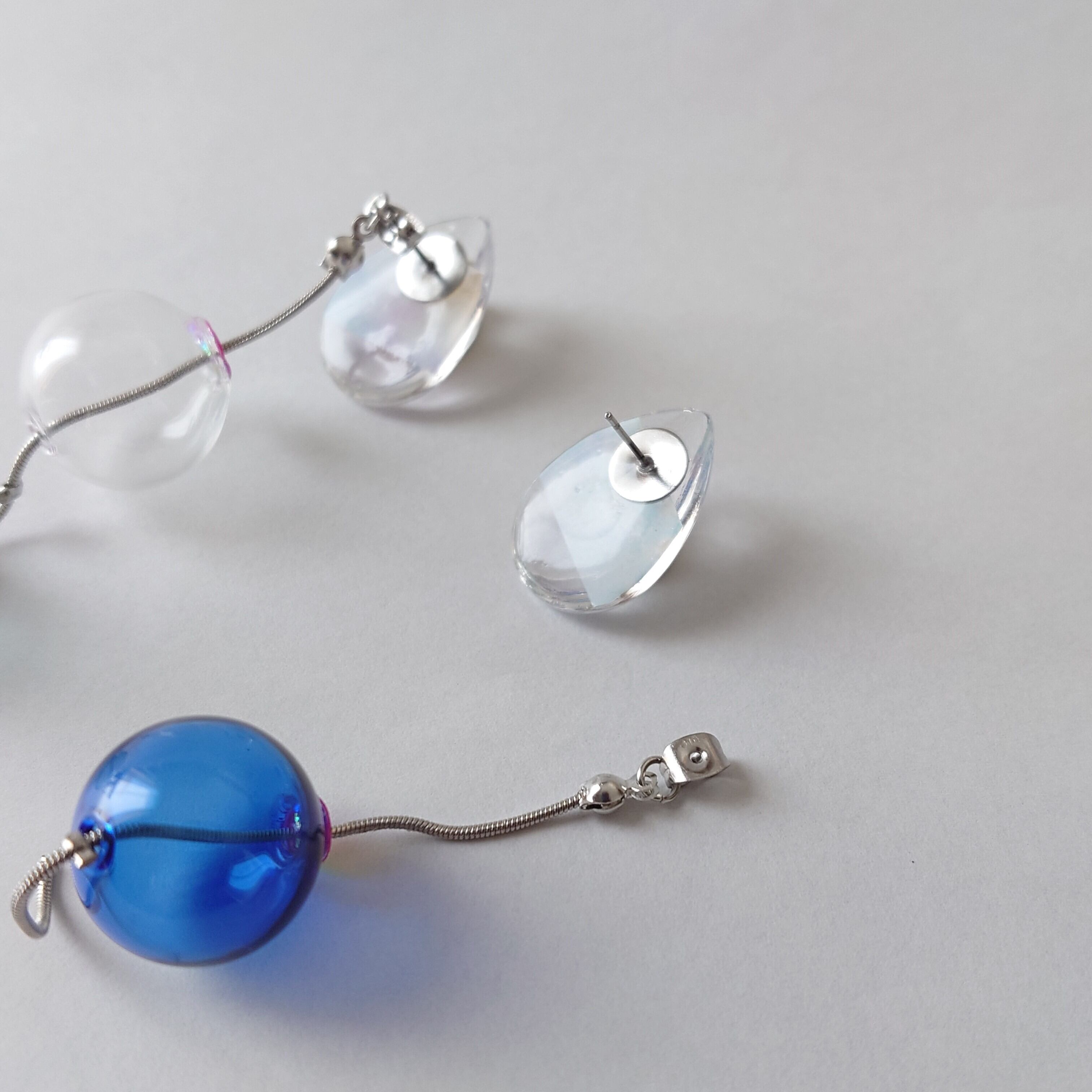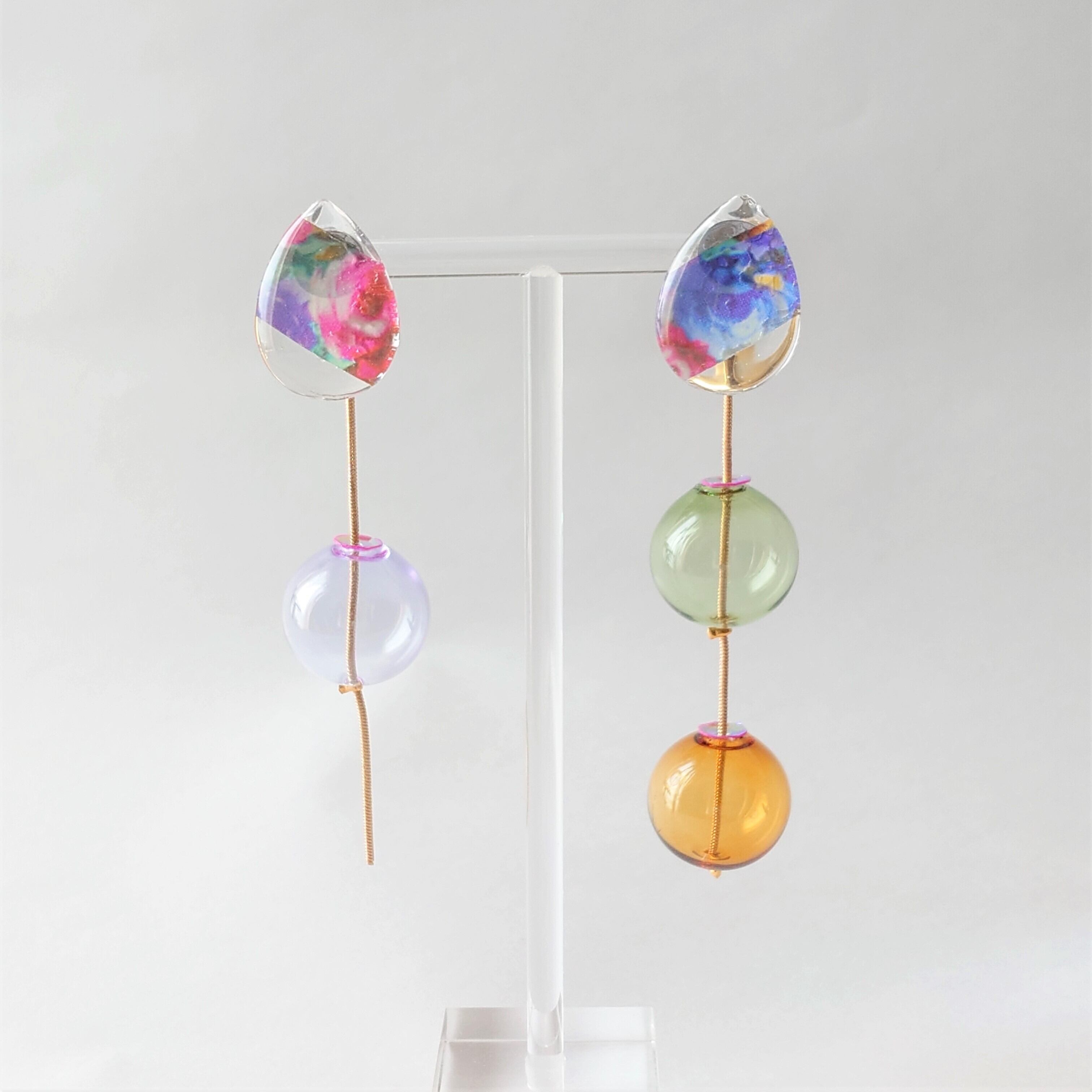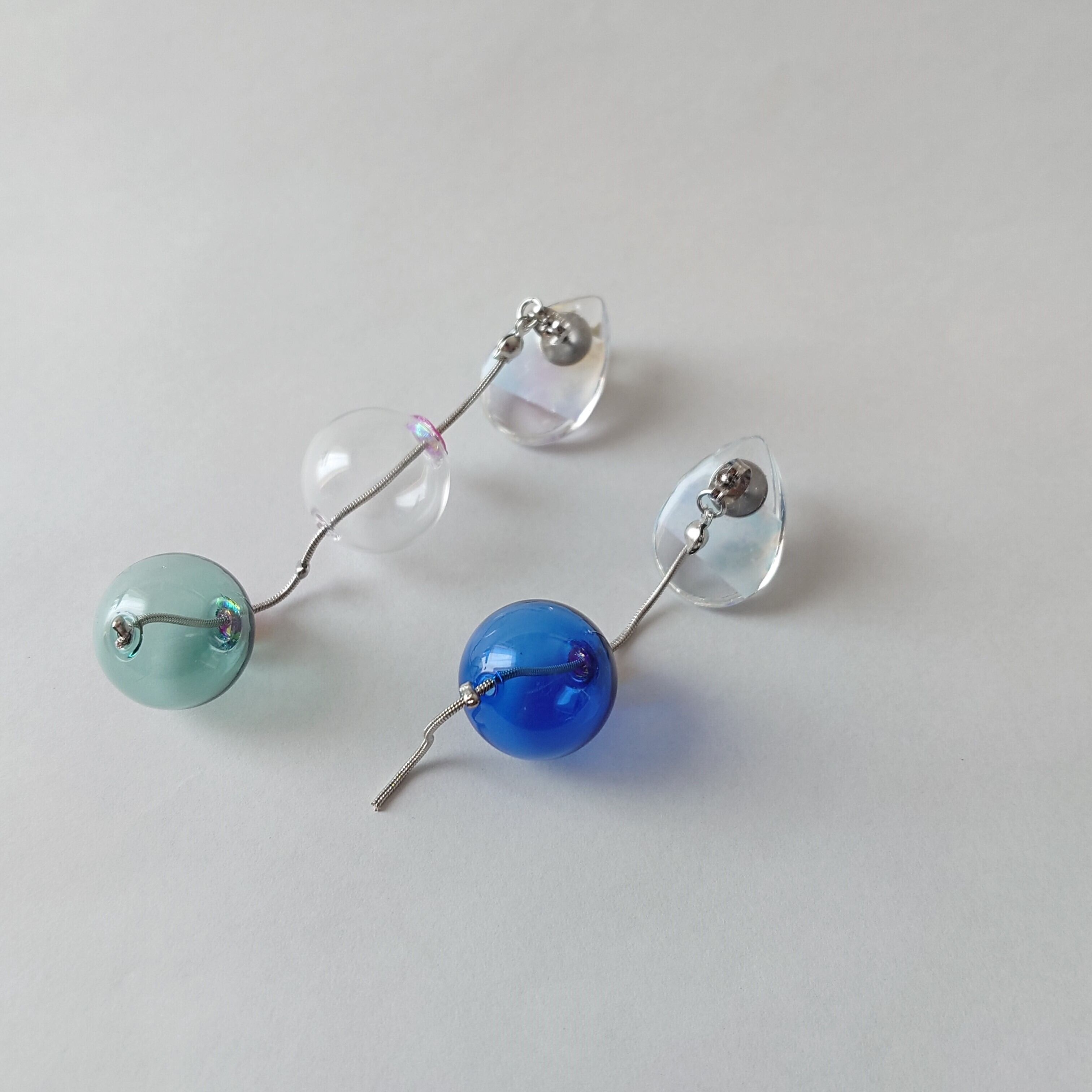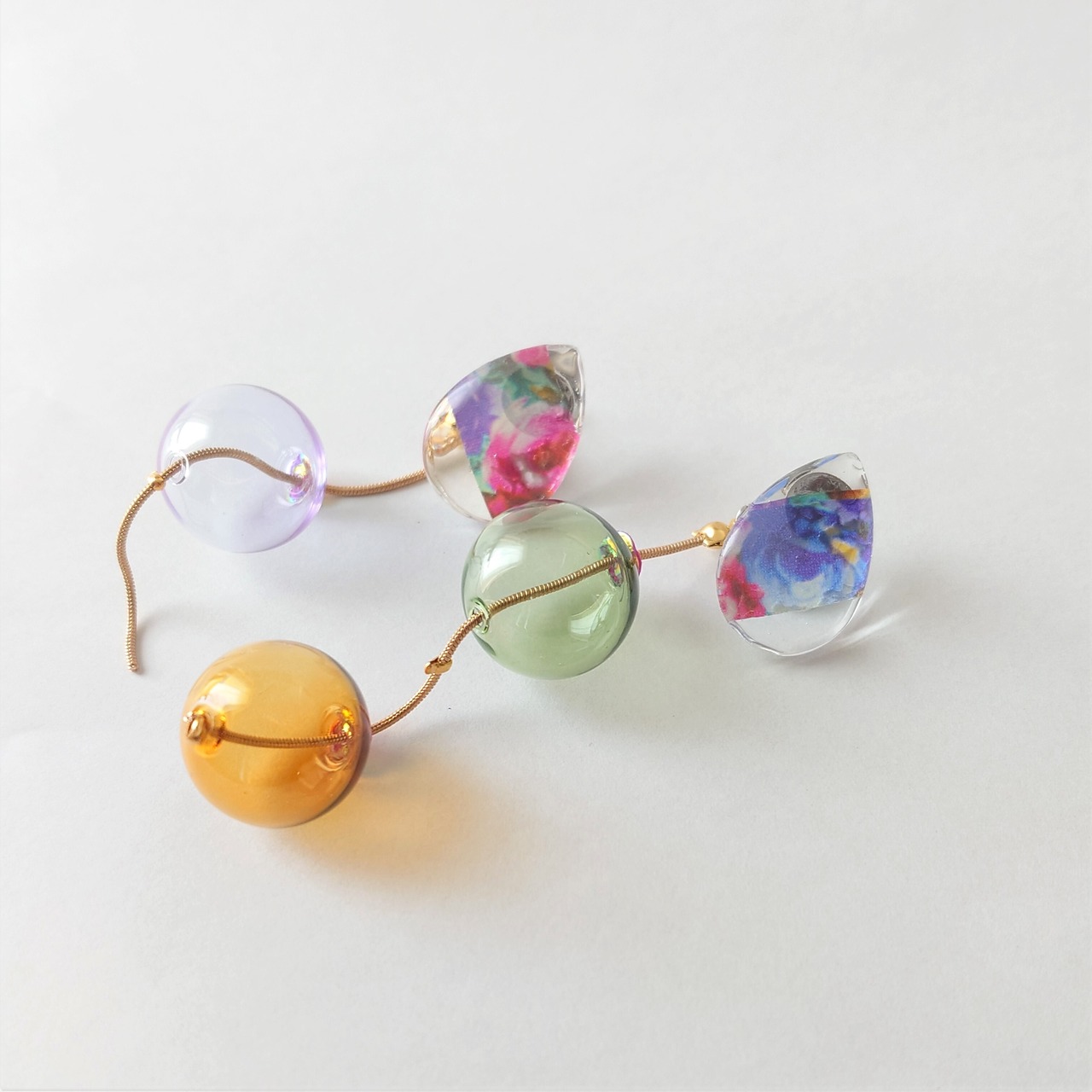 受注生産:透明感と透き通る色合いが美しい アートなガラスボール耳飾り (イヤリング)