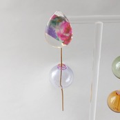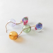 耳元の金具部分は、透明のガラスに独自に柄を付けています。
