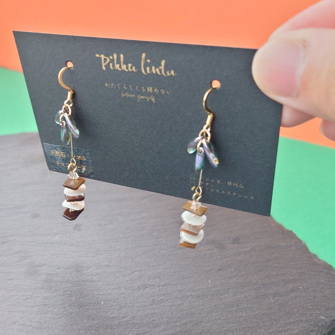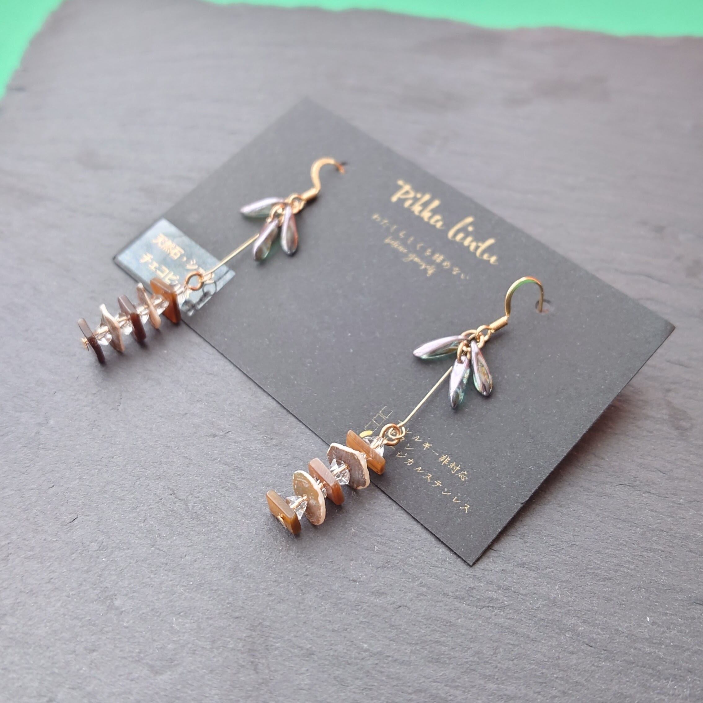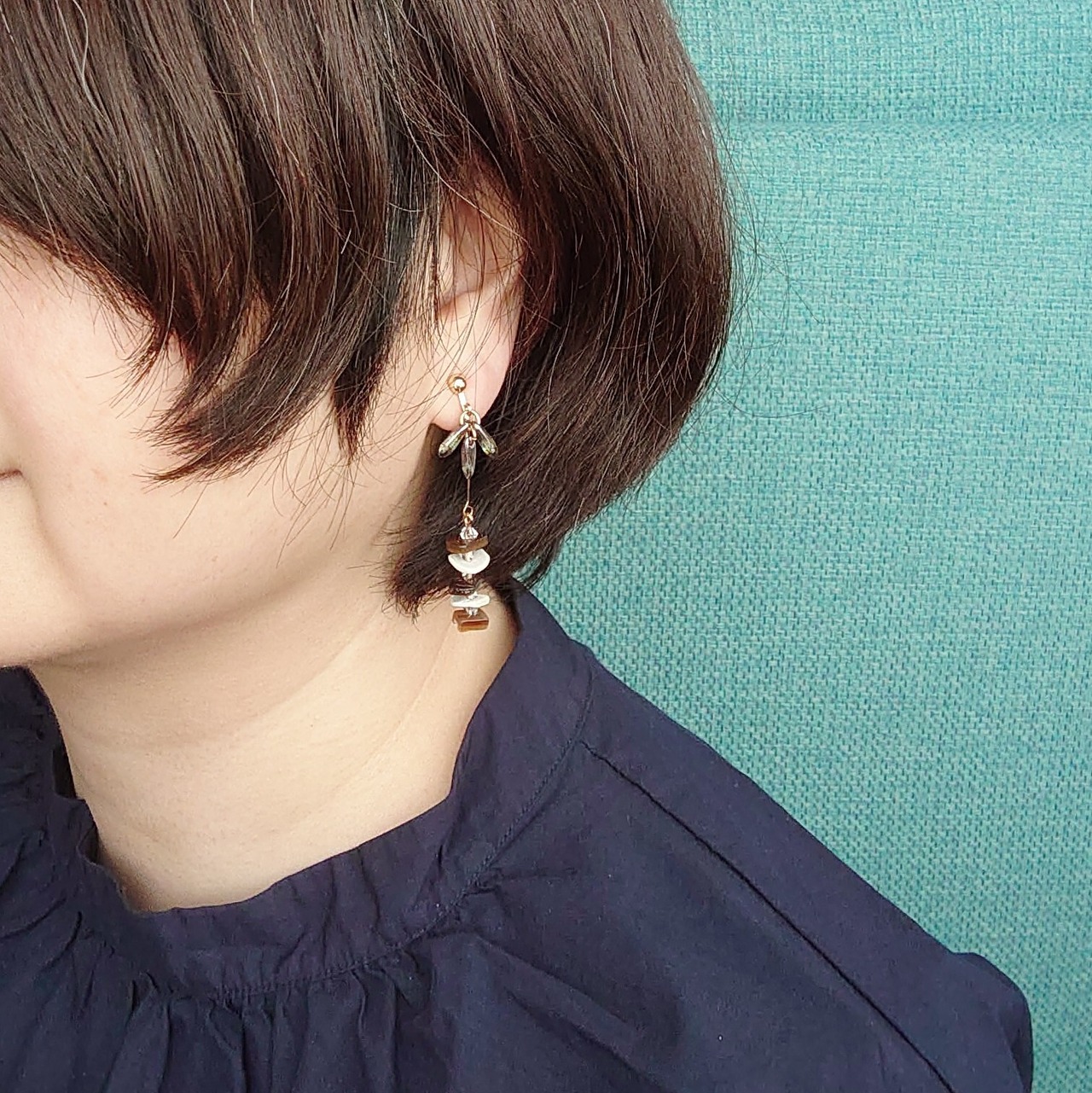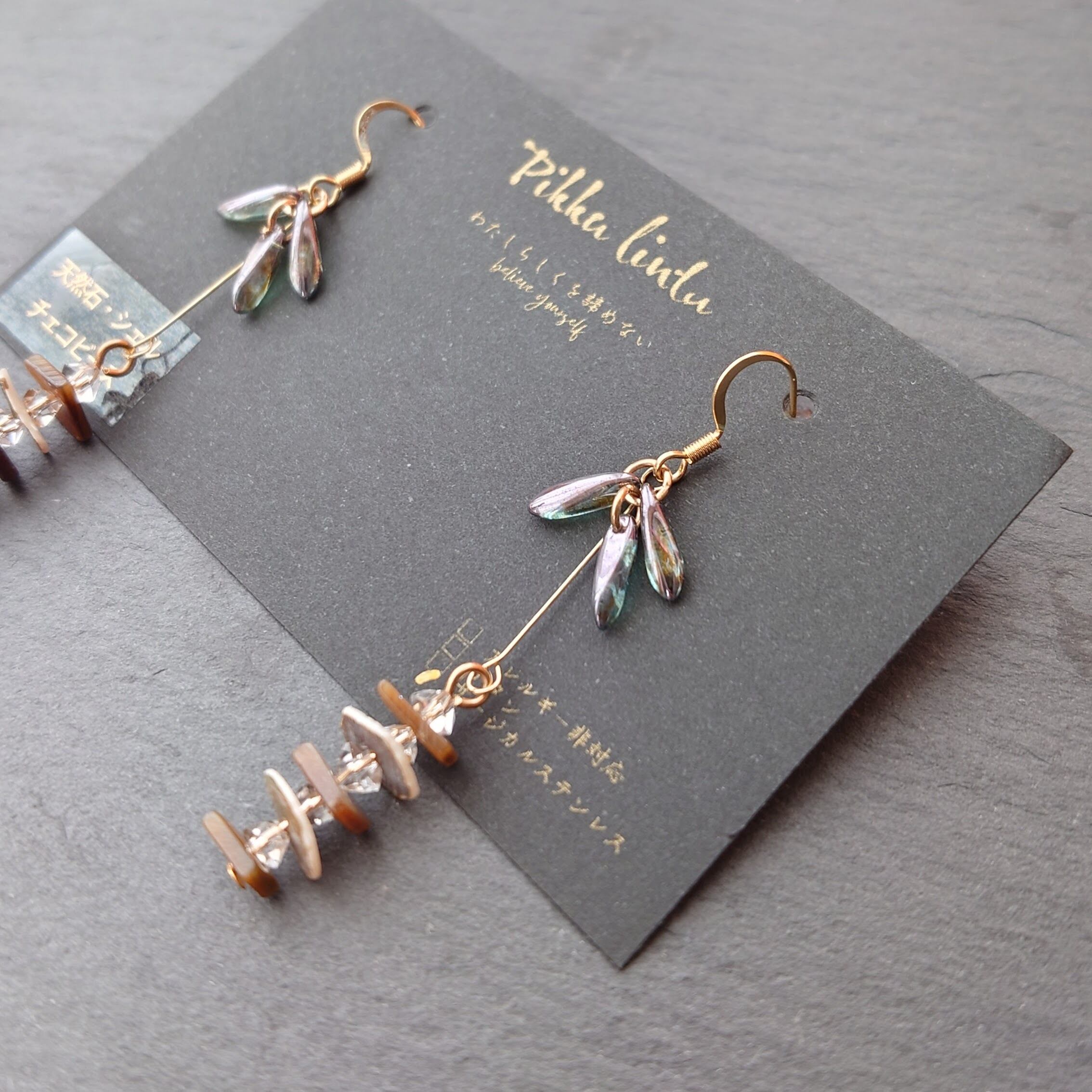 チェコビーズと天然石 大人カラーの上品な輝き シンプルミニマムピアス