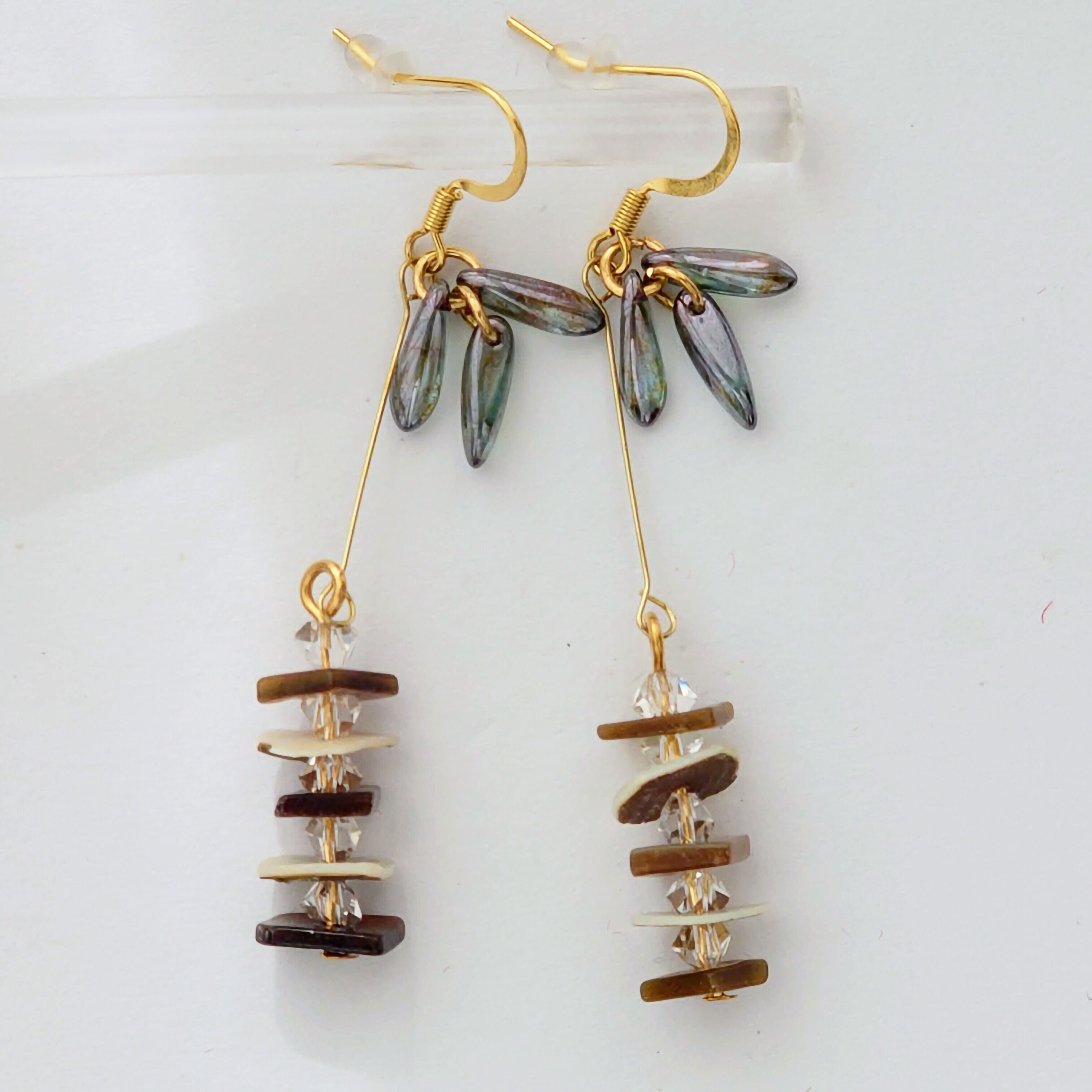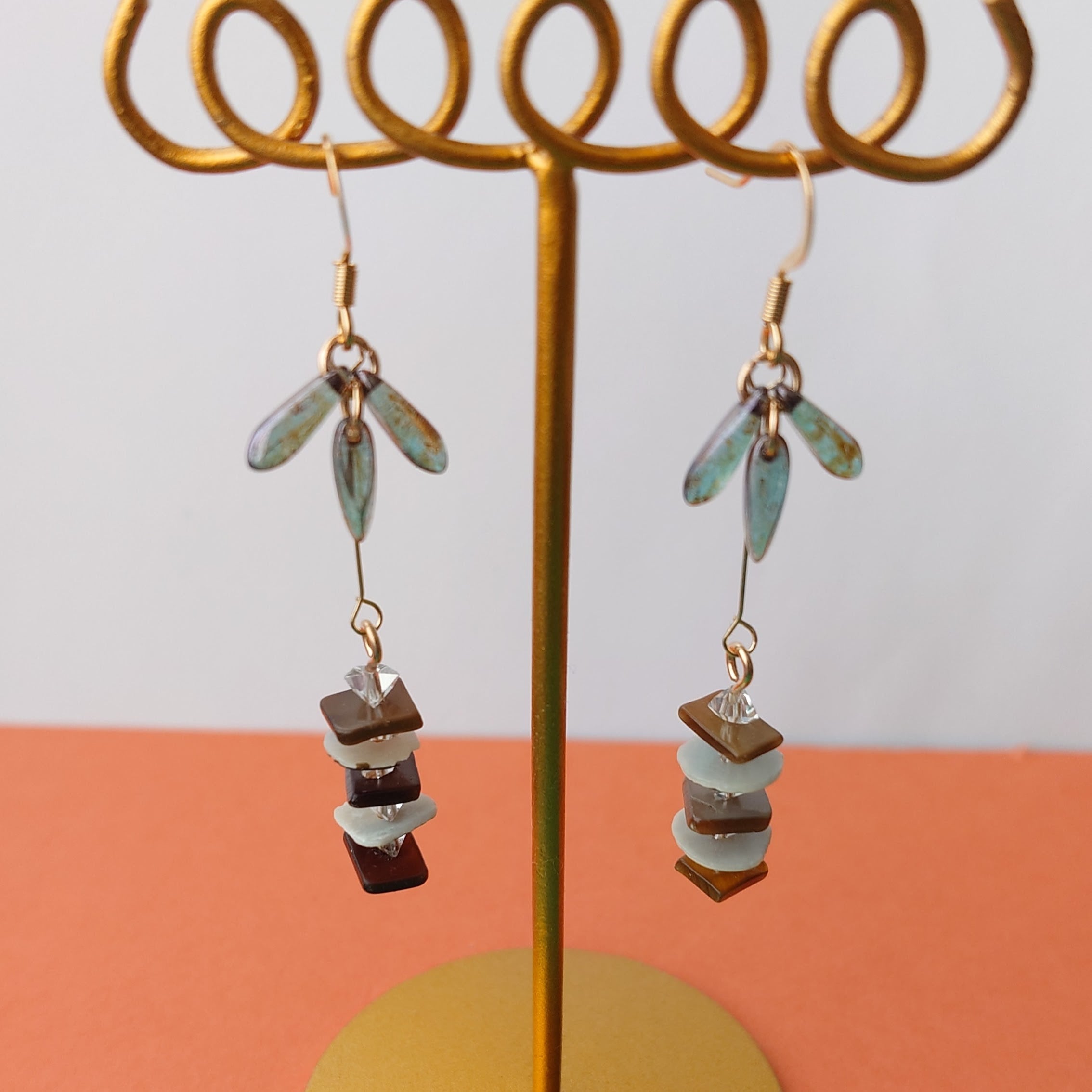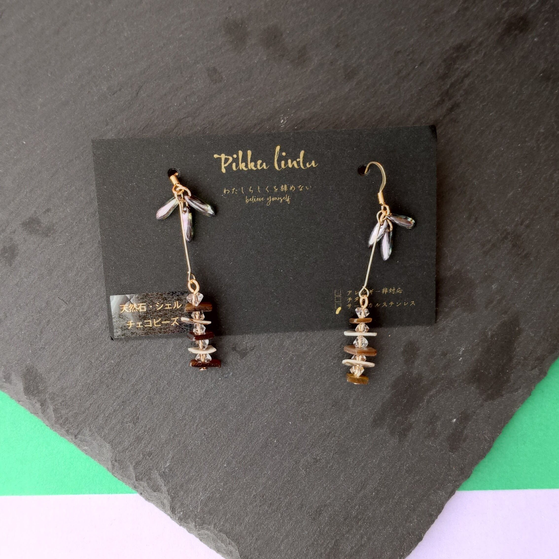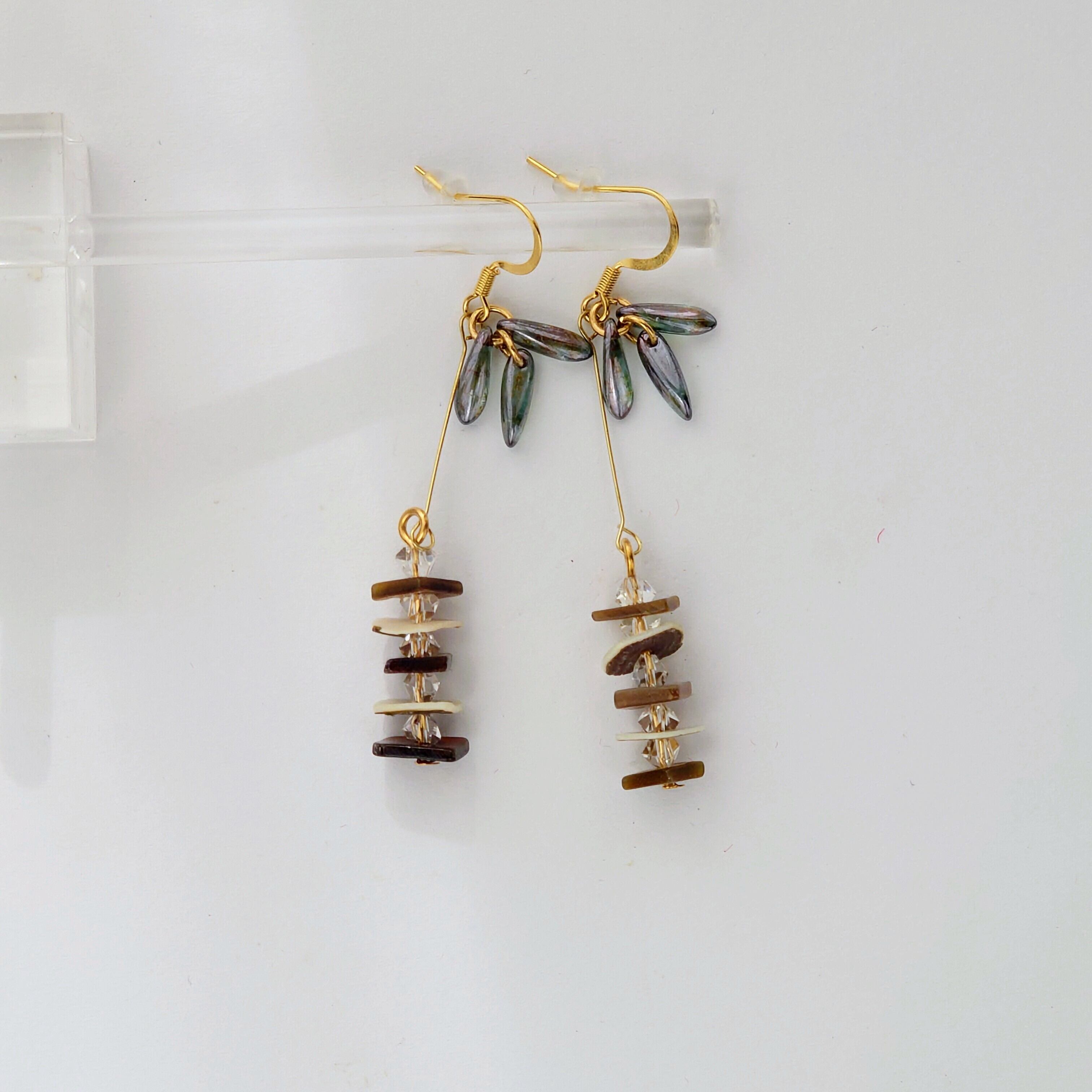 チェコビーズと天然石 大人カラーの上品な輝き シンプルミニマムピアス