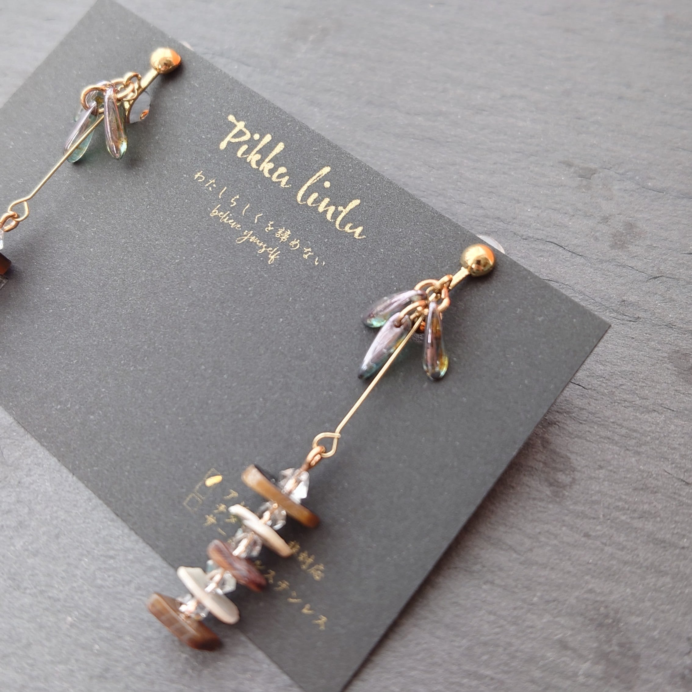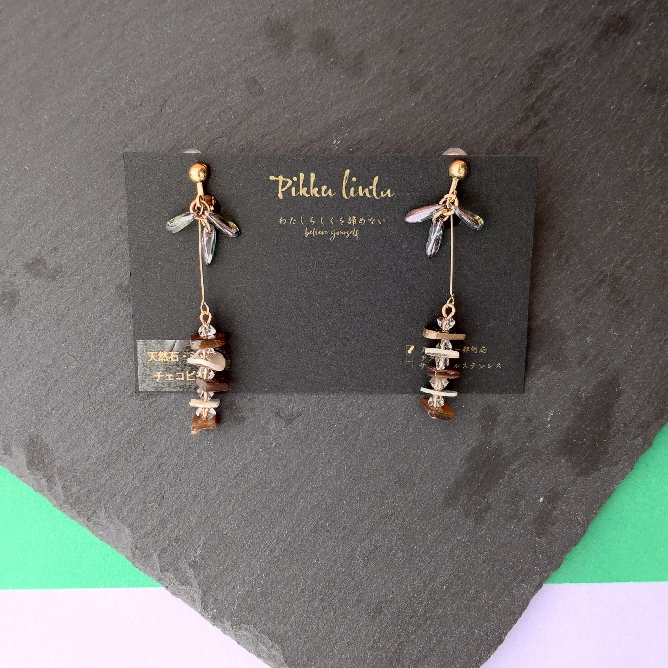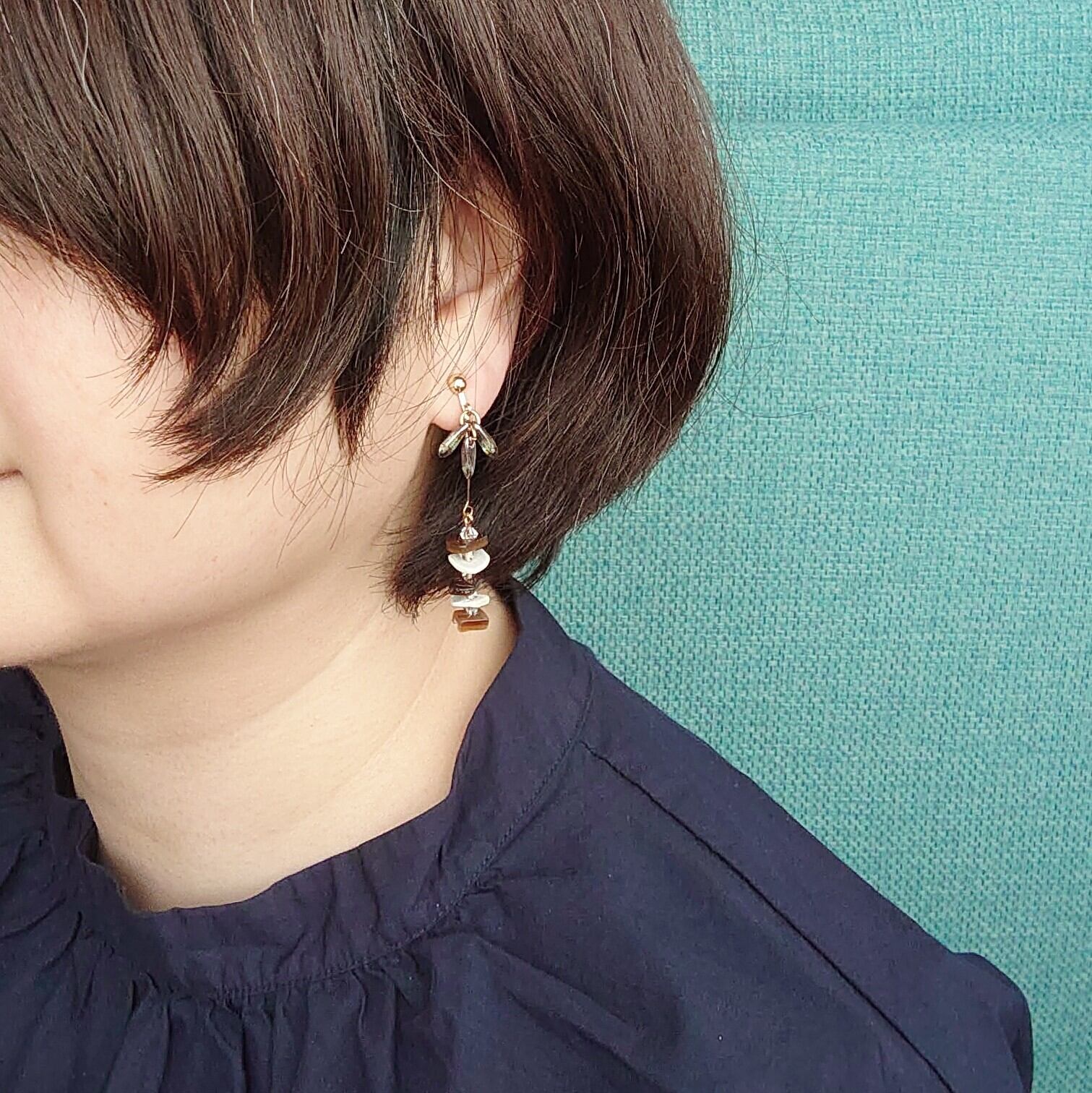 チェコビーズと天然石 大人カラーの上品な輝き シンプルミニマムイヤリング