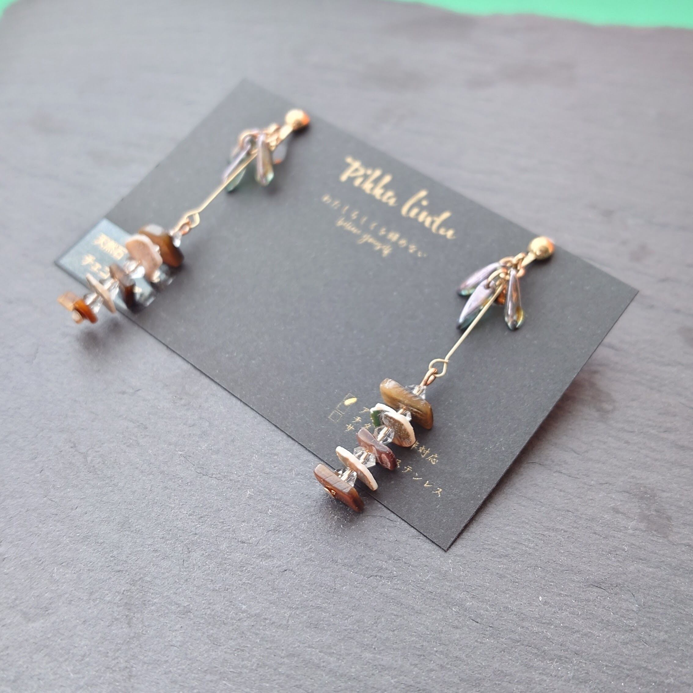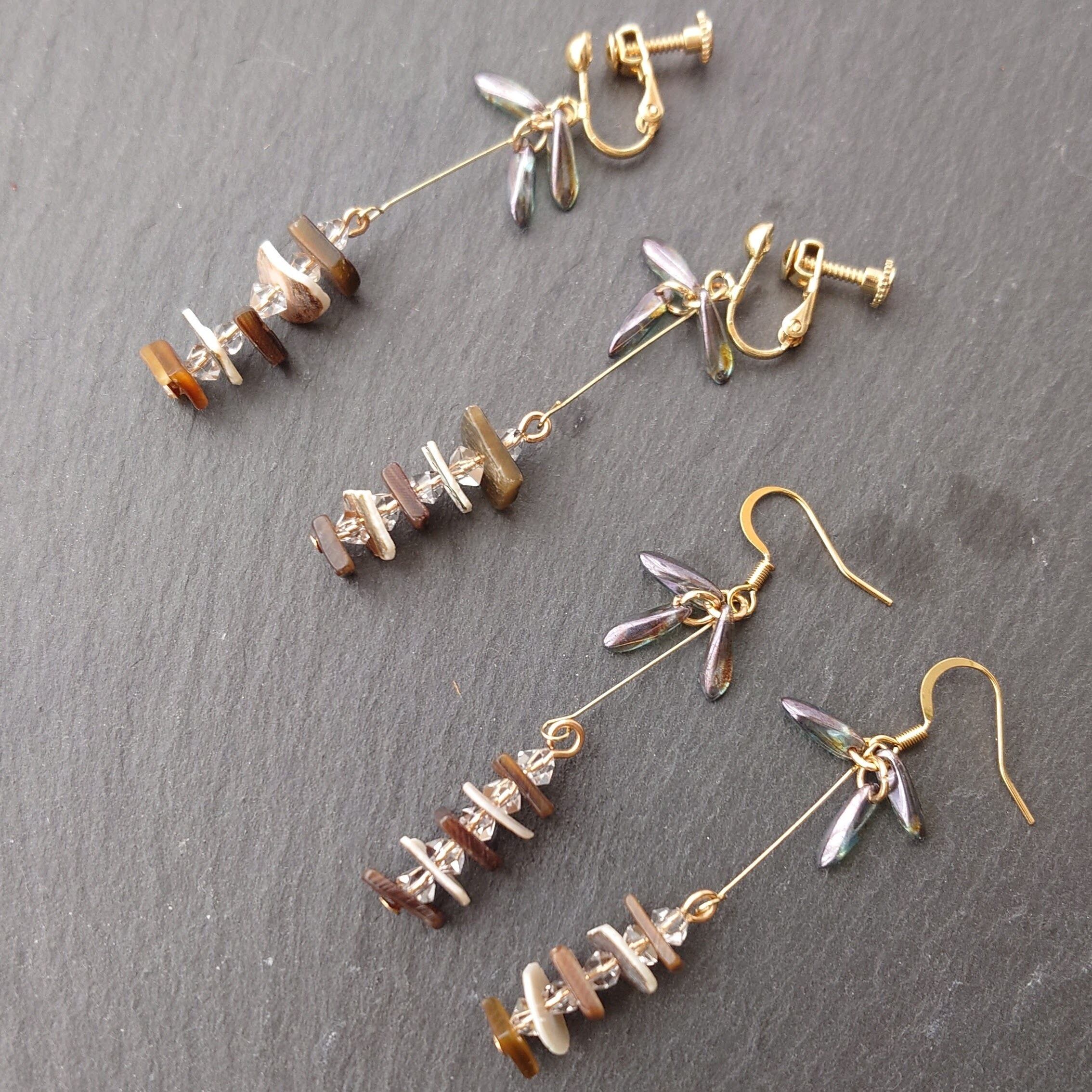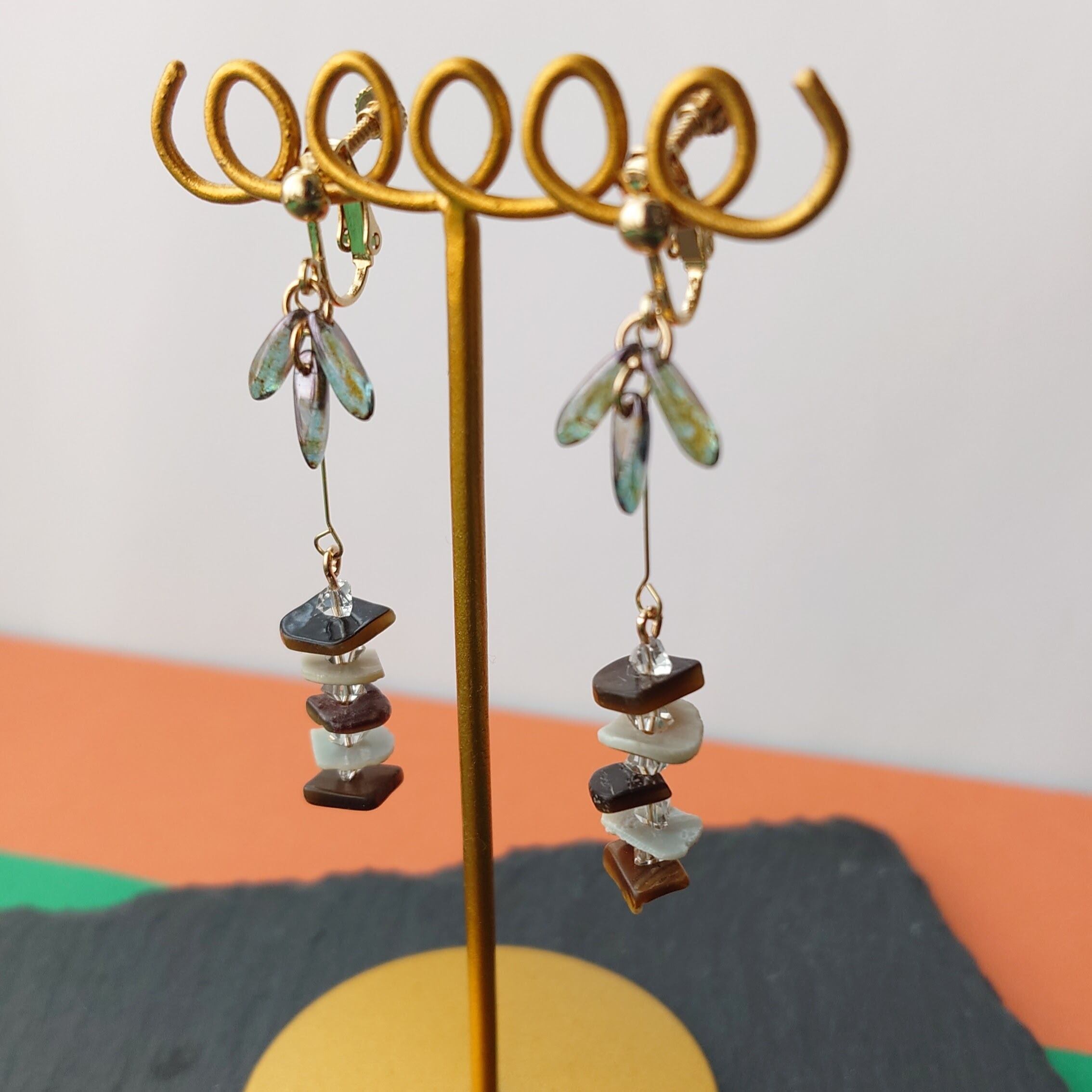 チェコビーズと天然石 大人カラーの上品な輝き シンプルミニマムイヤリング
