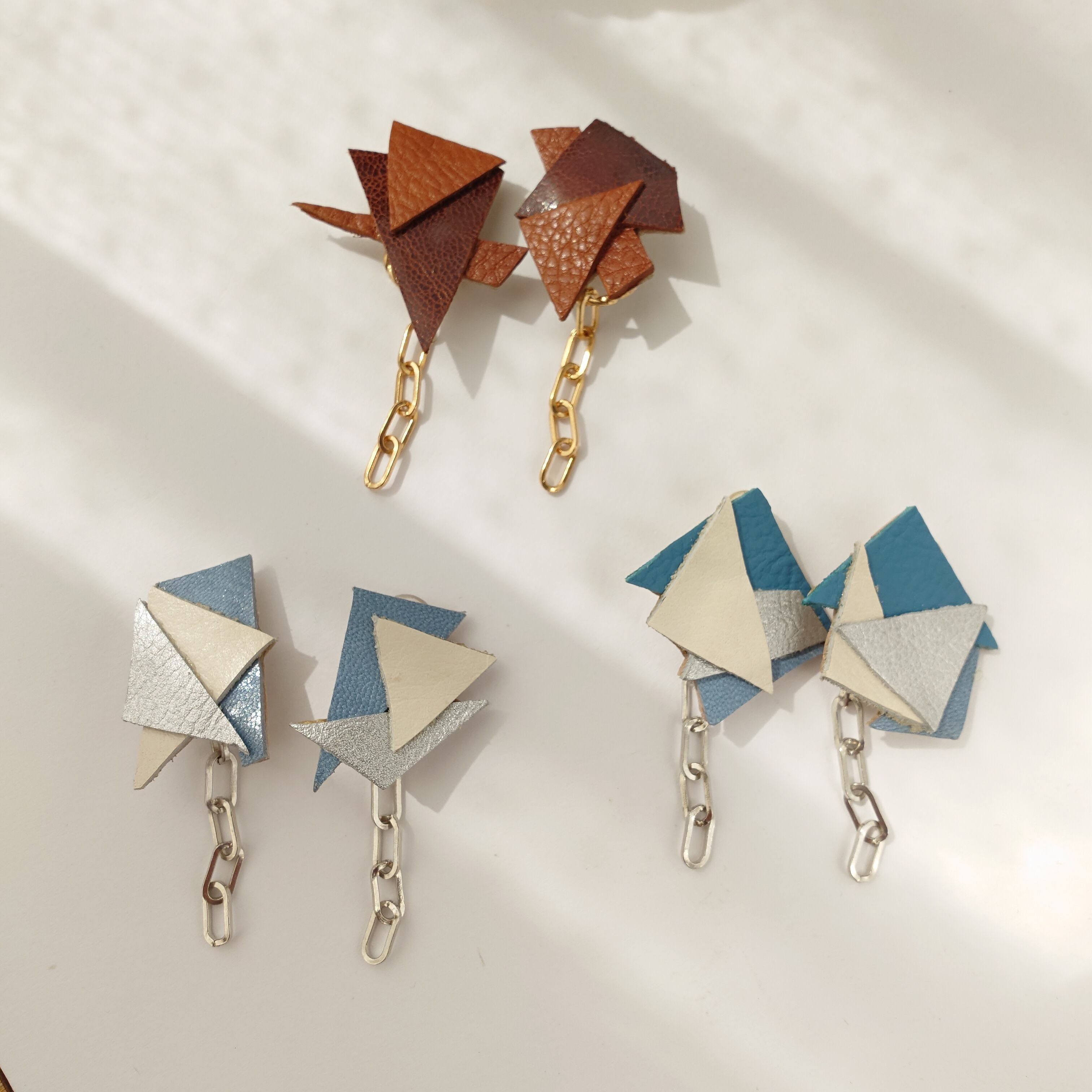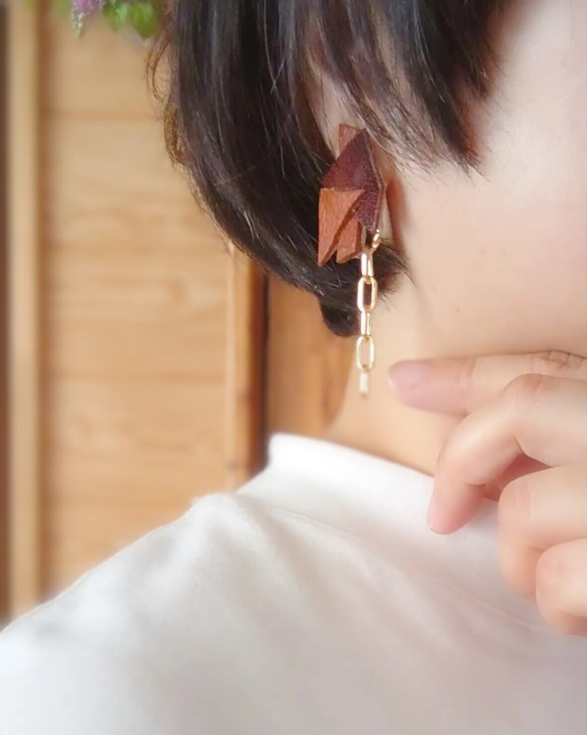 【kakuかく】本革ハギレのエシカルイヤリング 軽い 痛くない