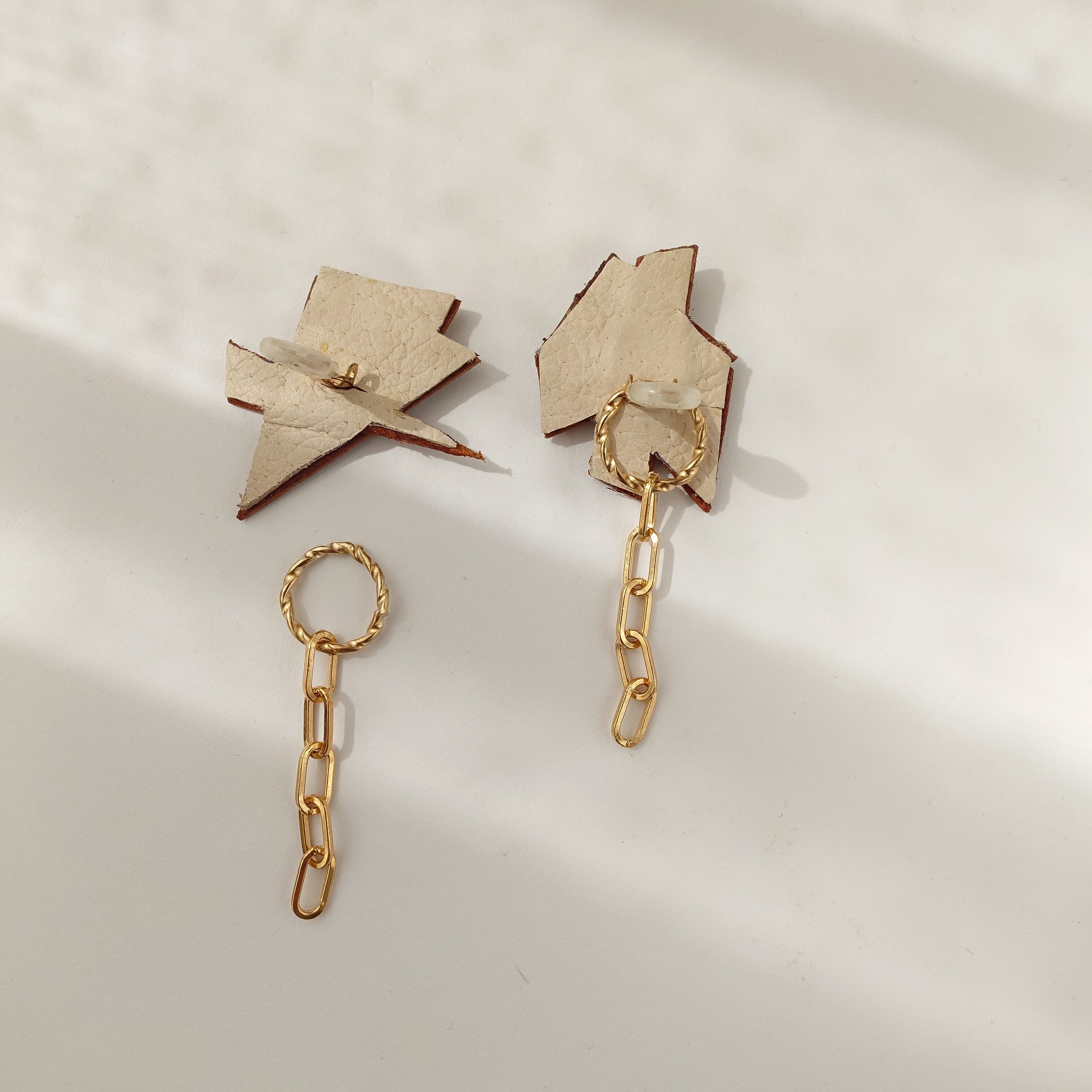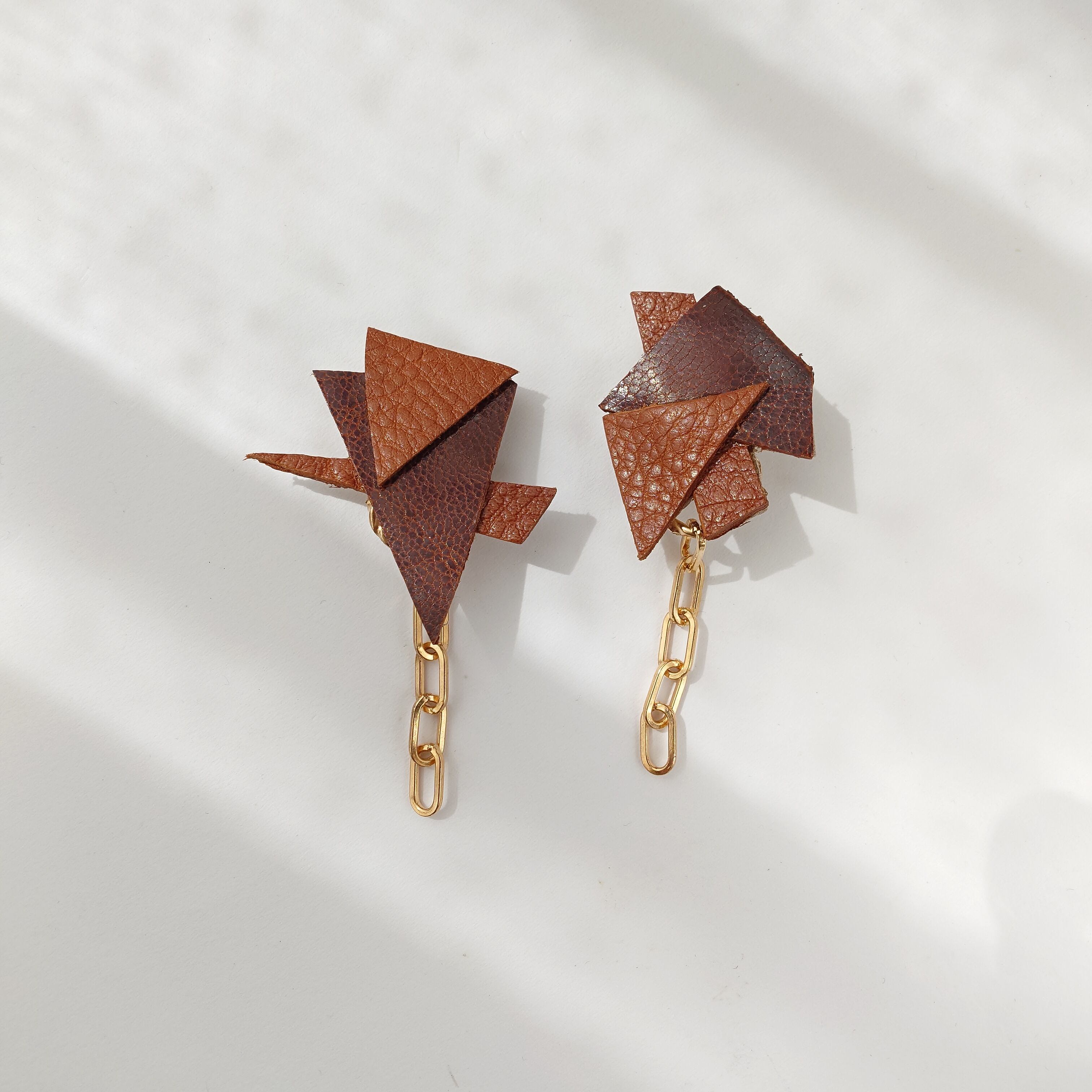 【kakuかく】本革ハギレのエシカルイヤリング 軽い 痛くない