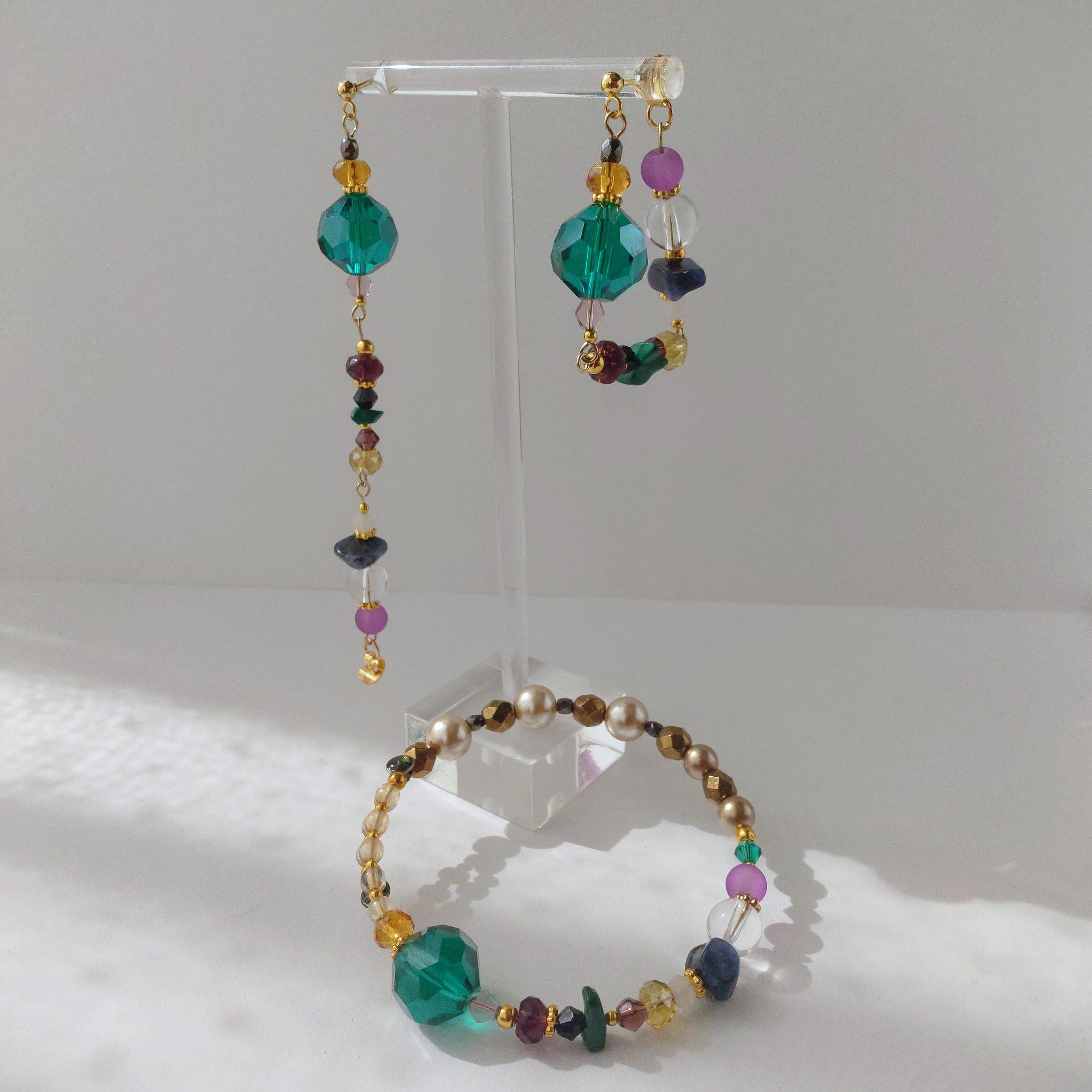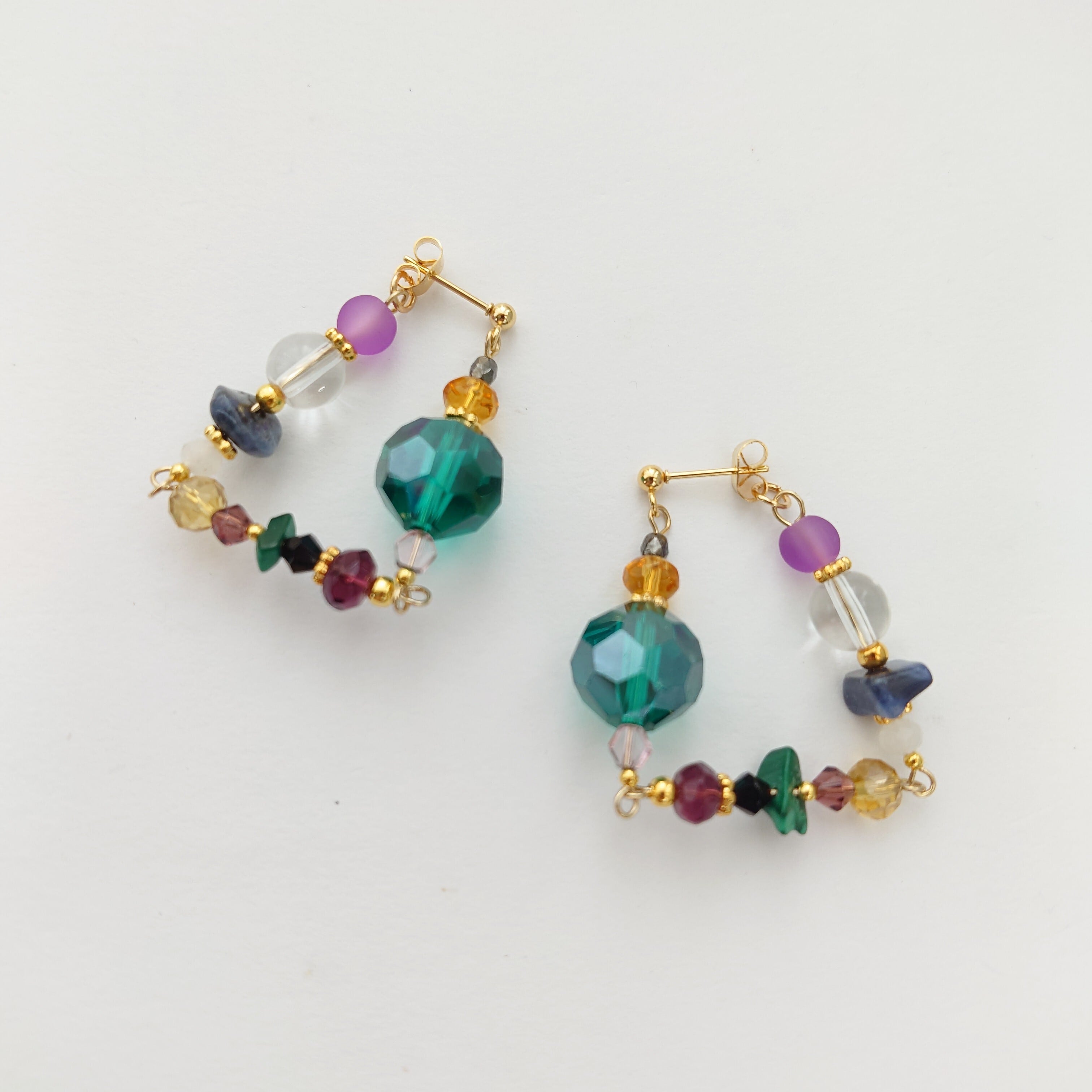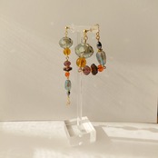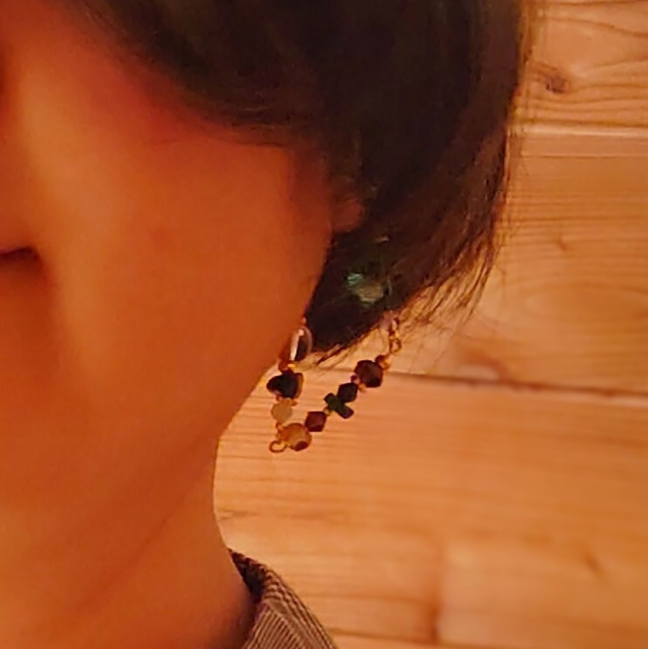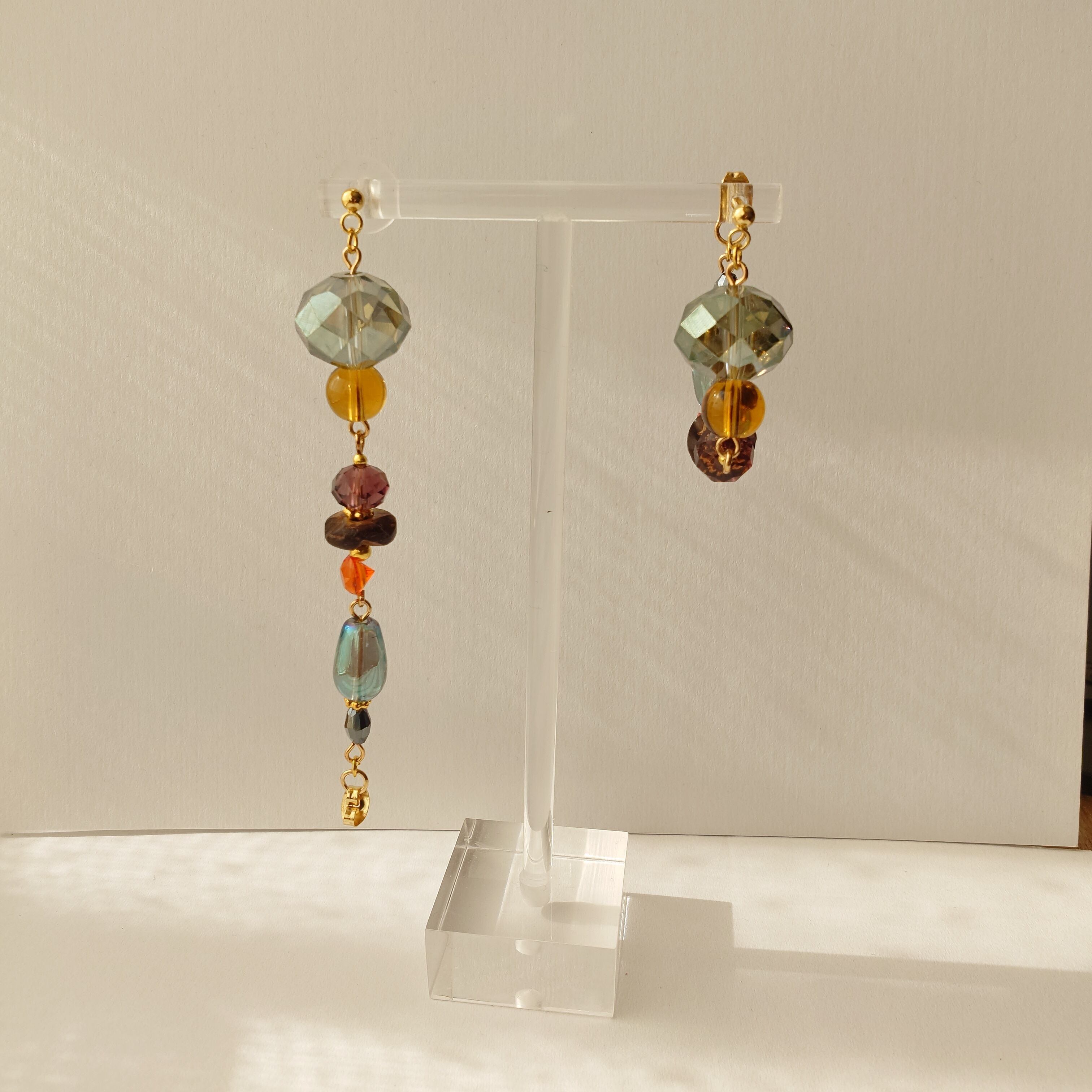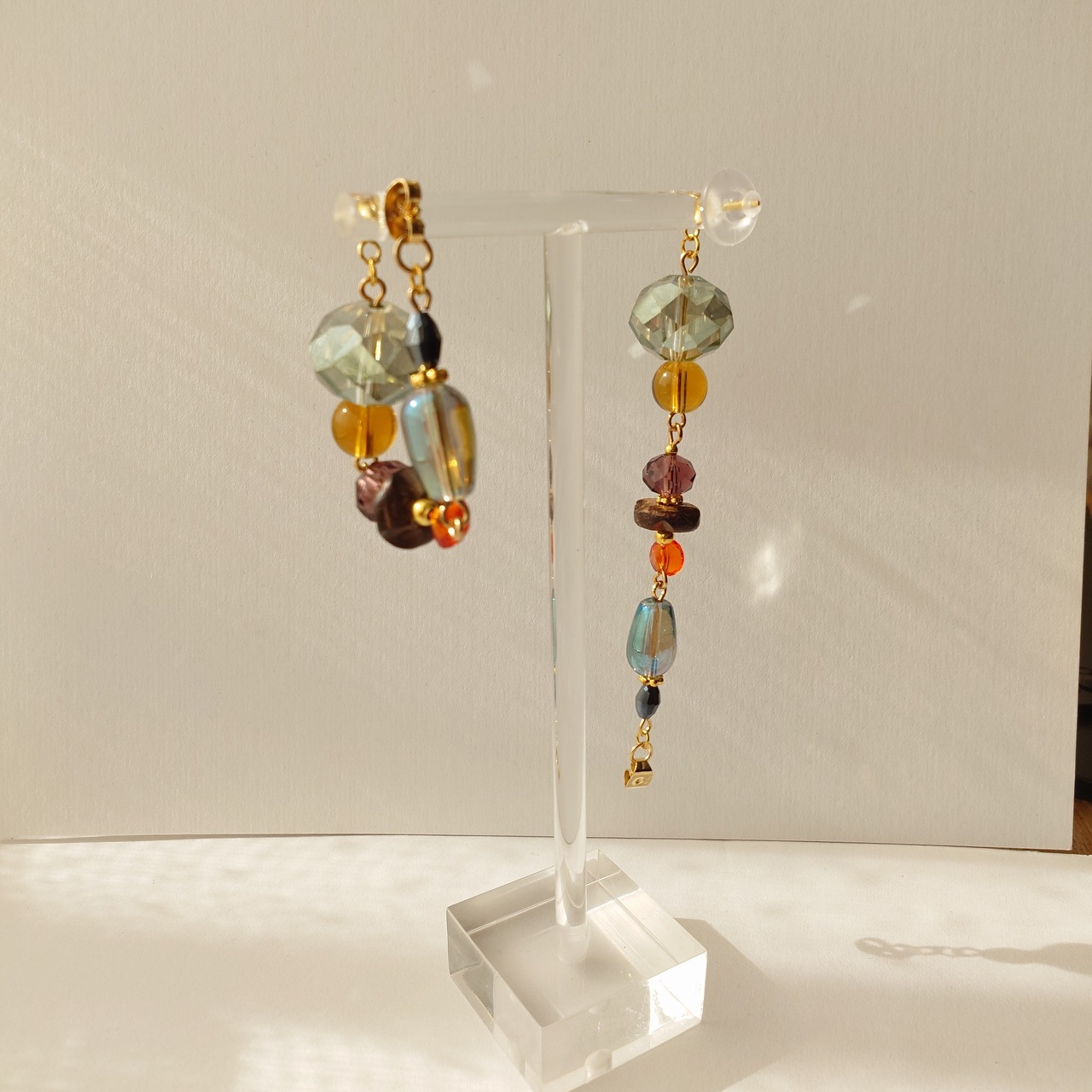 トランスフォームする耳飾り 秋色ピラミッド ピアス レトロ 2way 3way キャッチが無くならない ロング フープ