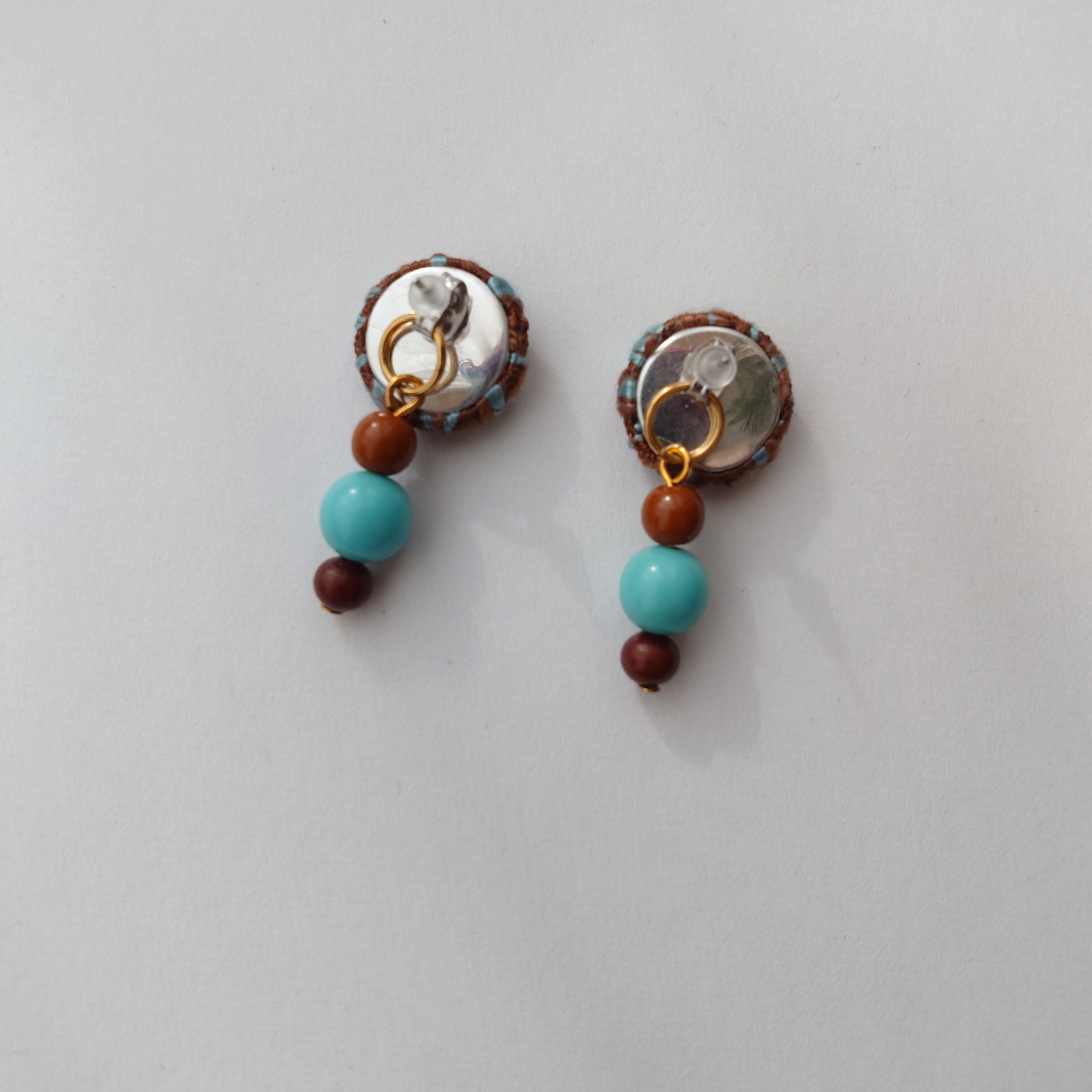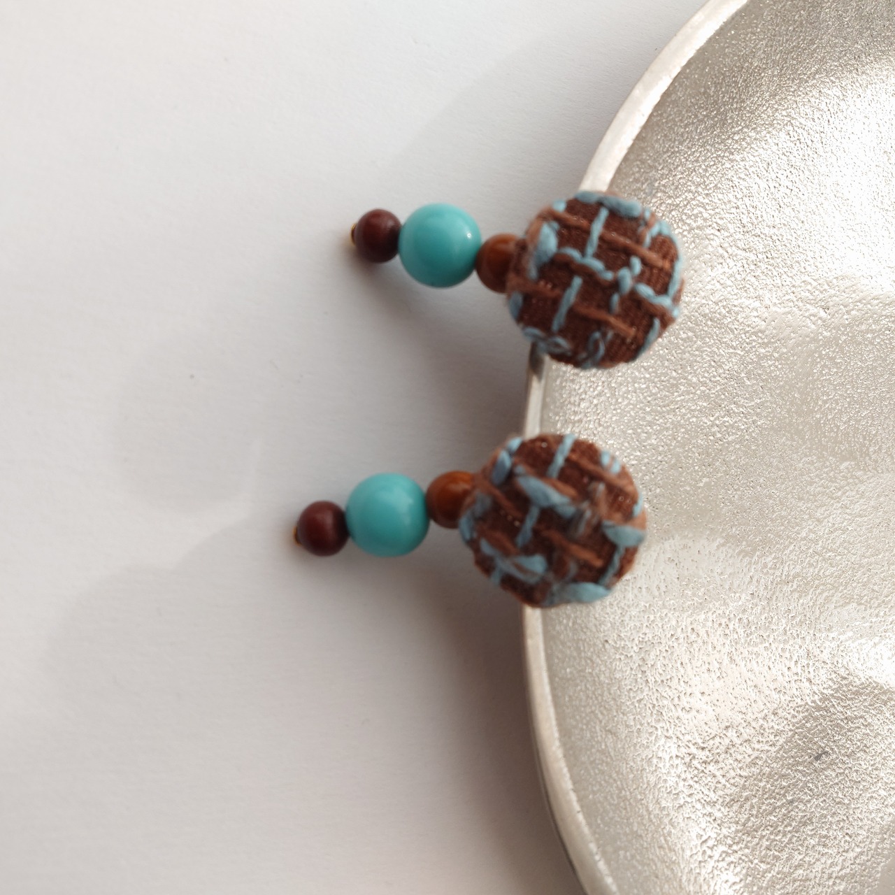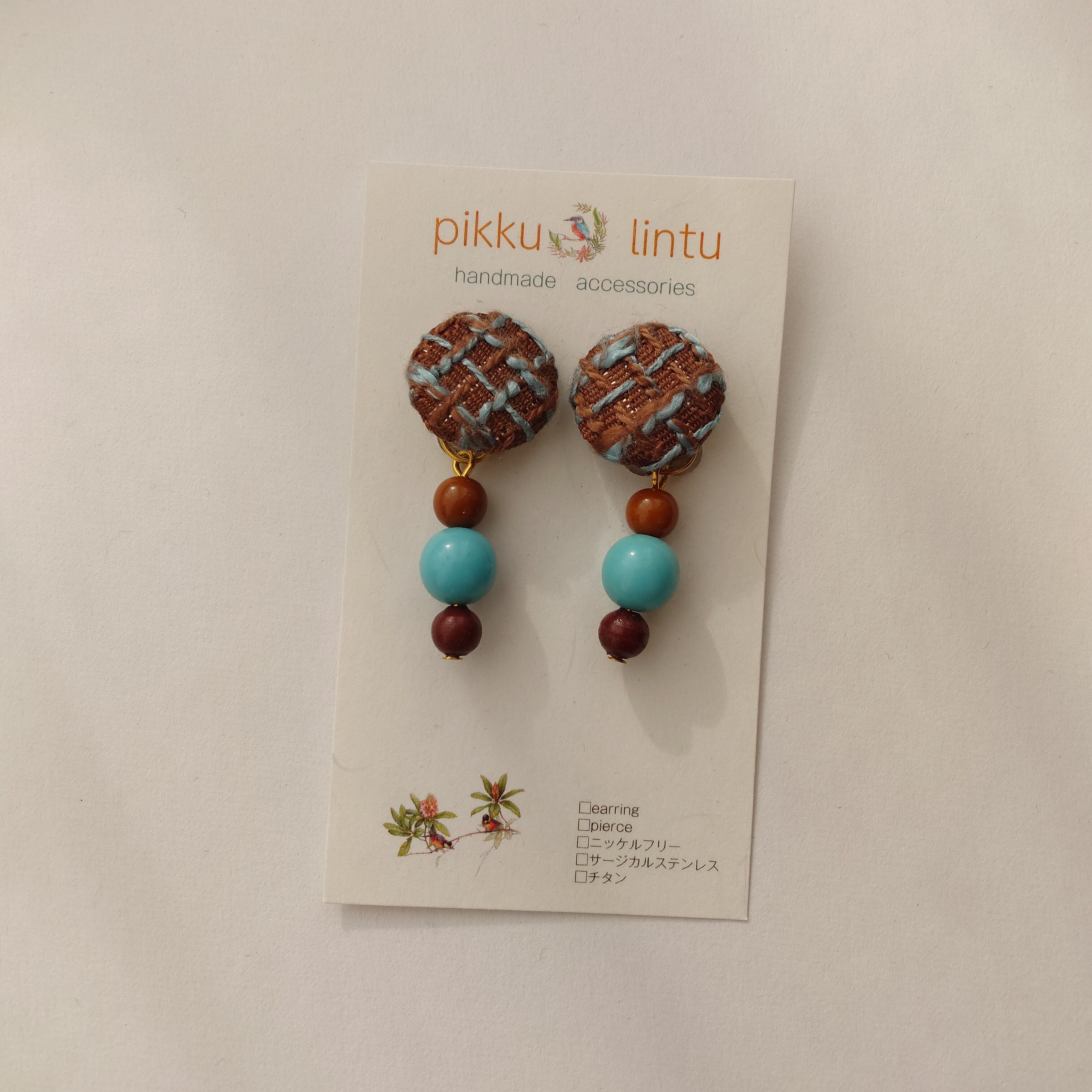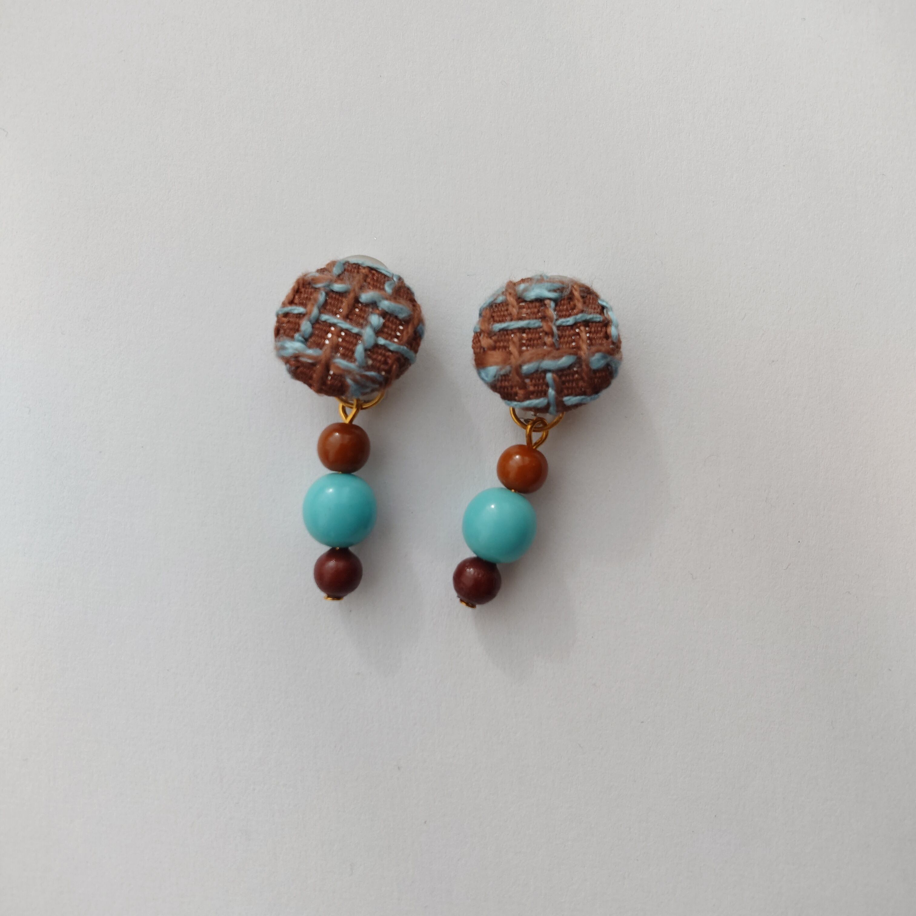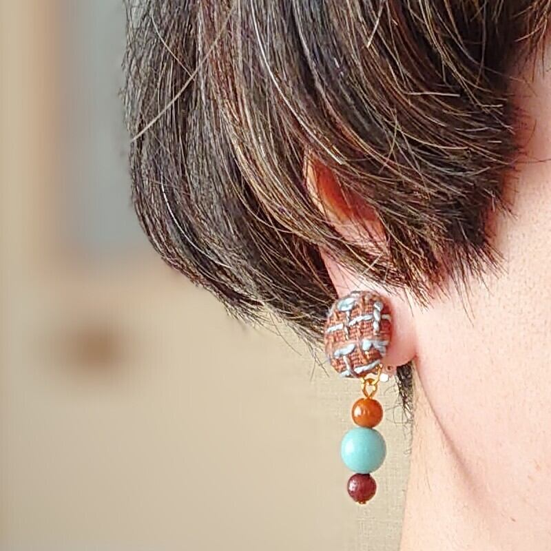 【チョコミント】ツイードとヴィンテージビーズのピアス・イヤリング
