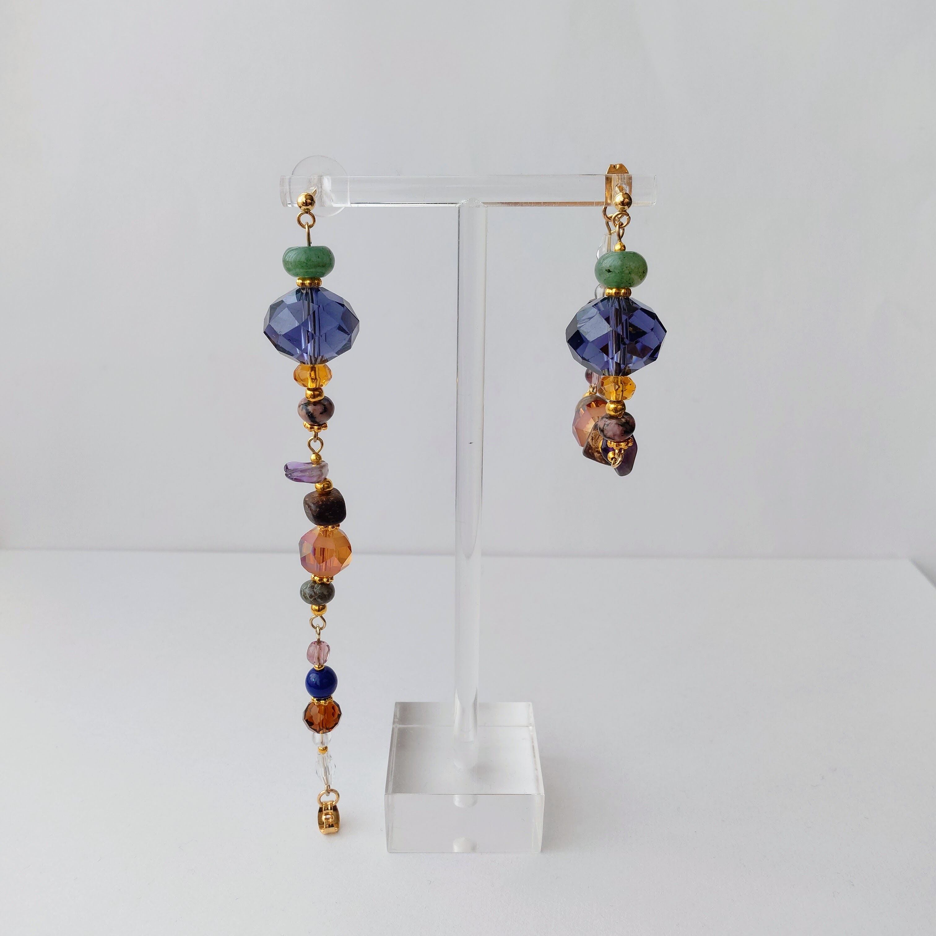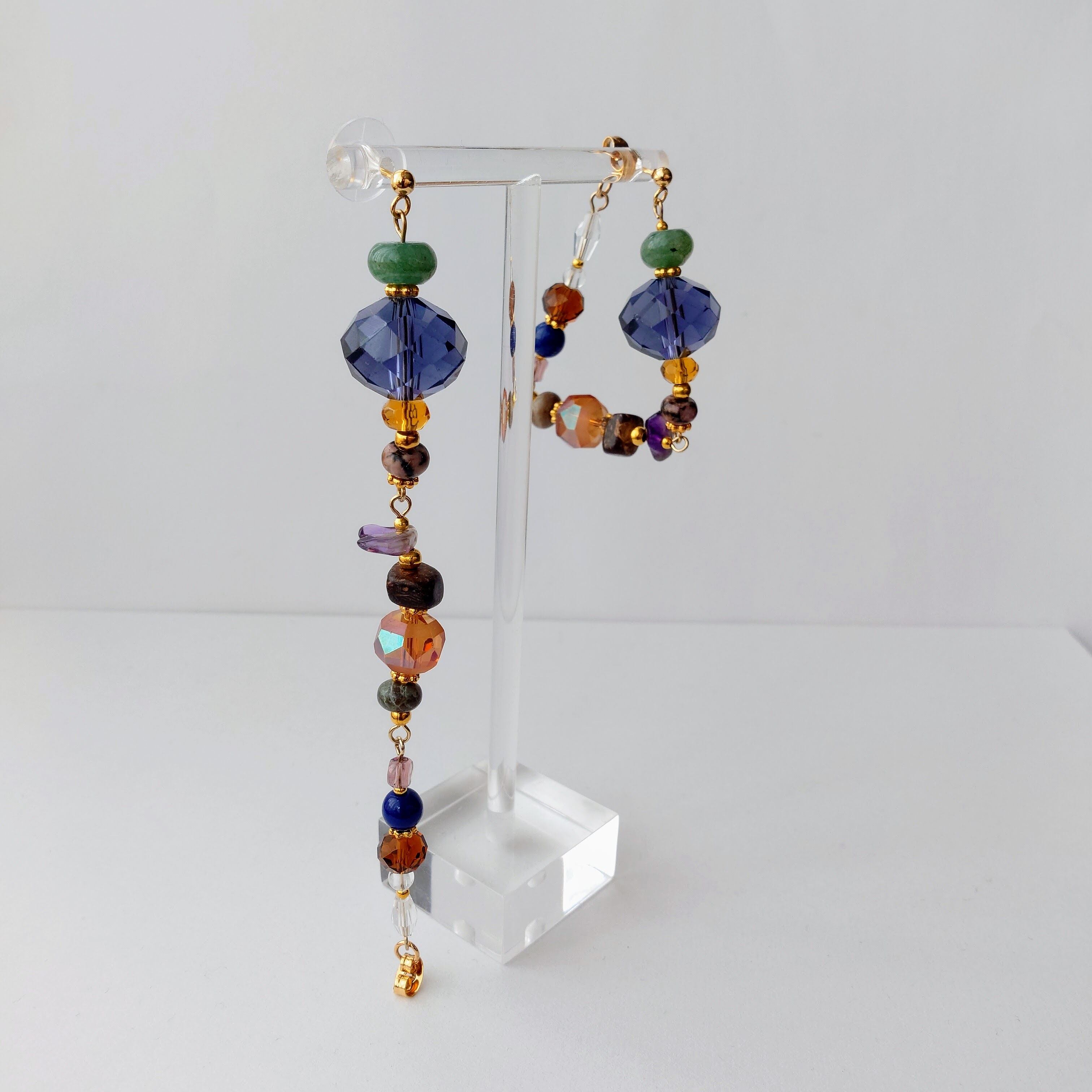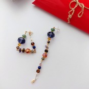 トランスフォームする耳飾り 秋色ピラミッド レトロ 2way・3way キャッチが無くならない ロング フープ