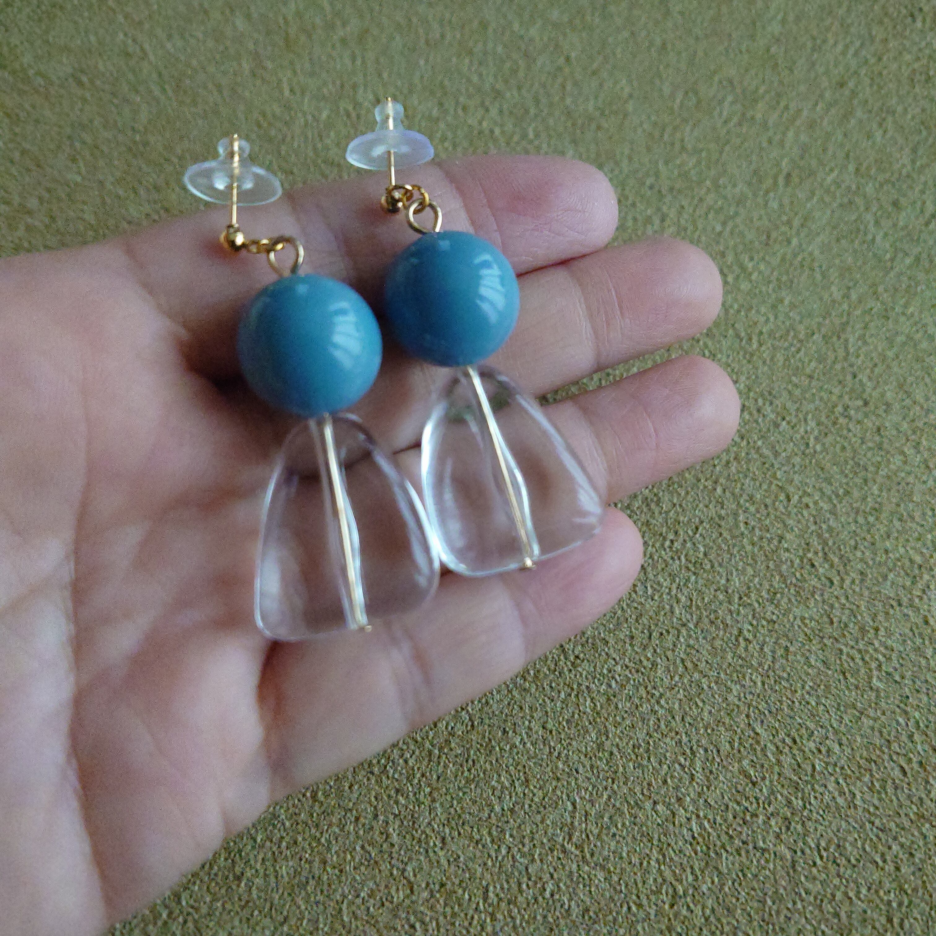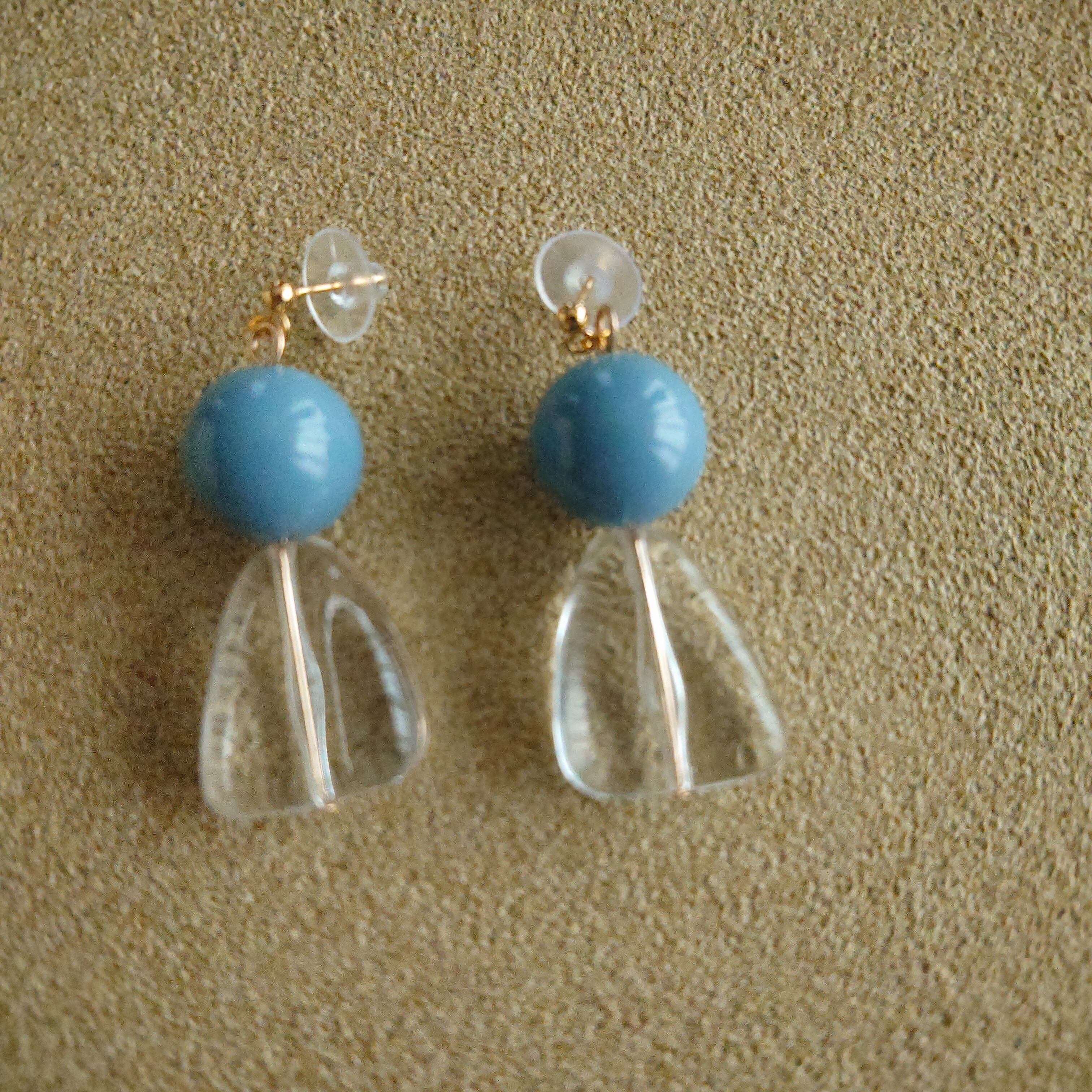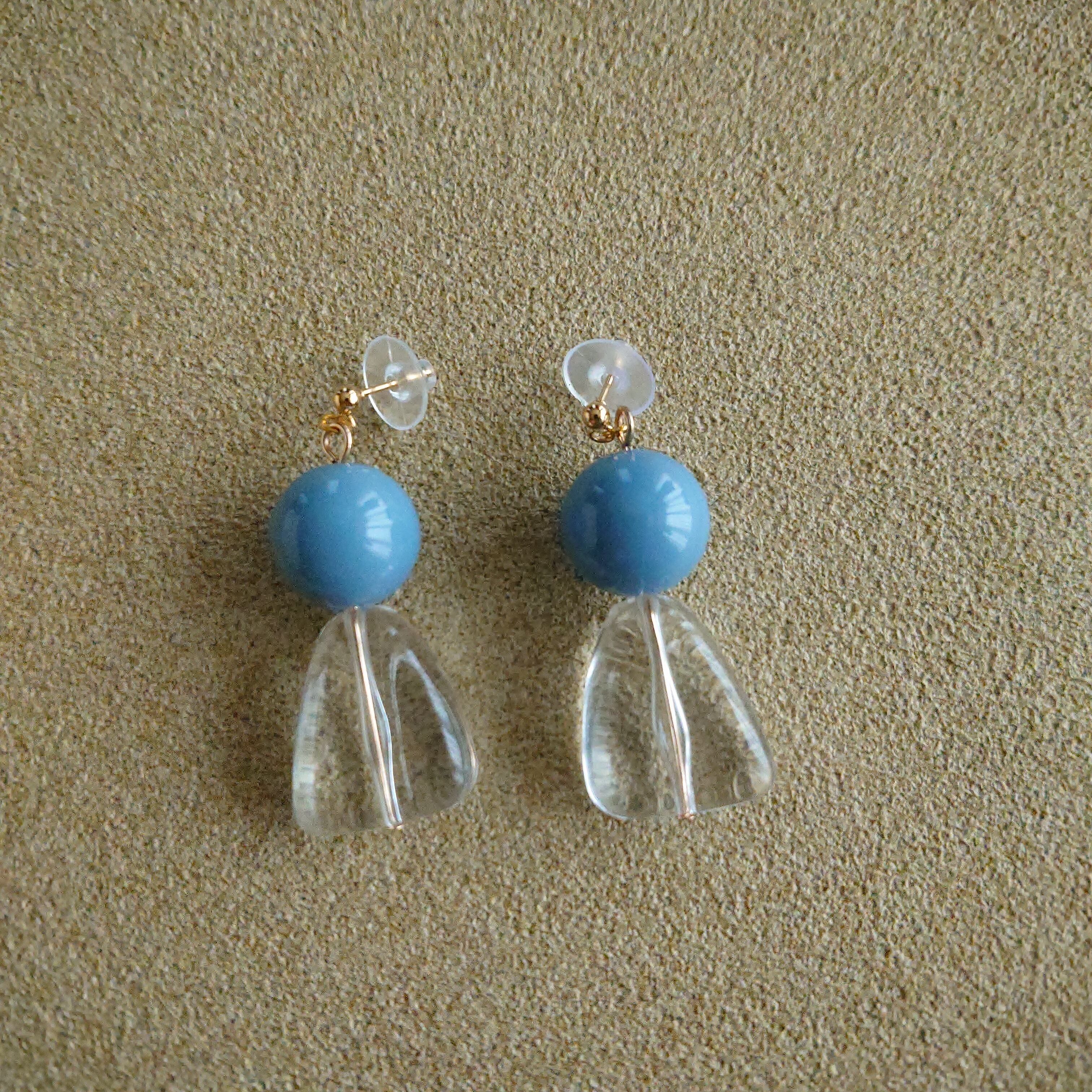 大ぶりの、クリアなビーズと爽やかなブルーのピアスで夏の装いを楽しく彩りましょう。