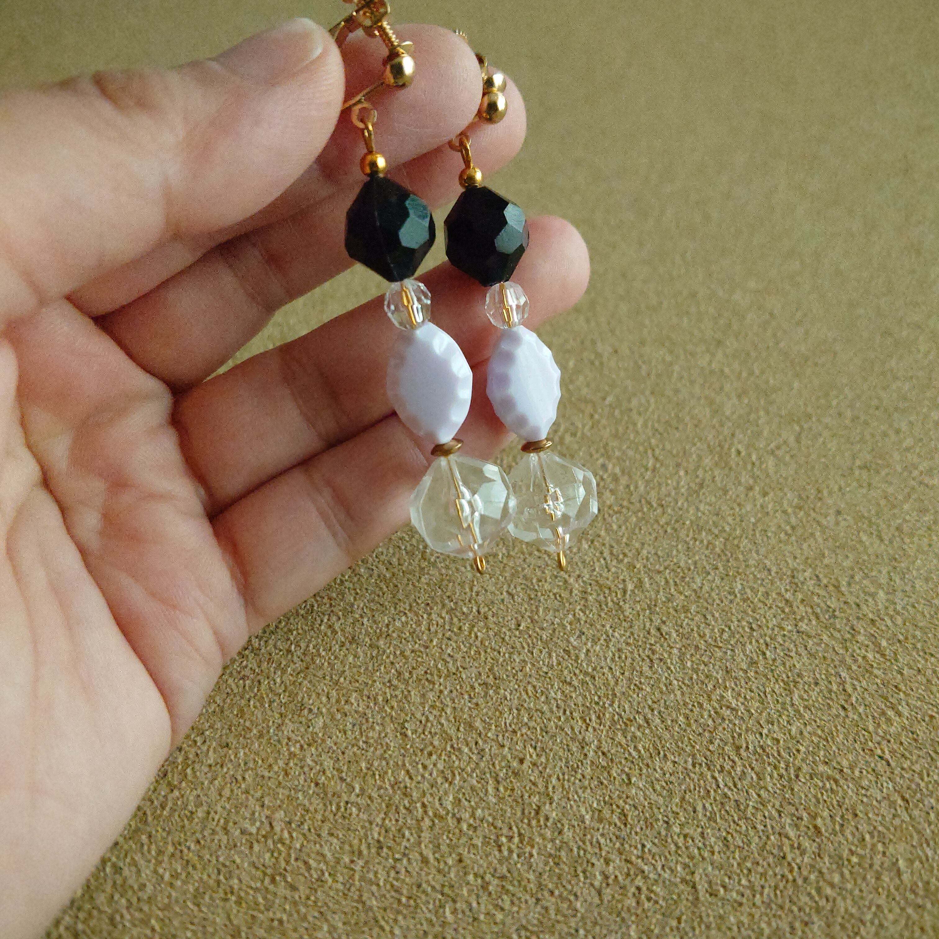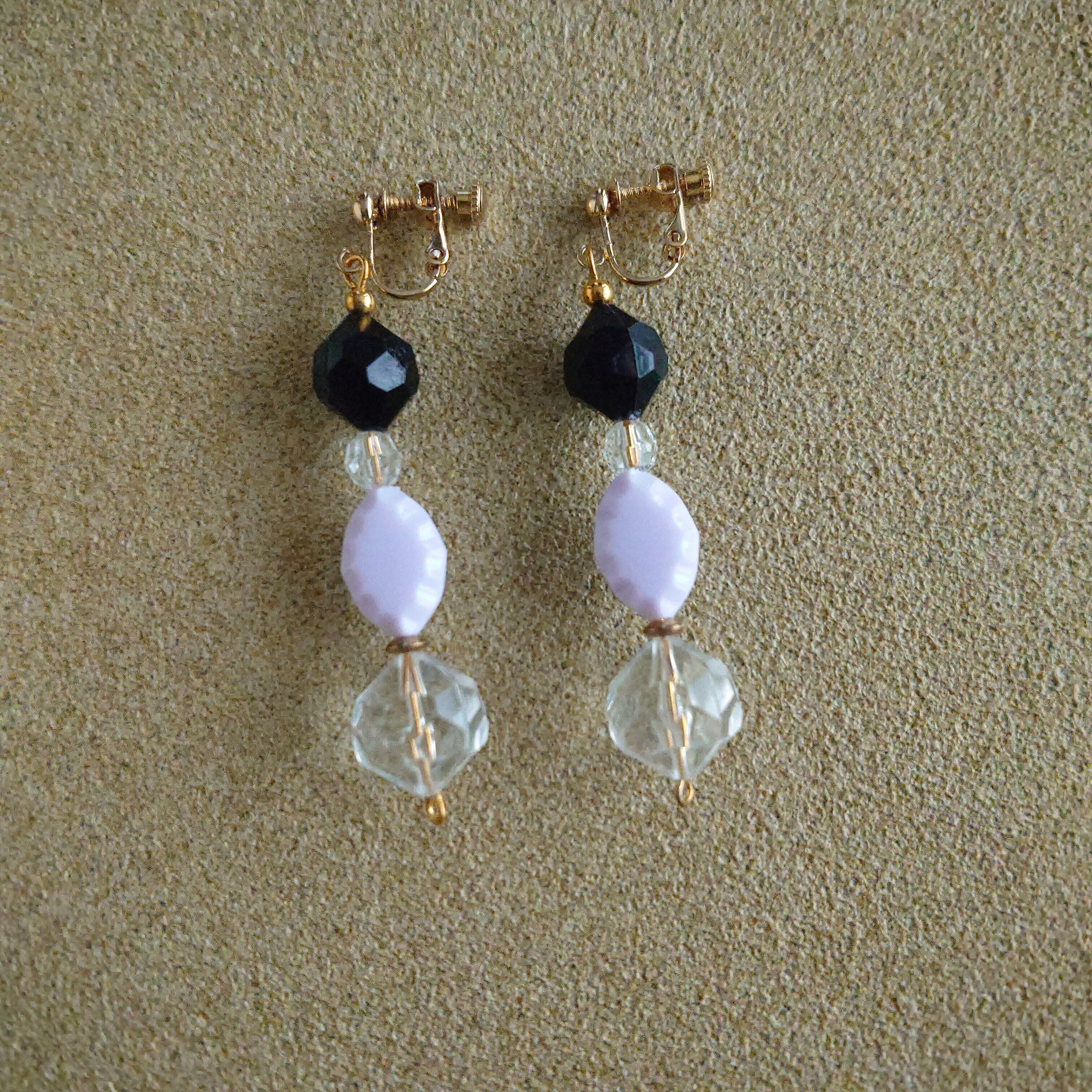 淡い紫色が大人っぽい、ヴィンテージビーズのエレガントなパープルが加わった耳飾りです。